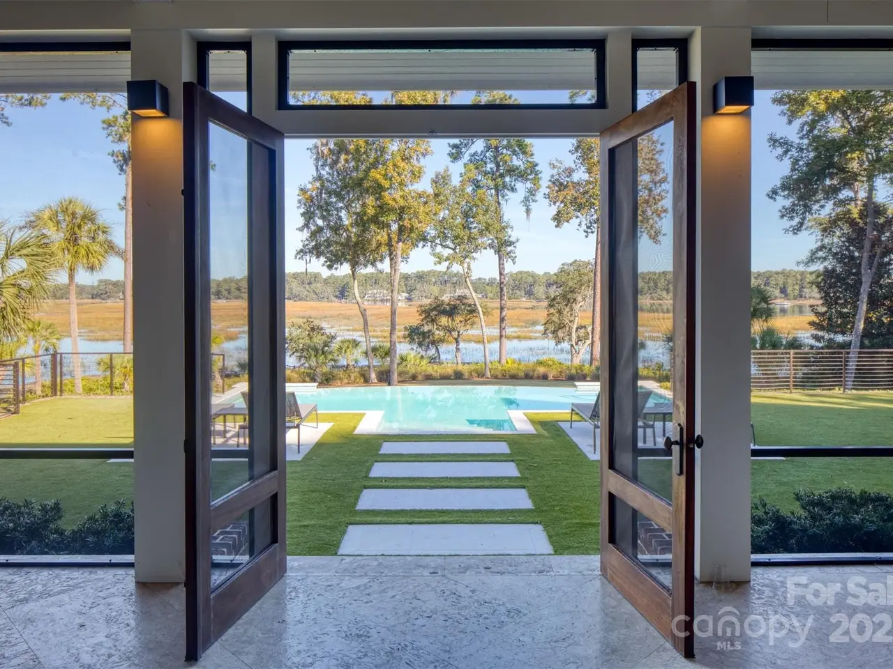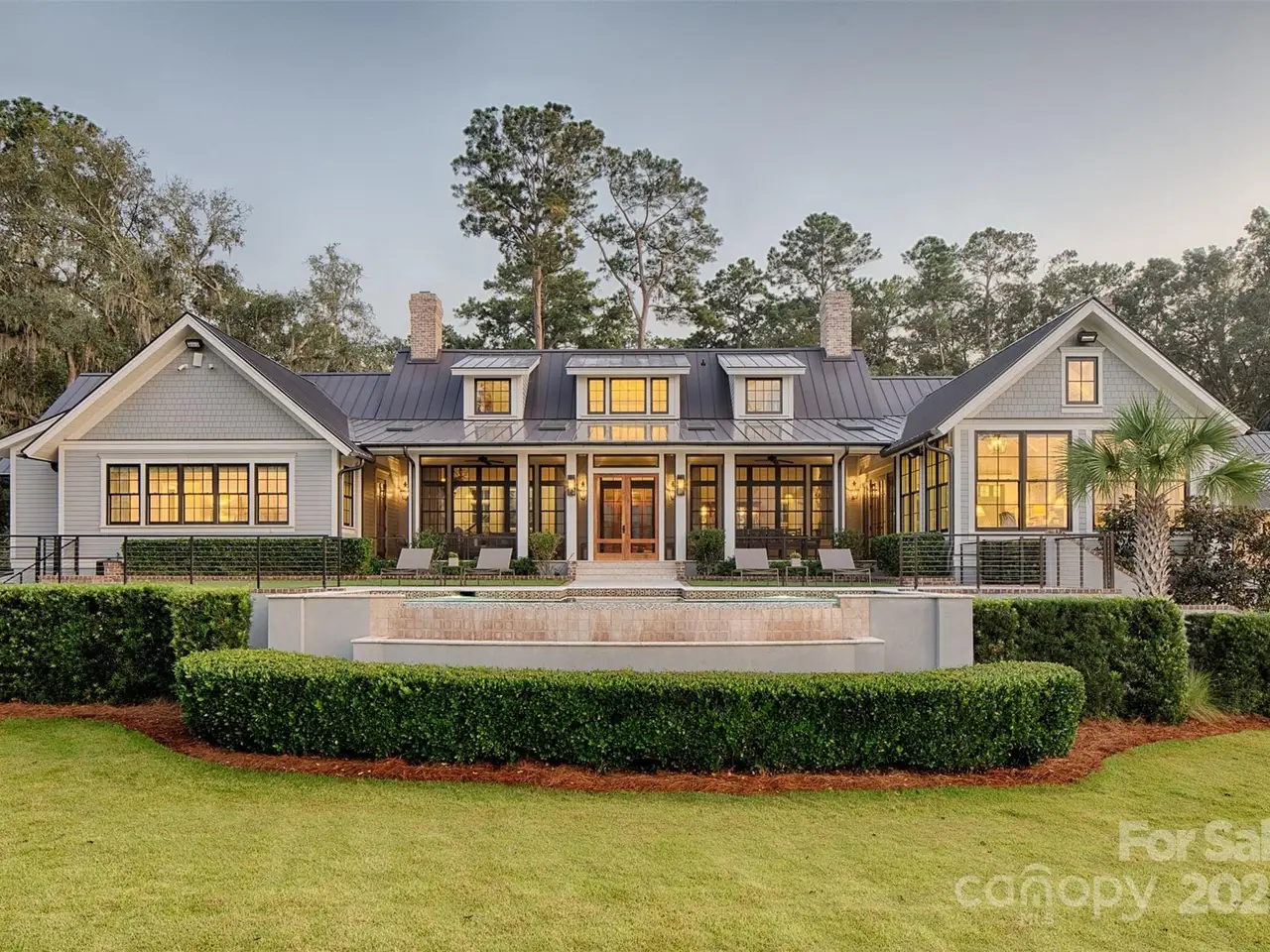 Experience Lowcountry luxury and coastal charm at its finest in this private, gated 10-acre waterfront estate. This preeminent property gracefully commands over 658 feet of the pristine May River shoreline within the highly sought after Palmetto Bluff community. Exuding timeless coastal beauty, the estate known as Heron Hallis a true sanctuary where nature and refined living exist in perfect harmony. Offering panoramic water views, impeccable design and endless amenities, this expansive compound includes a main residence and a fully appointed guest house, offering a total of 9 bedrooms, 9 full baths, and 2 half baths providing both convenience and privacy for family and guests alike. Step inside to discover interiors with unparalleled attention to detail including exquisite millwork, reclaimed wood flooring, and soaring beamed cathedral ceilings. Each living space captures breathtaking panoramic views, blending timeless architecture with modern luxury. The private primary wing is a serene retreat with sweeping river and marsh views, dual spa-inspired bathrooms, and expansive custom closets. The heart of the home is the fully appointed gourmet kitchen, open to the breakfast and family rooms for effortless gathering. Formal and informal living and dining rooms invite both sophisticated entertaining and relaxed day-to-day living. The lower level offers exceptional entertainment spaces with media and game rooms, a temperature-controlled wine room, craft and wrapping room, pressing room, two bunk rooms, and a private guest suite with its own entrance. Outdoor living is equally spectaculara spacious screened porch, infinity-edge pool, and outdoor fireplace create the ultimate setting to fully embrace the lifestyle this exceptional home affords. Additional highlights include extensive conditioned storage, five oversized garage bays, two additional garages for bicycles and golf carts, smart home technology, advanced security, a central mechanical building, and a full-estate generator. The highly acclaimed Montage resort community of Palmetto Bluff is a 20,000-acre guard-gated community nestled along the May River between Hilton Head Island and Savannah, Georgia. This Lowcountry masterpiece is truly a canvas for a life lived with passion and purpose and has been curated for comfort, hospitality and privacy.