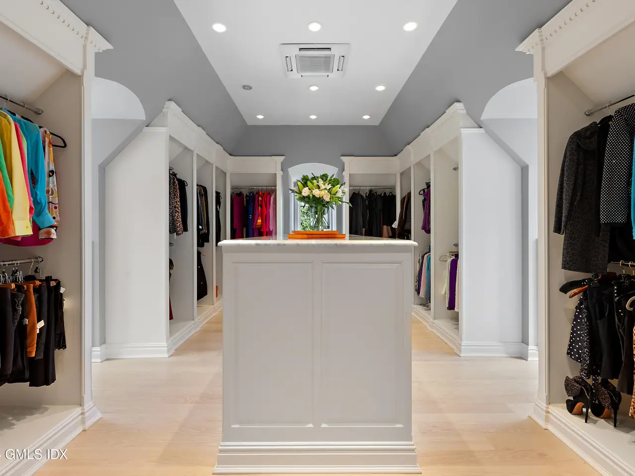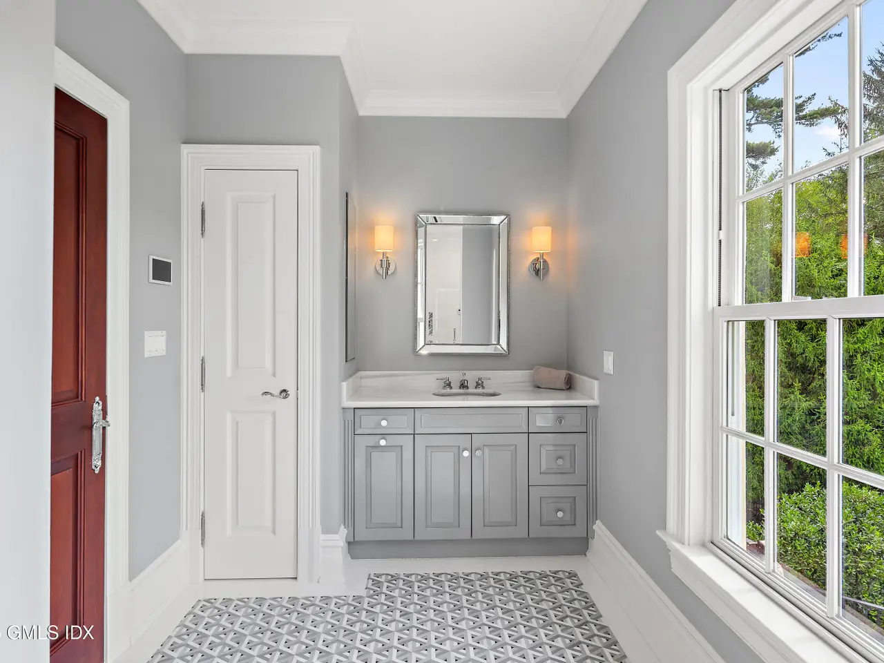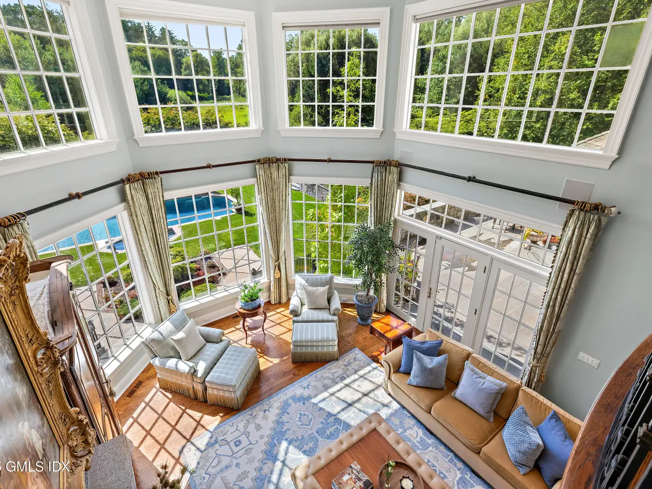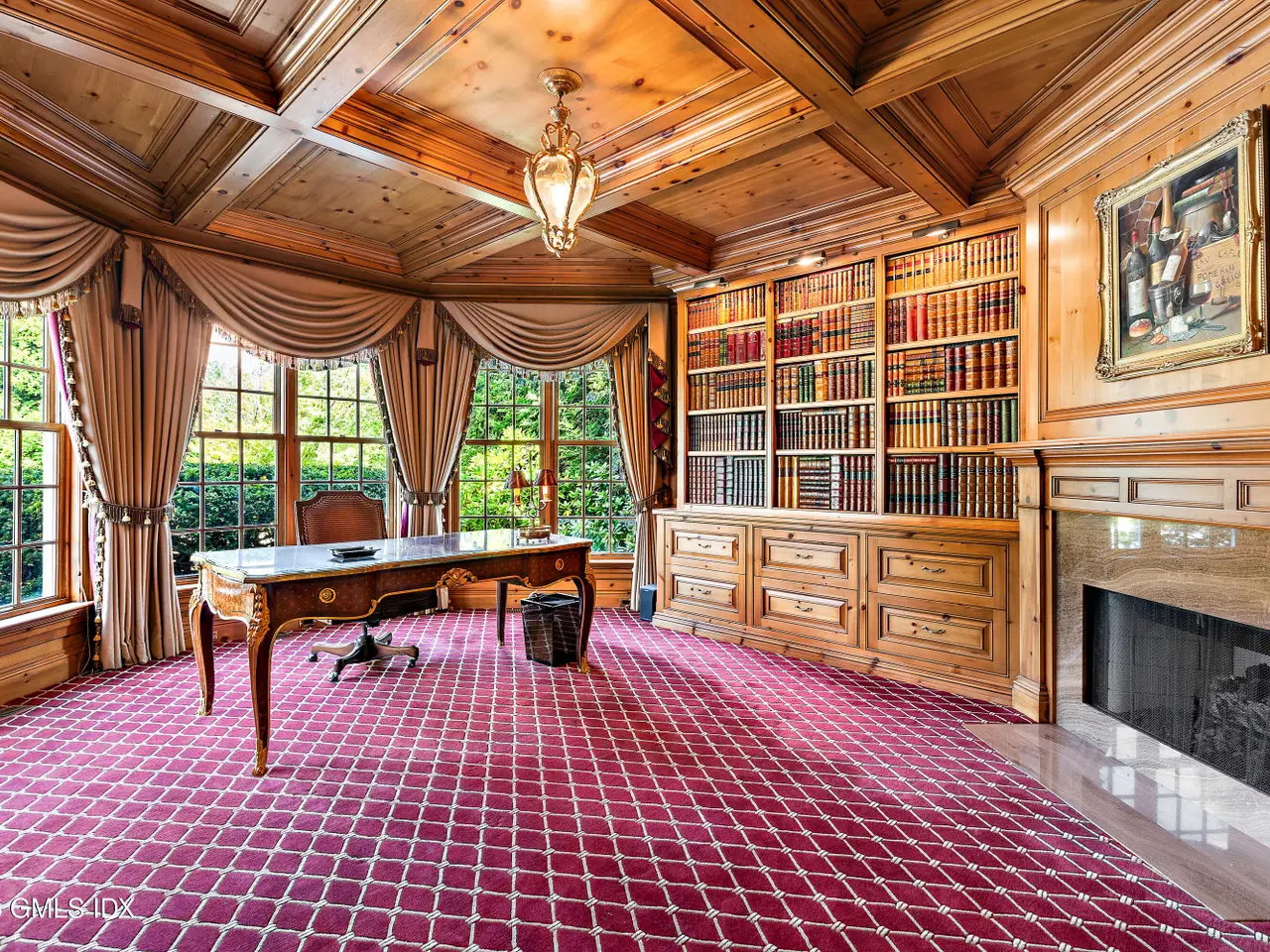 Set within one of Greenwich's most exclusive gated enclaves, this four-acre estate offers exceptional privacy, security, and refinement. With 24-hour staffed security and a backdrop of eight acres of conservation land, it provides rare seclusion. The grounds feature mature specimen plantings and curated gardens. Interiors include Venetian plaster walls, heated marble floors, and custom millwork. Highlights: a hand-carved library, dining room with Parisian lighting, reimagined primary suite with dual marble baths, steam shower, and climate-controlled wardrobe, plus a bespoke wine cellar and bar.