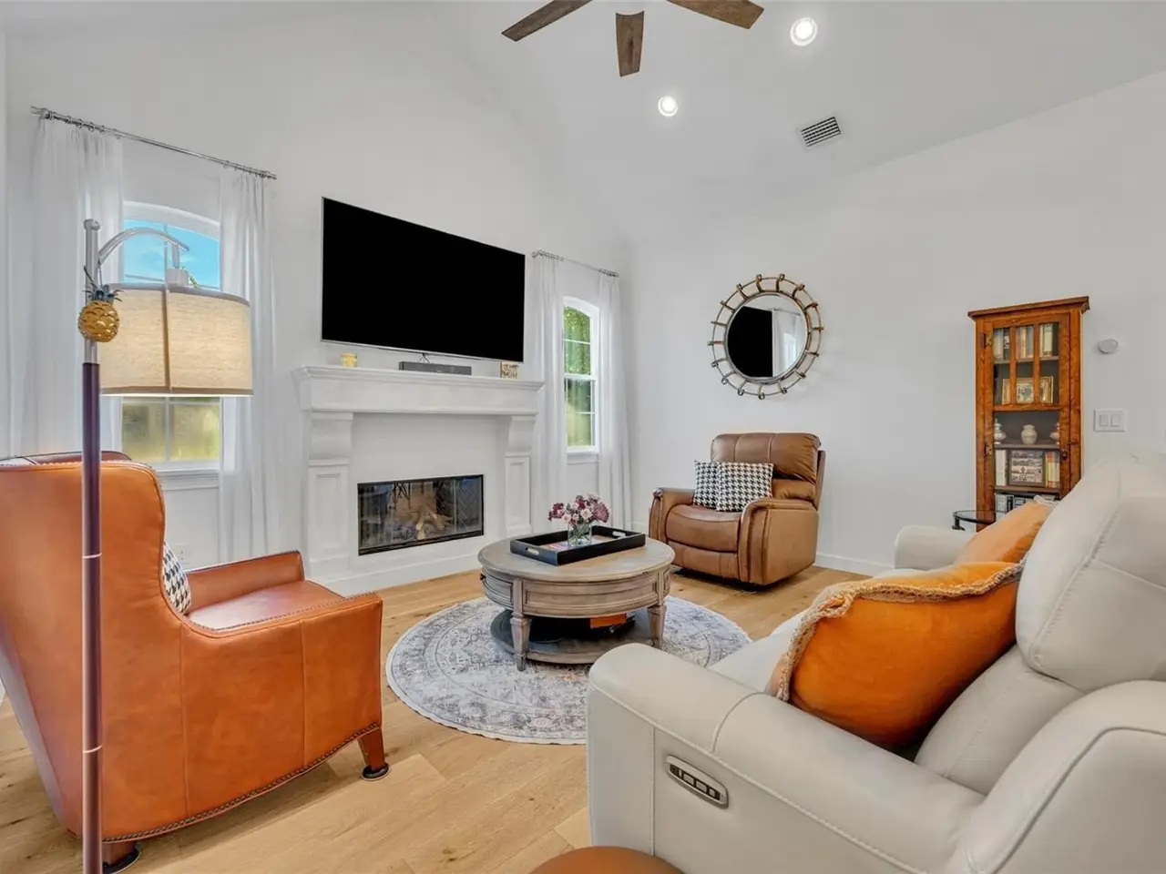 Cathedral ceiling with natural gas fireplace
