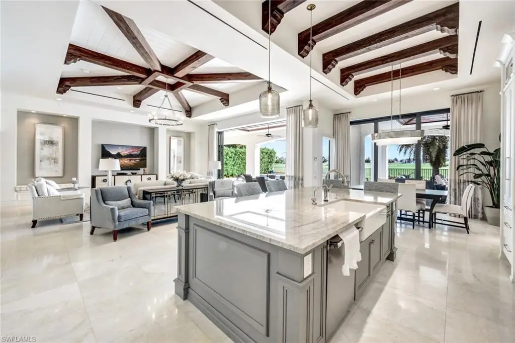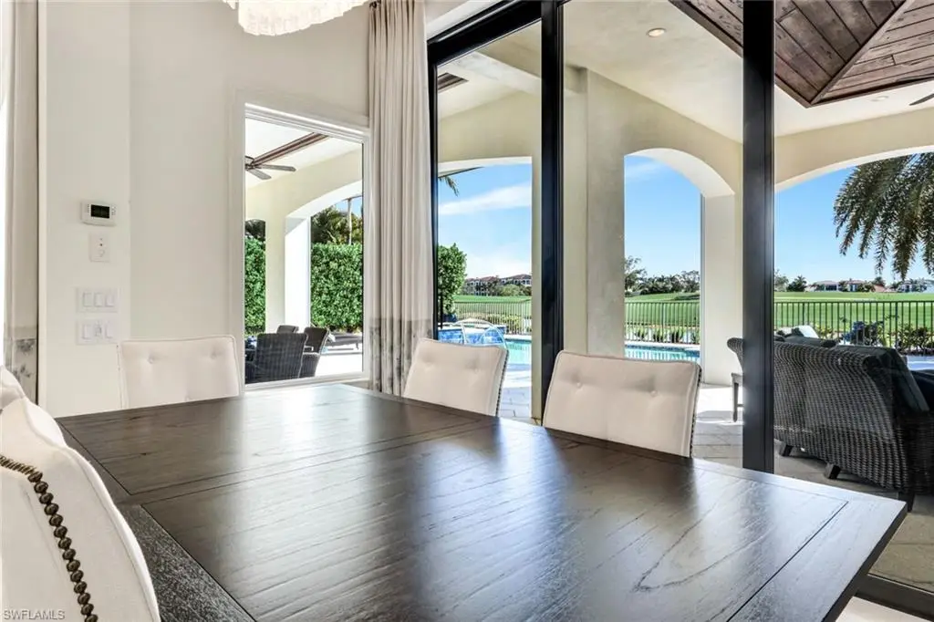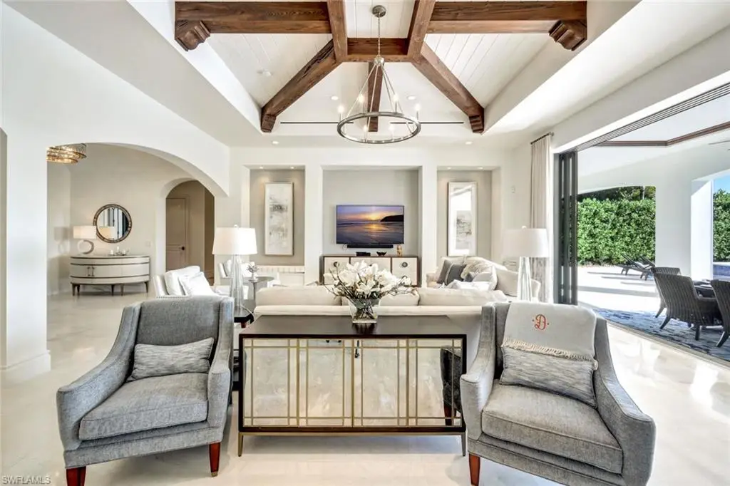 This exquisite custom estate welcomes you with sweeping southern lake views that transition seamlessly to the stunning fairways beyond. With 3 bedrooms, Den and 3.5 baths it is designed for both comfort and sophistication, the open-concept floor plan is impeccably decorated by a professional designer and features rich Pecky Cypress beams, stone and wood flooring, and a gourmet chef's kitchen. The outdoor living space is equally impressive, with a summer kitchen, fireplace, and sparkling poolùprotected by a state-of-the-art ôbuzz offö systemùall surrounded by lush, tropical landscaping that creates the sense of a private island retreat. The private office is flooded with natural light and includes custom built-ins, while the expansive owner's suite showcases breathtaking views and a spa-inspired bath. Every detail has been thoughtfully curated, from the whole-house generator and Icynene attic insulation to automatic storm and bug screens, Sonos sound system, security system, and pool with both gas and heat pump options. Located in Talis Park, a renowned Norman/Dye-designed golf community consistently ranked among Florida's top courses, this residence offers more than just a homeùit offers a lifestyle. Residents enjoy access to the award-winning Vyne House clubhouse, world-class fitness, tennis, spa, fine dining, vibrant social events, and a private beach shuttle. A true blend of timeless craftsmanship and modern luxury, this home embodies the very best of Naples living.