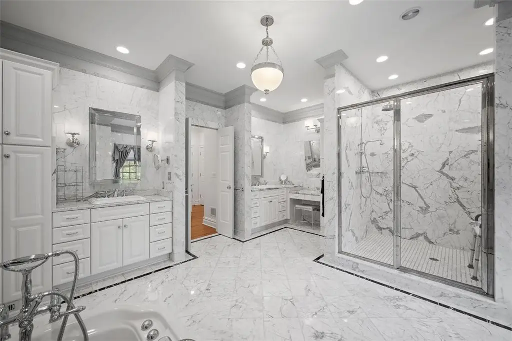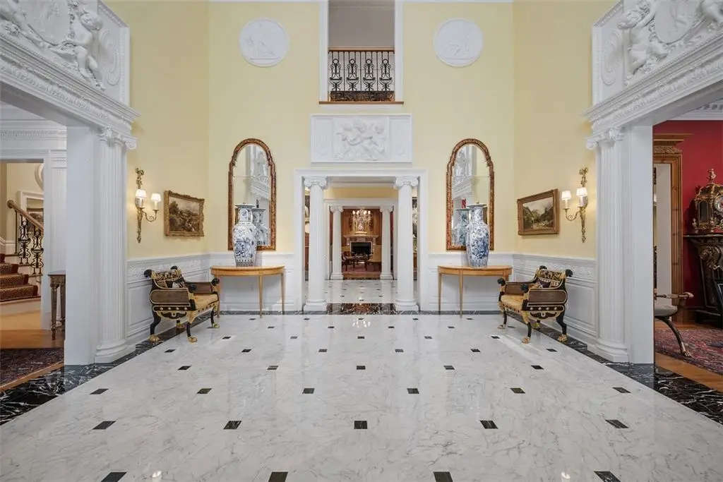 Prestigious Fox Chapel location - just minutes from Fox Chapel Golf Club, Pittsburgh Field Club, and Route 28 - this exceptional estate blends timeless Georgian architecture with modern luxury. A gated courtyard leads to an elegant facade, setting the tone for an interior with soaring ceilings, inlaid marble, intricate moldings, and grand columns. A dramatic entry and floating staircase connect every level, complemented by a rear staircase and elevator. Designed for entertaining, the formal rooms flow effortlessly, while serene library offers a quiet retreat. Chef's kitchen features marble surfaces, premium appliances and full butler's pantry. Upstairs, four spacious bedroom suites-each with a fireplace. Stunning primary suite with dressing room and spa-like marble bath. Separate apartment with private entrance, kitchen, living area, bedroom, bath, and laundry offers flexible accommodations. Manicured grounds, multiple patios, and a sparkling pool complete this rare opportunity to own an exceptional Fox Chapel estate.