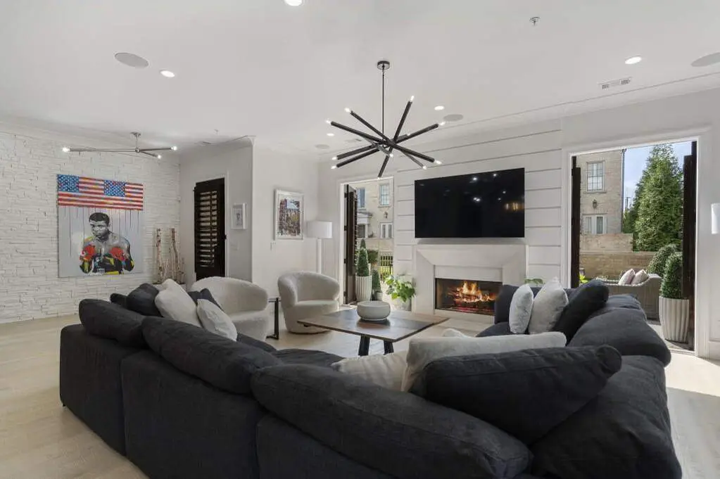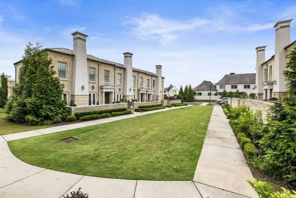 Custom European-Style End Unit Estate Townhome in Avalon - Alpharetta's Premier Mixed-Use Community! Welcome to an exceptional opportunity to own one of Avalon's most sought-after and popular floorplans - a custom-designed, two-story estate townhome situated in the heart of Metro Atlanta's most vibrant mixed-use community. This coveted end unit location offers enhanced privacy, with only one shared wall, and an abundance of natural light that fills every space. Ideally positioned in Alpharetta, this residence offers unrivaled convenience with easy access to GA-400, the Alpha Loop, and charming downtown Alpharetta - all just moments away. But life at Avalon is more than a home - it's a lifestyle. Enjoy the ease of resort-style amenities, world-class shopping, top-rated restaurants, and year-round entertainment events just steps from your door. Private community features such as a sparkling pool, and inviting gathering spaces create an elevated, low-maintenance living experience you will absolutely love. This like-new, all-brick estate townhome is a rare offering, showcasing nearly 3, 700 square feet of thoughtfully designed living space, an impressive 30-foot wide floor plan, 10' high ceilings, and a spacious 3-car garage. The flexible layout includes 4 bedrooms and 3.5 baths, featuring both a primary owner's suite on the main level and a second owner's suite upstairs - ideal for guests or multi-generational living. Both suites offer generous custom closets for exceptional storage. Luxurious details are found throughout: rich engineered white oak flooring on both levels, a chef's kitchen with top-tier appliances and timeless designer finishes, and a gated front courtyard that creates a peaceful retreat perfect for outdoor entertaining or relaxing. The entire home has been professionally repainted with high-quality eggshell finish - an expensive upgrade that not only provides a beautiful soft sheen but also allows every wall to be easily cleaned and maintained, preserving the fresh, new feel of the space. To further elevate the home, all-new designer lighting fixtures have been installed, perfectly complementing the modern yet classic aesthetic. For the tech-savvy homeowner, a fully integrated Control4 home automation system manages audio, video, and smart home features seamlessly throughout the residence. Every detail - from the expansive, sunlit layout to the premium finishes - reflects superior craftsmanship and thoughtful design, making this residence both sophisticated and exceptionally livable. If you desire the perfect blend of location, luxury, and effortless lifestyle, this Avalon end-unit townhome stands unmatched - offering the finest in upscale Alpharetta living.