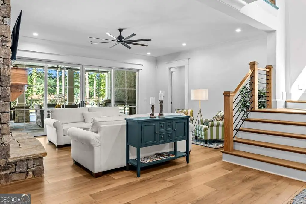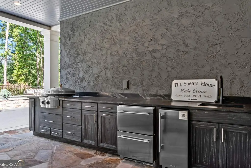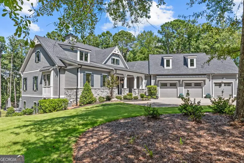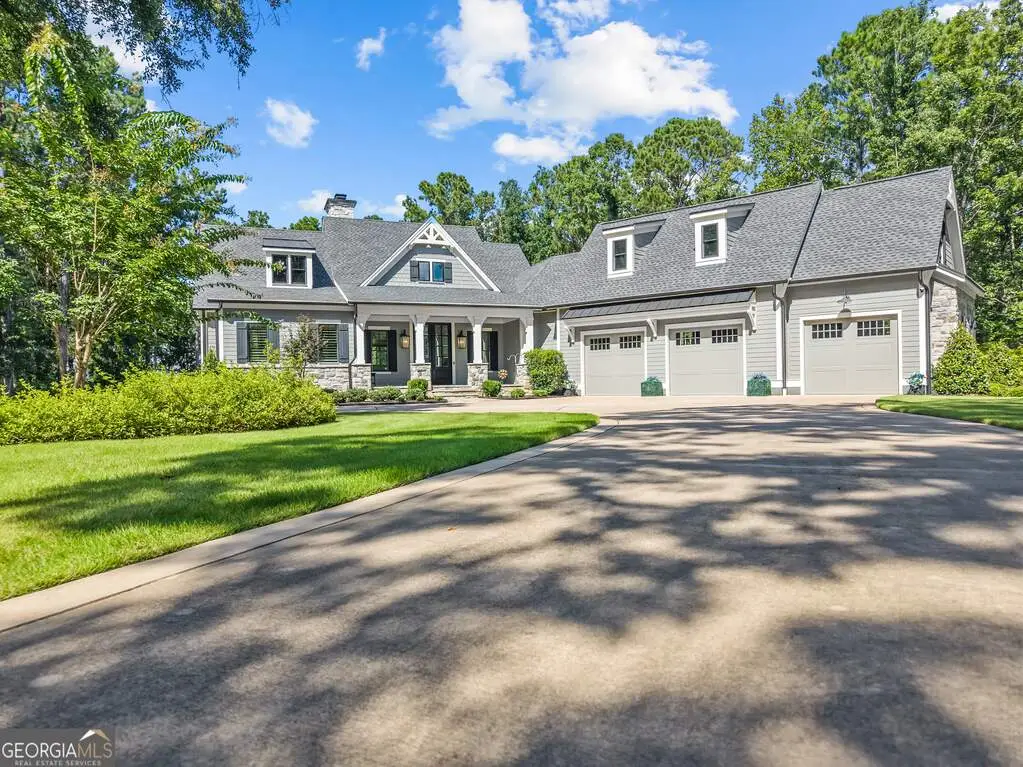 Exquisite Custom Home Overlooking Lake Oconee Nestled on a 1.45-acre flawlessly manicured lot, this magnificent custom-built home exemplifies premier craftsmanship and luxurious living. Perfectly designed to capture both sophistication and comfort, this property is a sanctuary for those seeking a home that stands apart in elegance and prestige. Welcome to Your Dream Home Experience expansive lakeside residence, featuring 4 spacious bedrooms and 3.5 meticulously designed bathrooms. Stepping through the front door, you are greeted by an airy open floor plan and soaring ceilings adorned with wood beam accents and a stunning floor-to-ceiling stone fireplace. A Culinary Haven The gourmet chef's kitchen is the epitome of luxury, outfitted with custom cabinetry and a porcelain island. It's well-equipped with premium appliances, including an adjacent wet bar complete with a Miele built-in coffee maker and a wine cooler, perfect for entertaining guests. Effortlessly extend your gatherings to the all-season screened patio through multi-slide glass doors that merge the great room and dining area with the natural beauty of the outdoors. Private Retreat The main floor is home to the stunning primary bedroom, and a spa-like primary bathroom that features timeless fittings and a custom closet tailored. Additional organized storage solutions are included in the spacious laundry and mudroom, designed with built-in cabinets and cubbies for convenience and style. Elegance Across Levels An elegant staircase leads to the terrace level, offering another open floor plan with a second captivating stone fireplace. This space hosts a versatile great room, dining area, and three impeccably appointed bedrooms. The outdoor experience continues to a summer kitchen exemplifying both functionality and beauty. Luxury Amenities The home's outdoor oasis includes a breathtaking pool with a sun deck, spa and an exquisite water feature that cascades into a Koi fish pond. Children and pets can
