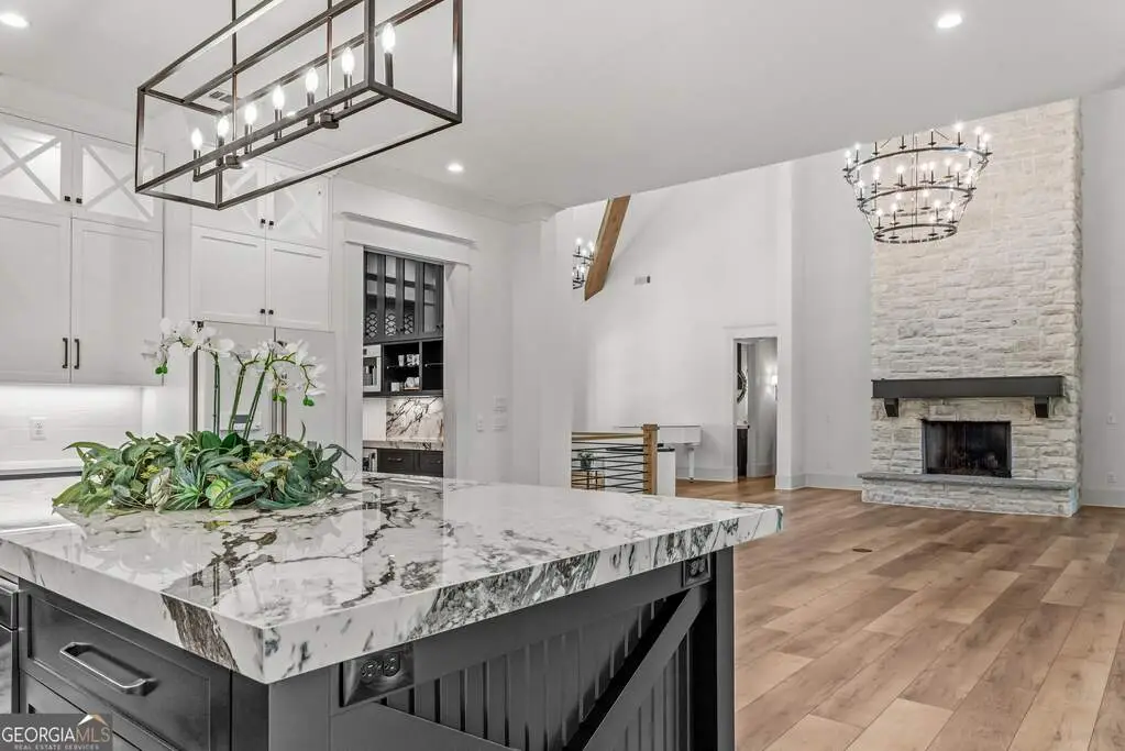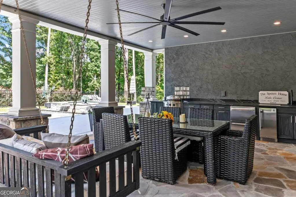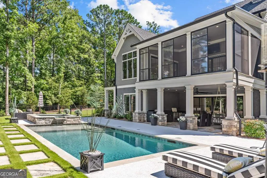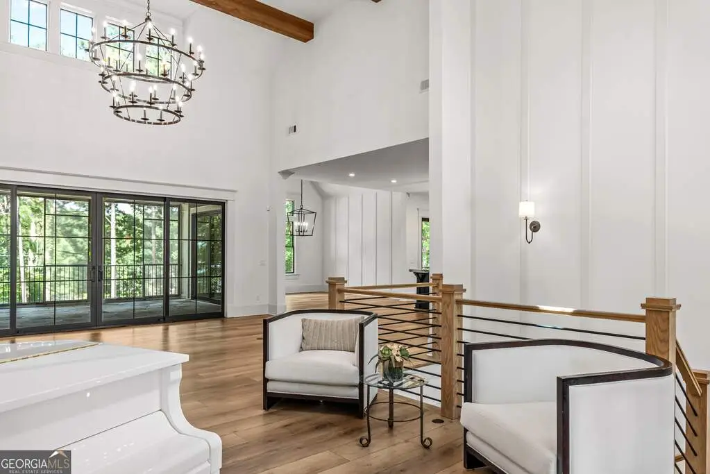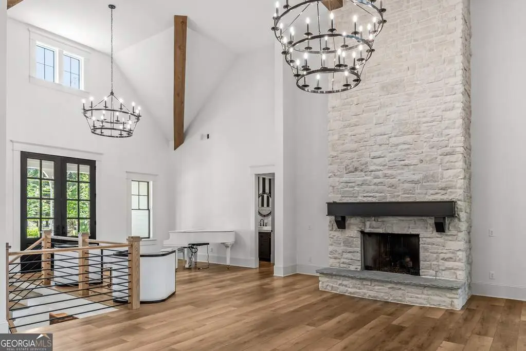 Exquisite Custom Home Overlooking Lake Oconee Nestled on a 1.45-acre flawlessly manicured lot, this magnificent custom-built home exemplifies premier craftsmanship and luxurious living. Perfectly designed to capture both sophistication and comfort, this property is a sanctuary for those seeking a home that stands apart in elegance and prestige. Welcome to Your Dream Home Experience expansive lakeside residence, featuring 4 spacious bedrooms and 3.5 meticulously designed bathrooms. Stepping through the front door, you are greeted by an airy open floor plan and soaring ceilings adorned with wood beam accents and a stunning floor-to-ceiling stone fireplace. A Culinary Haven The gourmet chef's kitchen is the epitome of luxury, outfitted with custom cabinetry and a porcelain island. It's well-equipped with premium appliances, including an adjacent wet bar complete with a Miele built-in coffee maker and a wine cooler, perfect for entertaining guests. Effortlessly extend your gatherings to the all-season screened patio through multi-slide glass doors that merge the great room and dining area with the natural beauty of the outdoors. Private Retreat The main floor is home to the stunning primary bedroom, and a spa-like primary bathroom that features timeless fittings and a custom closet tailored. Additional organized storage solutions are included in the spacious laundry and mudroom, designed with built-in cabinets and cubbies for convenience and style. Elegance Across Levels An elegant staircase leads to the terrace level, offering another open floor plan with a second captivating stone fireplace. This space hosts a versatile great room, dining area, and three impeccably appointed bedrooms. The outdoor experience continues to a summer kitchen exemplifying both functionality and beauty. Luxury Amenities The home's outdoor oasis includes a breathtaking pool with a sun deck, spa and an exquisite water feature that cascades into a Koi fish pond. Children and pets can