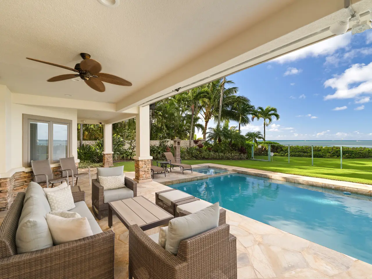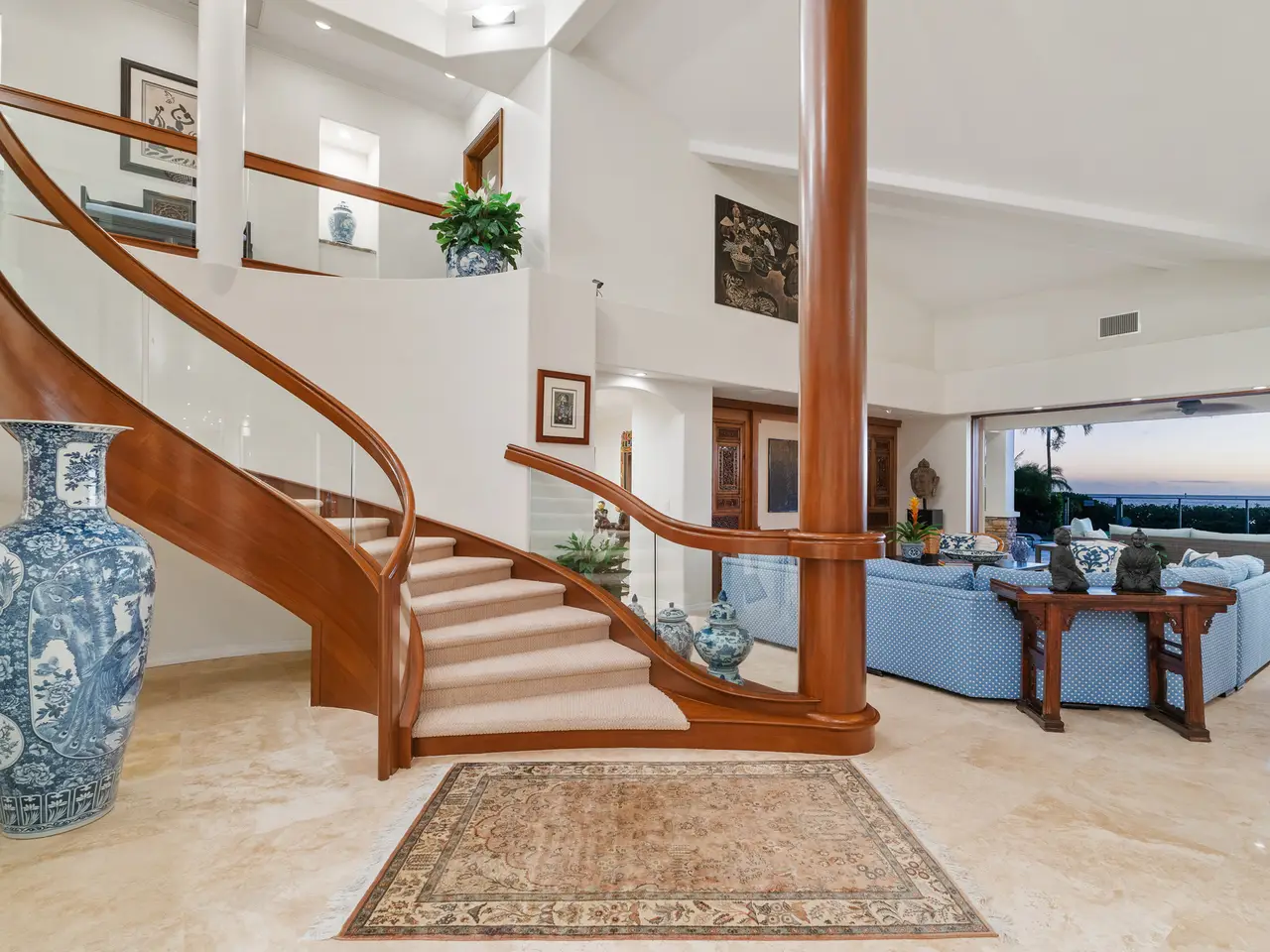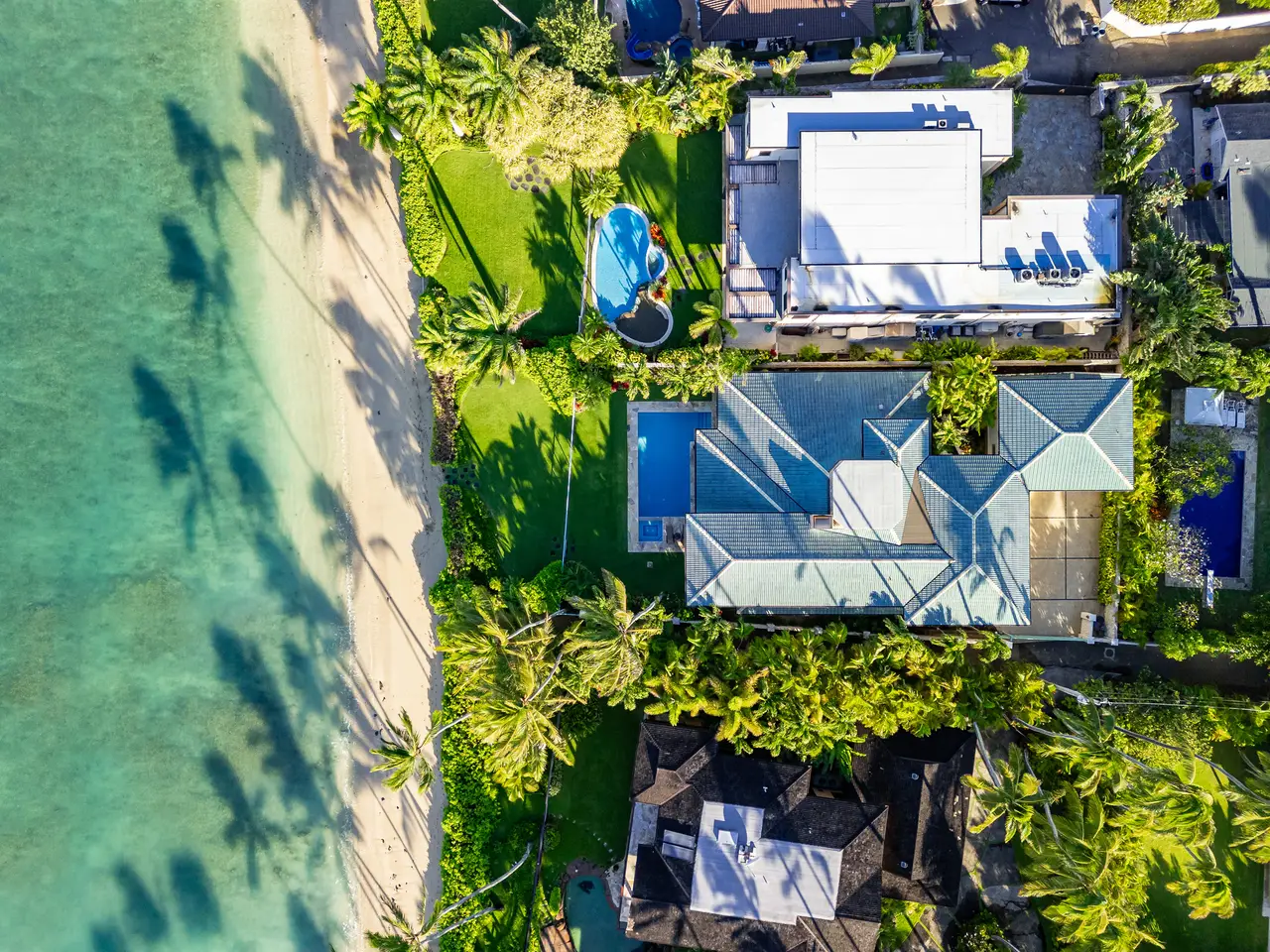 Unquestionably one of the most beautiful oceanfront views on Oahu. With Koko Head on one side, Diamond Head and the twinkling Honolulu skyline on the other, and the vast blue Pacific ahead, this estate in the prestigious Portlock neighborhood offers breathtaking panoramas from sunrise to sunset. Set along a white sandy beach, this impeccably maintained residence spans 7,461 sq/ft of thoughtfully designed living spaces. Cathedral ceilings, travertine floors and a grand circular staircase define the open-concept interior, while 8 foot pocket sliding doors extend to a private tropical retreat with a pool and spa. The main home features five bedrooms and five and a half bathrooms, including two oceanfront primary suites—one on each level—each with a lanai framing the stunning oceanfront views. Open the doors to let in the trade winds and the rhythmic sound of the waves, creating an atmosphere of complete serenity. A studio apartment above the three-car garage provides additional accommodations. A high-end kitchen and gated grounds complete this exceptional residence. Enjoy the convenience of having direct beach access to the ocean from your backyard!