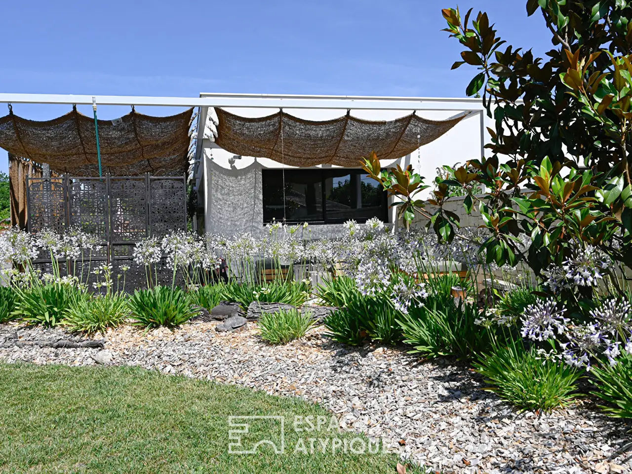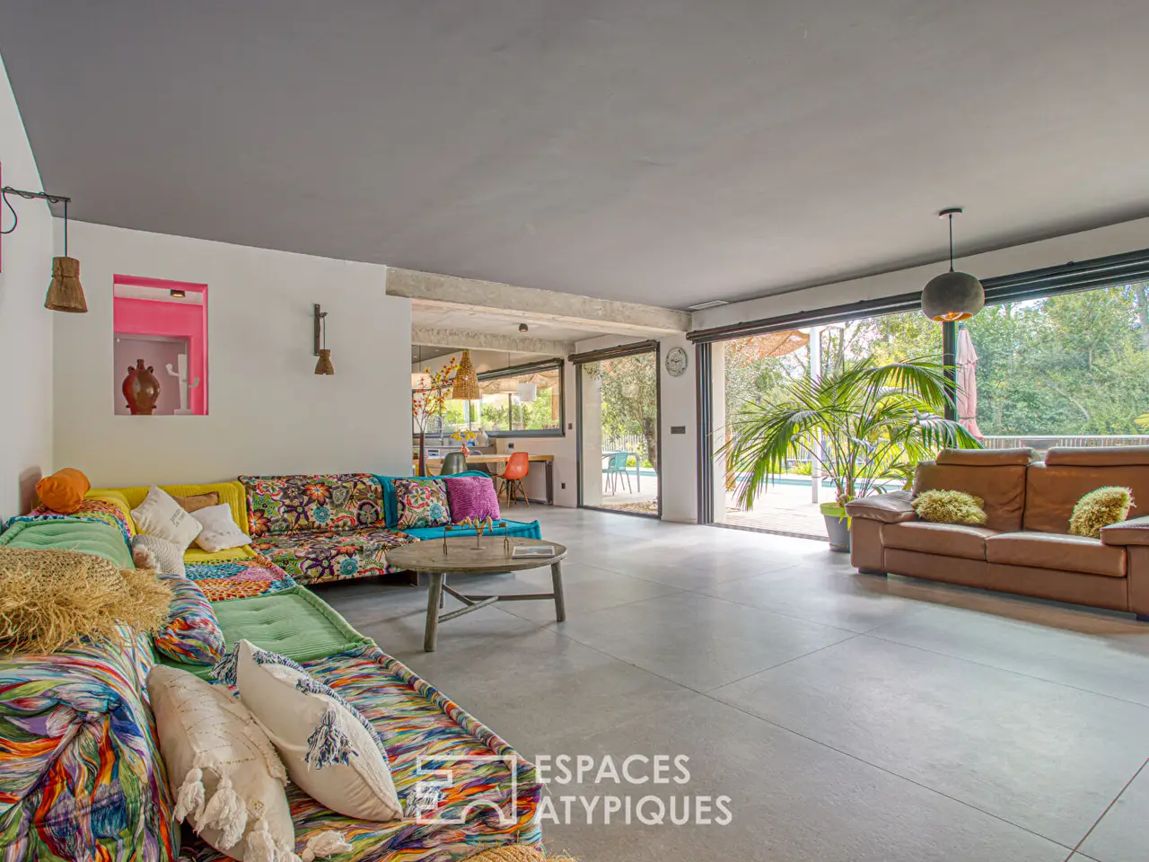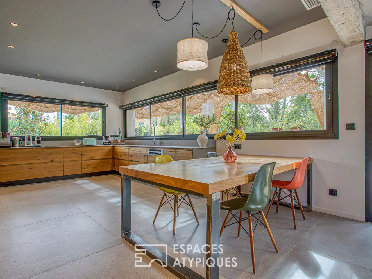 Hidden in a residential area just 1.8 kilometers from the historic center of Isle-sur-la-Sorgue, this magnificent house, completely renovated and extended, is an elegant and modern refuge. Under the guidance of a renowned architect and the mastery of passionate local craftsmen, the owners saw their dreams go from paper to reality. Every detail, every opening was designed with comfort and aesthetics in mind. The main part of the renovation and extension consisted of opening the house to the outside so that each space could benefit from the garden. Free of unnecessary partitions, the volumes favor space and beautiful perspectives. The beauty of the materials is revealed from the entrance with a large pivoting door with an offset glass axis. Light floods the house, and the gaze is drawn directly to the garden. A large kitchen, dining room with its ceramic worktop simply combines refinement and functionality. In the extension, the living room offers a view and direct access to the garden. Natural light dances on the large floor tiles and wide glass doors. A magnificent Focus fireplace warms the space during beautiful winter evenings. The master suite also benefits from the view of the garden, and from the bathtub, in its adjoining bathroom, the gaze is lost on the crown of trees. An office, which can also become a bedroom, as well as a second bedroom, complete the living space. The garden, created from scratch by a landscape artist, is home to a swimming corridor and a Nordic spa, all surrounded by agapanthus and Mediterranean species. Four large steel tubs form a vegetable garden where strawberries, tomatoes and aromatic herbs grow next to fruit trees and vines. Photovoltaic solar panels are installed on the roof of the kitchen, scullery and garage. An application on the phone facilitates the management of the video portal, the alarm and the integrated watering and the garden lighting can be done remotely. Everything has been designed to provide the greatest comfort in this house entirely designed on one level. ENERGY CLASS: C / CLIMATE CLASS: A Average energy prices indexed for the years 2021, 2022, 2023 (including subscriptions): between EUR1,590 and EUR2,200 euros. REF. 856EAA Additional information * 5 rooms * 2 bedrooms * 1 bathroom * 1 bathroom * Outdoor space : 1377 SQM * Parking : 6 parking spaces * Property tax : 2 100 €