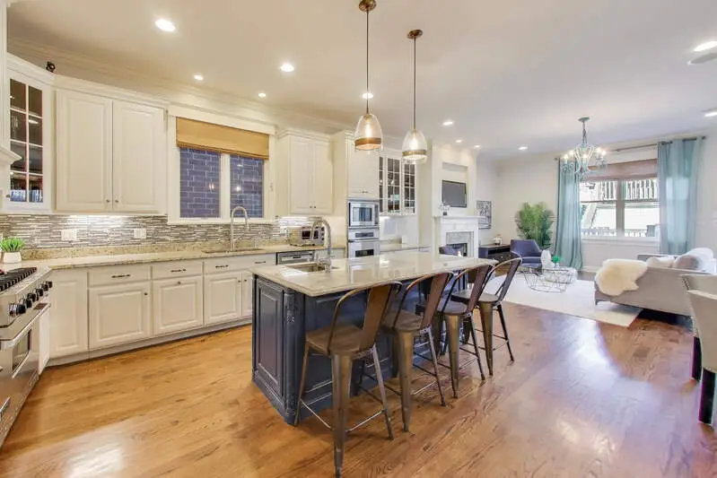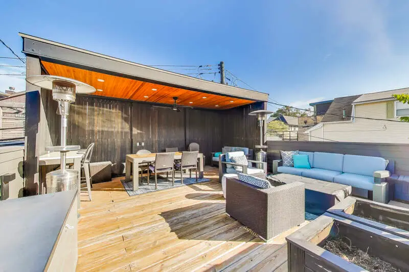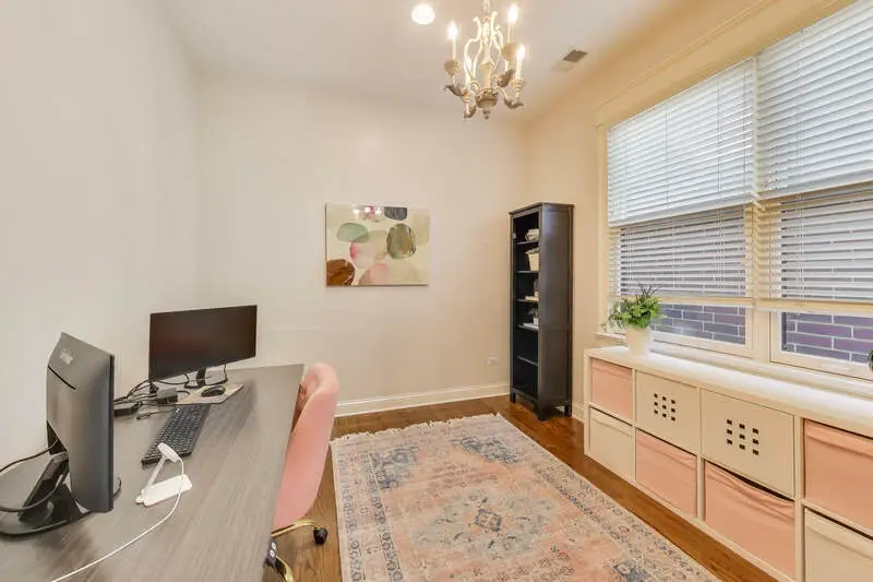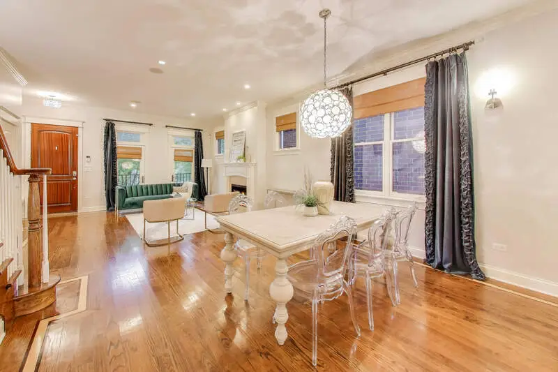 Stunning 5000 sq ft, 6-bedroom residence in the heart of Roscoe Village and the coveted Audubon School District! With 4 bedrooms conveniently located on the upper level, this thoughtfully designed home combines luxurious living with family-friendly functionality. Enjoy soaring 10' ceilings, radiant heated lower level, and three fireplaces throughout. The chef's kitchen boasts SubZero, Viking, and Dacor appliances, granite countertops, custom cabinetry, and premium Grohe and Kohler fixtures. Spa-inspired baths feature steam and rain showers, whirlpool tubs, and double vanities. Exceptional outdoor space includes a paver patio, garage roof deck, and two additional decks off a spacious top-floor bonus room. The finished English basement offers a rec room, office, and guest suite-perfect for extended family or flexible living. Zoned HVAC, pre-wired sound, and incredible storage complete this exceptional offering-just steps to parks, dining, and all the charm of Roscoe Village!