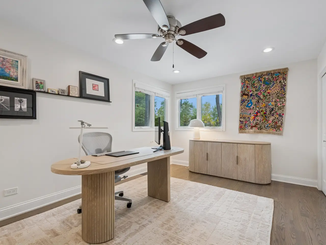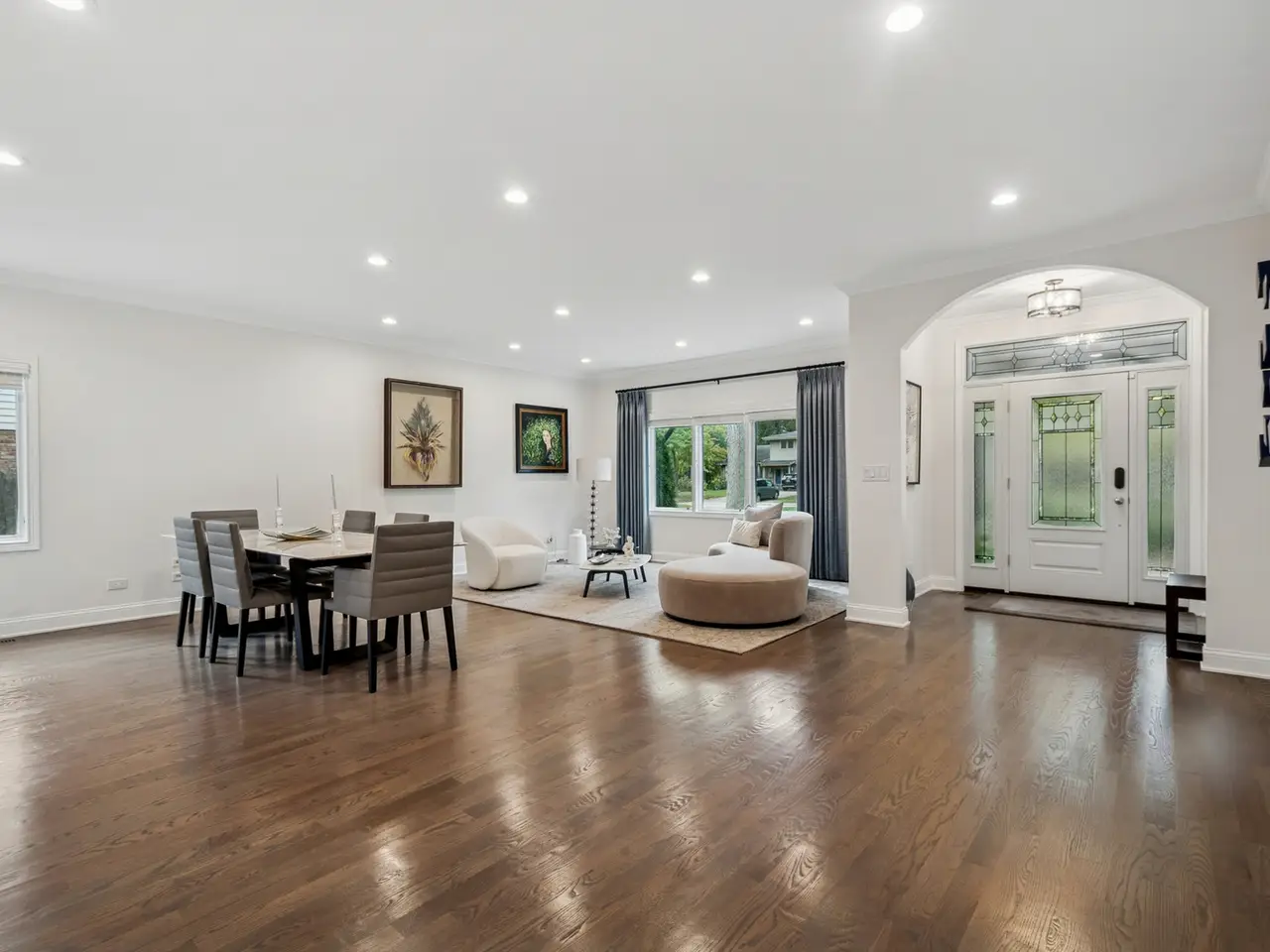 Impeccably renovated and thoughtfully upgraded, this 4,225 sq. ft., 4-bedroom, 5-bathroom home in northern Highland Park perfectly blends modern luxury with timeless design. Taken down to the studs during a complete 2019-2020 renovation, the home offers all-new systems including HVAC, plumbing, roof, and appliances, providing move-in-ready peace of mind. The main level showcases an elegant open layout anchored by a showstopping chef's kitchen with a 15-foot island, Sub-Zero refrigerator/freezer, Wolf six-burner range with dual ovens, Bosch dishwasher, Thermador drawer microwave, beverage refrigerator, and farmhouse sink. Recent enhancements include Waterstone brushed brass fixtures and matching luxury hardware. Red oak hardwood floors in a modern gray finish run throughout, with recessed lighting, Lutron dimmers and custom Hunter Douglas motorized blinds to enhance both comfort and sophistication. The upper level features a luxurious primary suite with vaulted ceilings, a spa-quality bath, and generous closet space, while each additional bedroom includes a private full bath. A third-floor laundry room adds convenience, and the finished lower level offers flexible living space for a recreation room, gym, or fifth bedroom. A Trex deck with built-in lighting and a natural gas fire table creates a seamless indoor-outdoor flow. Additional highlights include Nest thermostats, a SimpliSafe security system, a spacious mudroom with built-ins, a fully fenced backyard, and an attached two-car garage. Ideally situated near parks, restaurants, the train station, and Fort Sheridan's scenic lakefront trails, this home offers the best of Highland Park living.