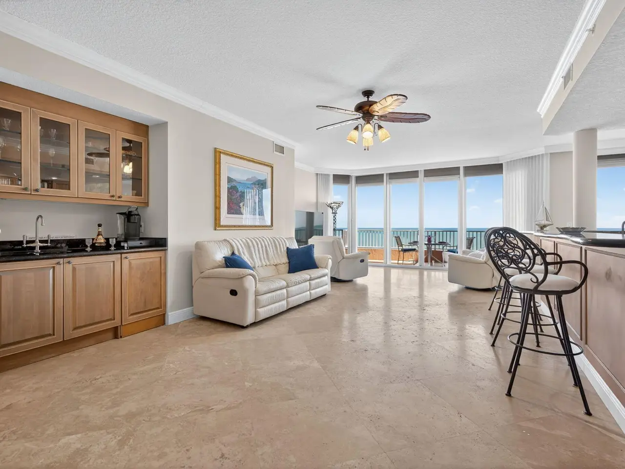 OCEANFRONT PENTHOUSE Discover unparalleled oceanfront living in this rarely available stunning penthouse offered with a private pool side cabana where luxury meets breathtaking natural beauty and stunning oceanviews serve as your ever-changing artwork. Prepare to be captivated by direct turquoise oceanviews stretching endlessly across the Atlantic coastline. The expansive kitchen and living room are perfectly framed by mesmerizing ocean panoramas, creating an atmosphere where everyday living feels like vacation.Expansive East/West balconies offer captivating sunrise & sunset views. A truly exceptionalopportunity to own coveted oceanfront real estate in a premier location w/ incredible amenitiesfor the absolute ultimate luxury coastal living experience.