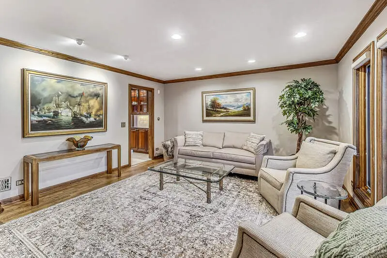 Located in Lincolnwood's premier neighborhood, The Towers, this exceptionally well built, expansive home offers luxury, space, and thoughtful design throughout. The recently updated eat-in kitchen features Wolf and Sub-Zero appliances, granite countertops, custom cabinetry, a butlers pantry and a walk-in pantry. The family room includes a fireplace, warm wood floors, and floor-to-ceiling windows that open to the backyard. A spacious dining room and formal living room are ideal for entertaining. The main level also includes a large mudroom, custom wood-paneled office, and an ensuite bedroom with a walk-in closet and attached bath with walk in shower. Upstairs, the primary suite overlooks the backyard and features an oversized walk-in closet, a spa bath with jetted tub, walk-in shower, dual vanities, and a fantastic sauna. Three more generously sized bedrooms complete this level, including a second ensuite bedroom with two walk-in closets and a hall bath to service the additional spacious bedrooms. The finished basement offers two large rec rooms-one for lounging and one for games and exercise-plus ample storage. Outside, the fully fenced backyard includes mature trees, a grassy lawn, and a large paver patio perfect for outdoor dining. A 3.5-car attached garage completes the home. Tucked on a quiet cul-de-sac near playgrounds, shopping, restaurants, and the phenomenal Lincolnwood Aquatic Center, this home combines comfort, convenience, and luxury in one of the area's most desirable locations just 13 miles from downtown Chicago, making a commute to work or nightlife a breeze.