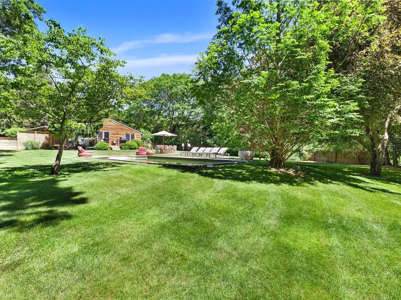 A rare opportunity with great charm in Southampton, sits this updated and well-appointed contemporary with a separate accessory apartment. Conceptualized by world-renowned designer, Elsa Soyars, the single-story four bedrooms and two full baths main house offers charm, style and timeless elegance on 1.03 acres. The bright foyer with vaulted ceilings, opens to a lovely living room and dining area with a wood-burning fireplace. The open floor plan includes a stylishly-renovated kitchen with French doors leading to the outdoor space, which is secluded and tranquil, featuring a deck overlooking the heated swimming pool, multiple entertaining areas and a broad lawn with beautifully mature landscaping. The cottage offers an additional approximately 600 square feet of living space, which has two floors and separate from the main house, has a renovated kitchen and full bath, central air conditioning with a second floor studio, as well as a spacious private outdoor patio and parking area. This gem presents a great potential investment or an opportunity to create a serene Hamptons retreat, conveniently located just outside Southampton Village and world-class shopping, restaurants, bay and ocean beaches. Listing ID: 914528