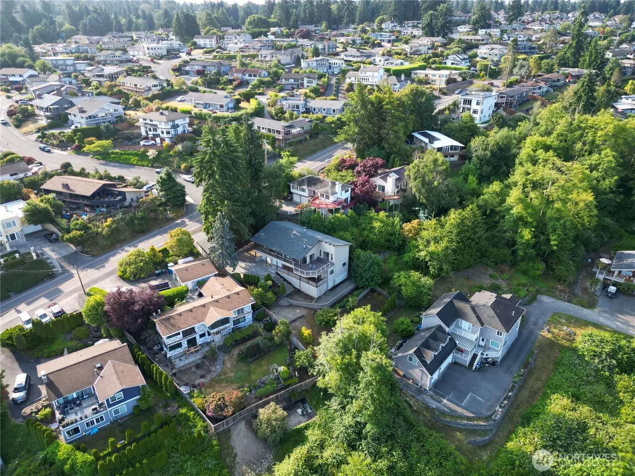 Rare find--offering panoramic Puget Sound views from nearly every room. Kitchen features solid oak upper cabinets, granite tile counters, tile floors, eating nook & a built-in pantry. Formal dining & an expansive family room w/fireplace & freestanding wood stove create a space ideal for entertaining. Primary suite boasts 3 closets & a en-suite bath w/heated floors, dual vanities, & a soaking tub. Second bedroom suite offers its own private entrance, a large open balcony, & direct access to a full bath w/heated floors & tiled tub/shower. Step onto the elegant deck to relax, dine, or simply soak in the view. Outdoor storage, deep 2-car garage, & a terraced yard complete this thoughtfully designed home--offering a lifestyle few others can match.