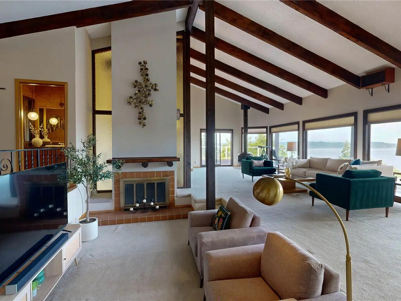Expansive family room with fireplace