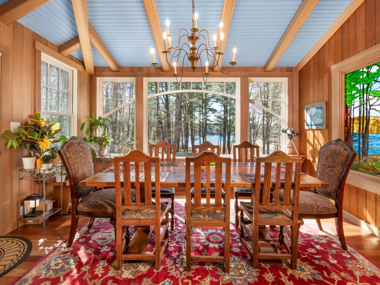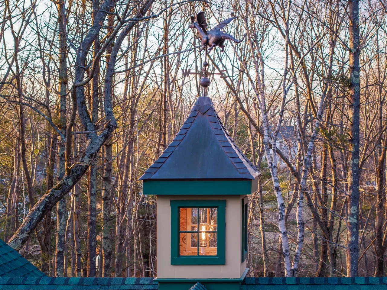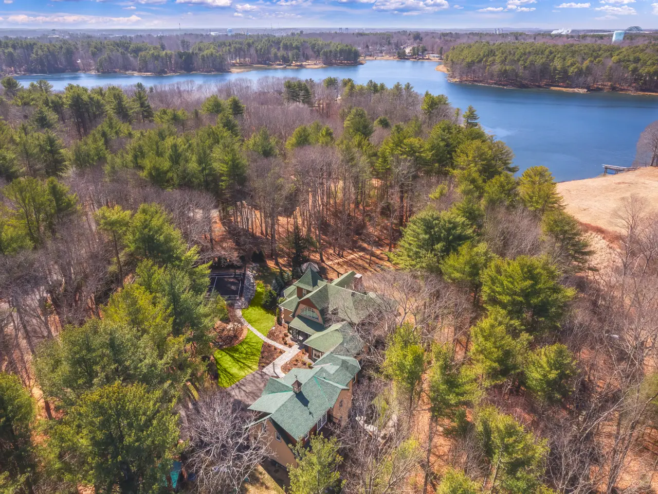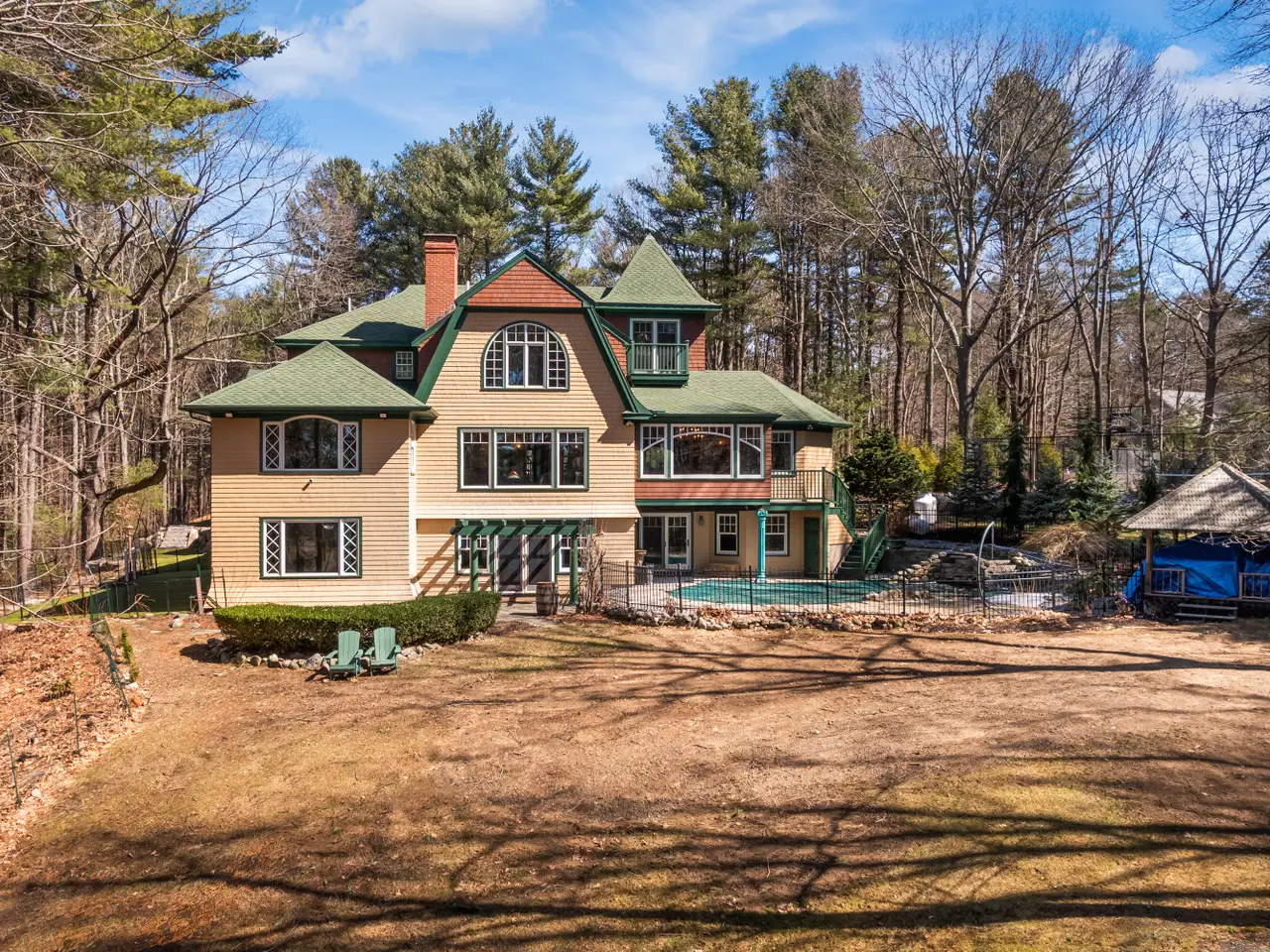 Stunning shingle-style home w/in-law suite and attached Carriage House. Privately nestled on over 6 private acres of meticulously landscaped fenced grounds with water views to Spruce Creek. With over 7,000 square ft of total living space, 6 BR's, and 8 baths, this home presents an unparalleled blend of luxury, comfort and serene natural beauty. The main level is accessed by a grand covered front porch with an oversized hand-carved wood door that opens into a breathtaking cathedral foyer. Greeting you is a mahogany staircase with views to the sunken LR with hand-carved fireplace and water views down to Spruce Creek. Off the LR sits a sun-drenched all-season porch which backs to the gourmet kitchen featuring hand-carved custom-made teak cabinets and island and DR with custom glass chandelier. A MBR suite with lighted dome ceiling, 2 cedar closets, jacuzzi tub, oversized shower and water views rounds out the back side of the home while an additional 2 mudrooms, laundry, 2 half baths, bar with cathedral ceiling and FR with built-ins and pellet stove complete the first level. Moving to the 2nd and 3rd levels you will find 2 BR's, 2 full baths, an office with deck, private nook and storage. The ground level in-law suite features a separate entrance, kitchenette, BR suite w/water views, and laundry. Rounding out the ground level is a fitness room, storage, Library, and Playroom with access to the inground pool, stone patio and backyard. The 1,900-square-foot 2023 Carriage House offers its own separate entrance, kitchen, laundry, LR, 2 BR's and passenger elevator, all above the 3-bay garage with electric charging stations. Other features: whole house generator, custom stained-glass window, 3 gas fireplaces, rosewood flooring, heat pumps, teak gazebo, tennis court, walking paths, RO H2O systems, fenced trails, and much more. Located in a private community, this extraordinary estate offers easy access to Portsmouth, I-95, and is commutable to Boston and Portland!