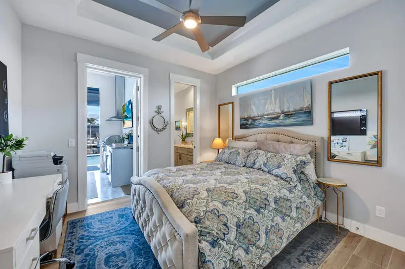 Nestled in the picturesque city of Punta Gorda, this waterfront haven offers direct Gulf access and a lifestyle of unparalleled luxury. Imagine stepping into a world where the views and outdoor spaces effortlessly blend into one stunning panorama: a saltwater pool and spa adorned with handcrafted marble pavers invites you to unwind, while an expansive outdoor kitchen sets the stage for al fresco dining under the stars. Enjoy effortless peace of mind with hurricane impact resistance windows, a remote-controlled hurricane protection screens and no-see-um screens, all while savoring the canal view. A 13,500 lb. boat lift beckons boating enthusiasts, with a boat available for purchase separately for those eager to explore the sparkling waters. Inside, discover the elegance of Thermador appliances in a kitchen that boasts a grand island, perfect for family gatherings and entertaining. Marvel at the soaring ceilings and the modern allure of porcelain tile throughout, complemented by an electric fireplace that exudes warmth and ambiance on those cool nights. The home's design features 10' zero corner pocket sliders, seamlessly blending the indoors with the outdoors. Conveniently located just minutes from downtown Punta Gorda and Fisherman's Village, with easy access to an array of amenities, and only 10 minutes by boat to the beautiful Charlotte Harbor, this property is a sanctuary of style and convenience, offering a slice of paradise tailored to your dreams.