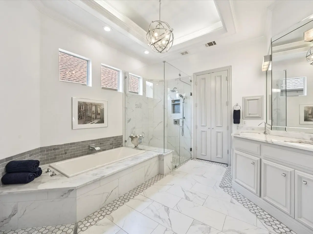 RARE WATERVIEW GEM IN WEST PLANO! Located in the prestigious Lakeside on Preston, this turnkey beauty offers tranquil pond and lake views right in the heart of the city. With over $300K in thoughtful updates, this home blends luxurious living with modern style which elevates every inch of this home. The renovated kitchen showcases a striking quartzite island, Silestone back countertops, Jenn-Air appliances, SubZero fridge-freezer, and sleek new hardware. Designer bathrooms boast exotic quartzite countertops and bath ledge, while the STUNNING primary closet includes custom cabinetry, a center island with chandelier, and numerous upscale details. Enjoy fresh paint, new carpet, tile, wood flooring, and amazing chandeliers in this elegant home. The resurfaced driveway, gym and multicolor LED-lit pool complete this exceptional retreat. A unique opportunity to live lakeside in Plano with every convenience at your doorstep, including walking distance to restaurants, shopping and H-E-B. The community offers many features including pool, pickleball and tennis courts, lake, walking trails, park, playground, and greenbelt. This home truly has it all, extensive updates that make it move in ready, a prime Plano location, and a picturesque neighborhood that is second to none. From the peaceful waterviews to the lush finishes throughout, this is where comfort, convenience, and beauty come together. Your dream home is waiting!