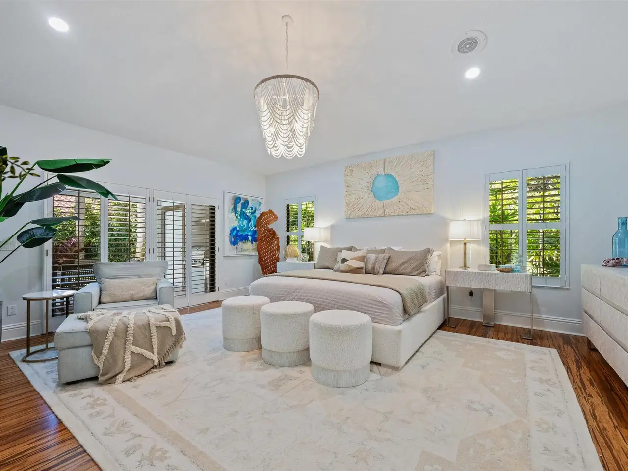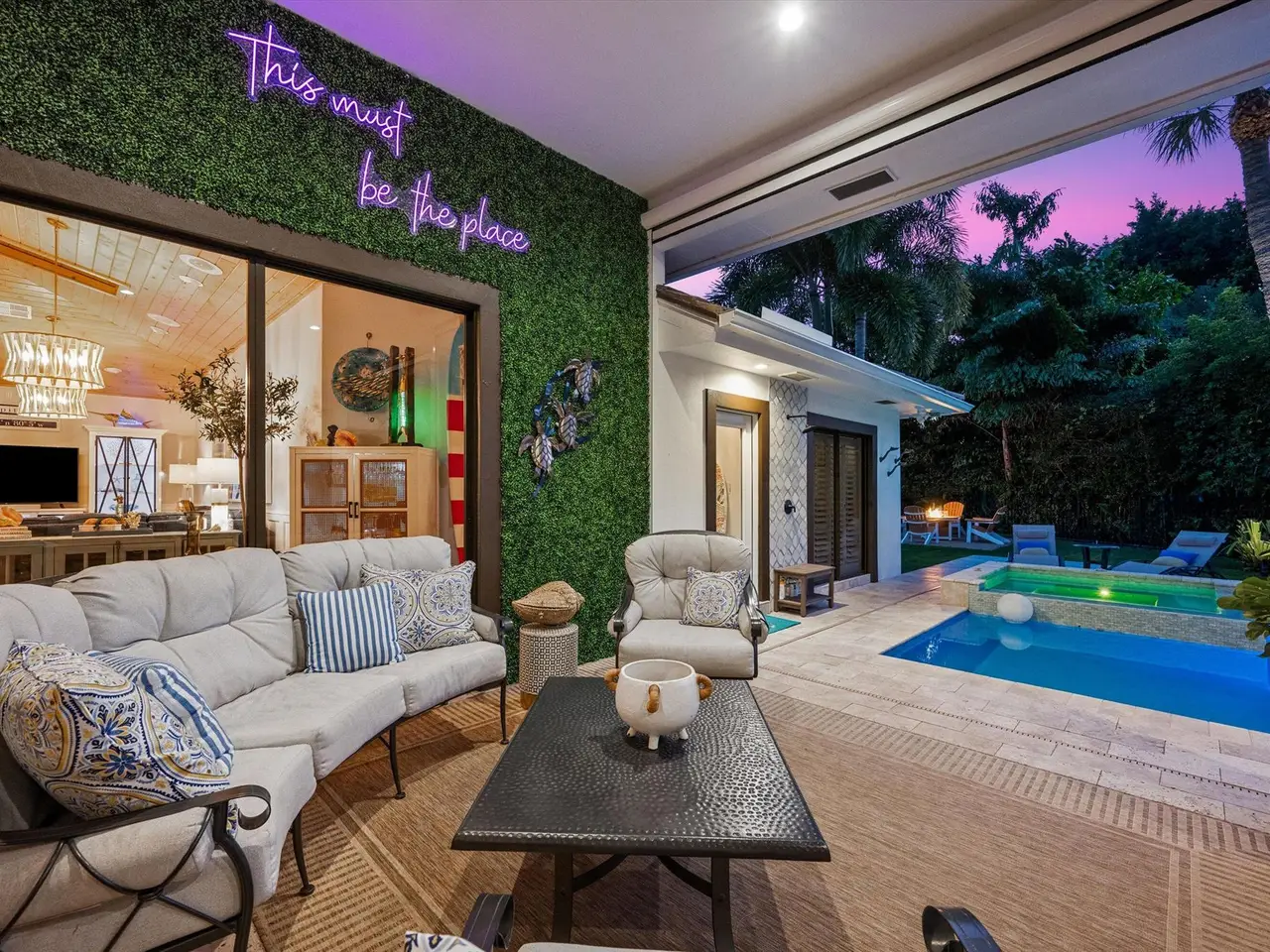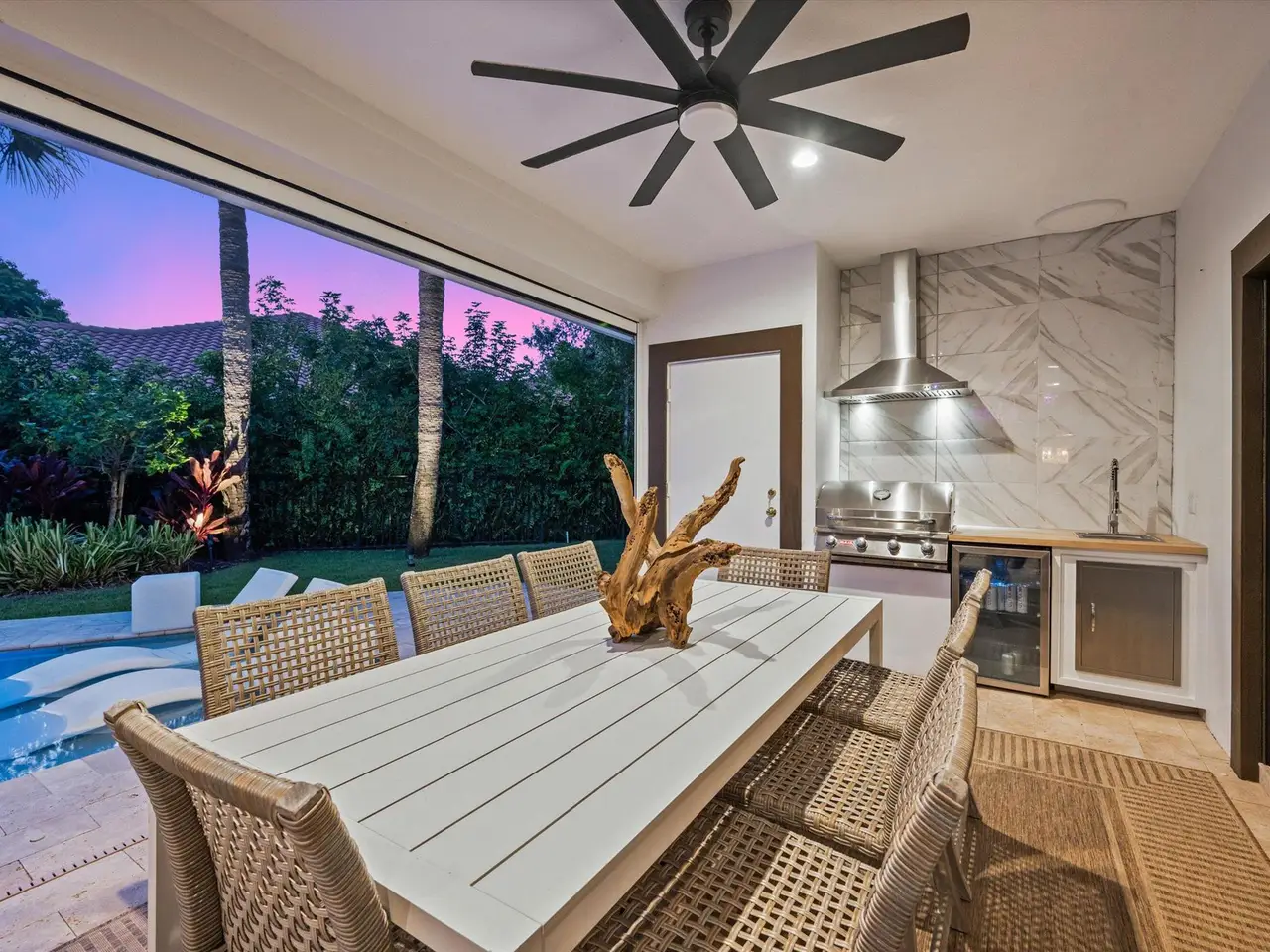 Resort-style living in Heritage Oaks.Located behind the 24-hour manned gates of one of Jupiter's most picturesque neighborhoods, this completely renovated single-story home blends elegant design with relaxed coastal living. Just minutes from the beach and across from the river, the residence features a new double front door, all-new designer lighting, plantation shutters, custom closets, and wide-plank flooring.The kitchen shines with a full-height vent hood, new hardware, and added island outlets. Expansive glass doors retract into the wall, opening to a private , fenced backyard with travertine pool deck, heated pool & spa, upgraded outdoor kitchen, and covered lanai with remote screens. With new landscaping, lighting irrigation, and a tiled roof, this home delivers turnkey luxury.