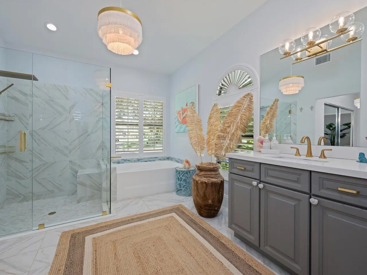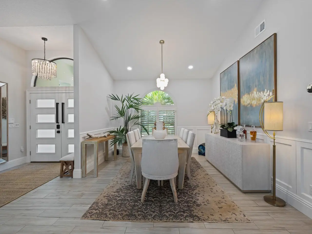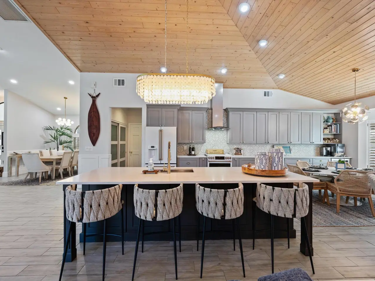 Resort-style living in Heritage Oaks.Located behind the 24-hour manned gates of one of Jupiter's most picturesque neighborhoods, this completely renovated single-story home blends elegant design with relaxed coastal living. Just minutes from the beach and across from the river, the residence features a new double front door, all-new designer lighting, plantation shutters, custom closets, and wide-plank flooring.The kitchen shines with a full-height vent hood, new hardware, and added island outlets. Expansive glass doors retract into the wall, opening to a private , fenced backyard with travertine pool deck, heated pool & spa, upgraded outdoor kitchen, and covered lanai with remote screens. With new landscaping, lighting irrigation, and a tiled roof, this home delivers turnkey luxury.