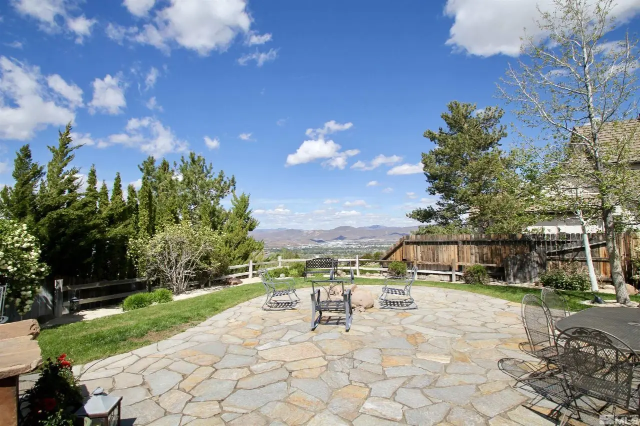 Welcome to the prestigious ArrowCreek Golf Community! This well-maintained home offers great views of the Reno valley's city lights and awesome sunrises & sunsets. The spacious floor plan features single-level living, including a primary suite with sunrise views, two guest bedrooms, a den, formal living and dining rooms, and a family room. As a bonus, there is a 400 sq ft bdrm suite upstairs with built-in desks and a private bathroom, ideal for a home office or guest suite. The primary suite includes a large walk-in closet and an updated bathroom, thoughtfully separated from the guest wing for added privacy. The kitchen and primary suite have been updated with granite countertops, and hardwood flooring extends through most of the living areas. The backyard is built for entertaining, with a built-in gas BBQ island, a fire pit, and stunning valley views. There are raised garden beds for summer gardening. The garage features 220 power (ideal for EV charging), ample storage, and an epoxy floor finish. Major systems - furnace, A/C, and water heater - were replaced between 2018-2019. Washer, dryer, and both refrigerators are included. Golf cart and snow blower are negotiable. ~~~ArrowCreek residents enjoy a 24/7 manned security gate, scenic walking and hiking trails, and the Residents Club offers three swimming pools, spa, tennis/pickleball courts, basketball court, park, picnic area, meeting room, and a fitness center, along with a Bocce ball court. ~~~ Optional membership is available at The Club at ArrowCreek, an exquisitely renovated private golf club featuring two courses, multiple dining venues, an outdoor pool complex, state-of-the-art fitness center, indoor pickleball facility, pro shop, and indoor golf performance center. Located just minutes from Reno, Lake Tahoe, and Mount Rose Ski Resort -and with no state income tax in Nevada - this is an outstanding opportunity to enjoy a premier lifestyle.