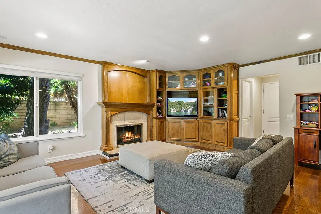 Country Hills East - Meticulously Maintained Cul-de-Sac Home Leaded glass entry doors welcome you into a stunning two-story foyer. Travertine flooring flows seamlessly through the formal living and dining rooms, creating an elegant first impression. The upgraded kitchen is a chef's delight, featuring beautiful custom pecan cabinetry, granite countertops, and stainless steel appliances. Open to the kitchen, the spacious family room is warm and inviting with matching pecan cabinetry, rich wood flooring, a stone fireplace, and recessed lighting. A sliding glass door extends the living space outdoors to a truly one-of-a-kind backyard retreat. Designed for year-round entertaining, it boasts exquisite hardscape, lush greenery, detailed stonework, and a large covered gazebo complete with an outdoor fireplace and TV. Upstairs, you'll find generously sized bedrooms with vaulted ceilings and cedar-lined closets. One bedroom is currently set up as an office with a built-in desk. The remodeled hall bathroom features the same high-quality finishes carried throughout the home for a cohesive design. The primary suite offers a bright, airy retreat with a romantic fireplace, a spa-inspired en-suite with dual vanities, and an expansive mirrored closet. Additional highlights include custom woodwork, plantation shutters, solid wood doors, and thoughtful upgrades throughout. Conveniently located near shopping, dining, movie theaters, and beautiful Laguna Lake, this home truly has it all.