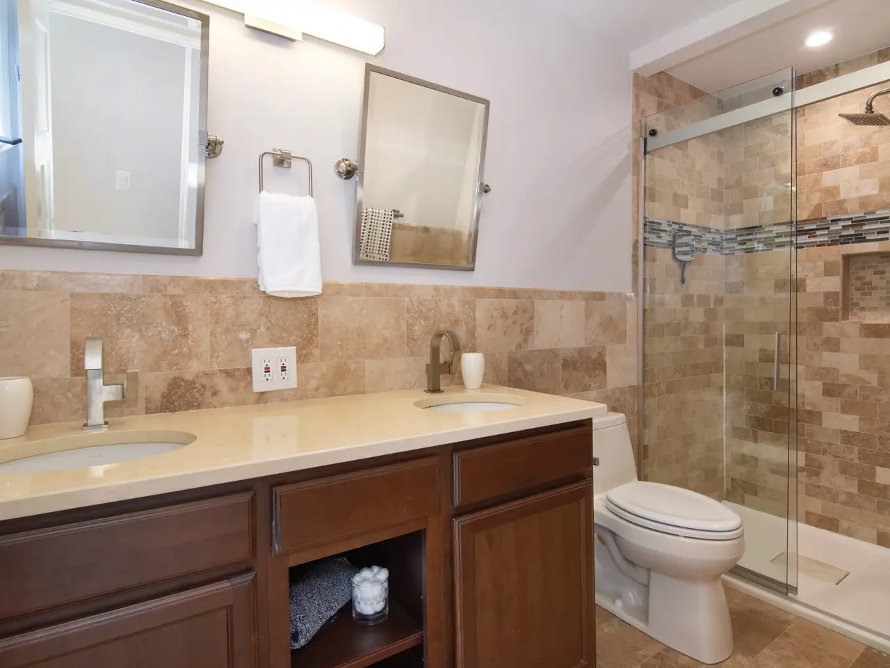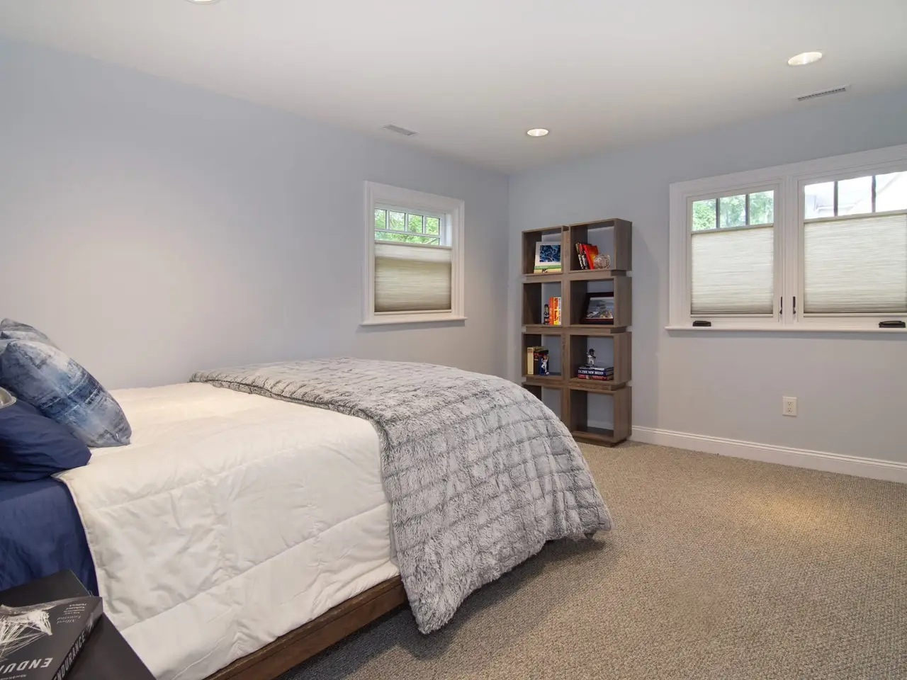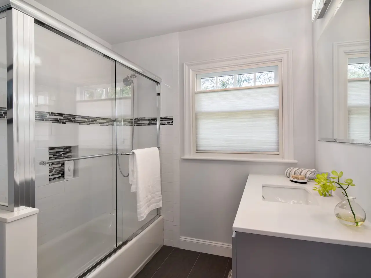 Your dream home in Hartsdale Estates is fully available. This beautifully reimagined and completely rebuilt modern Ranch offers the perfect blend of luxury, comfort, and everyday functionality. Set on nearly an acre in the sought-after Hartsdale Estates neighborhood, this home was thoughtfully designed for easy single-level living and exceptional entertaining. The bright and airy open floor plan features gleaming white oak floors, while oversized windows fill the spaces with natural light. At the heart of the home, a striking three-sided gas fireplace connects the spacious living and dining areas to a true chefs kitchen, complete with high-end Thermador and Fisher & Paykel appliances, ideal for hosting family and friends. The private bedroom wing includes three large bedrooms, two full bathrooms, and a convenient laundry area. The spacious primary suite feels like a personal retreat, featuring a spa-like bath with a soaking tub and walk-in shower, a custom walk-in closet, a cozy sitting area or home office, and even room for your own gym. The finished lower level offers a great bonus space for a family room, playroom, or media lounge, with plenty of storage and the option to add a fifth bedroom and bath. Enjoy your own backyard oasis with a heated Gunite pool, a full outdoor bath/dressing room, and a fully fenced yard that is perfect for entertaining, and making memories all year round. A spacious attached three-car garage completes this exceptional home. This move-in-ready gem has it all.