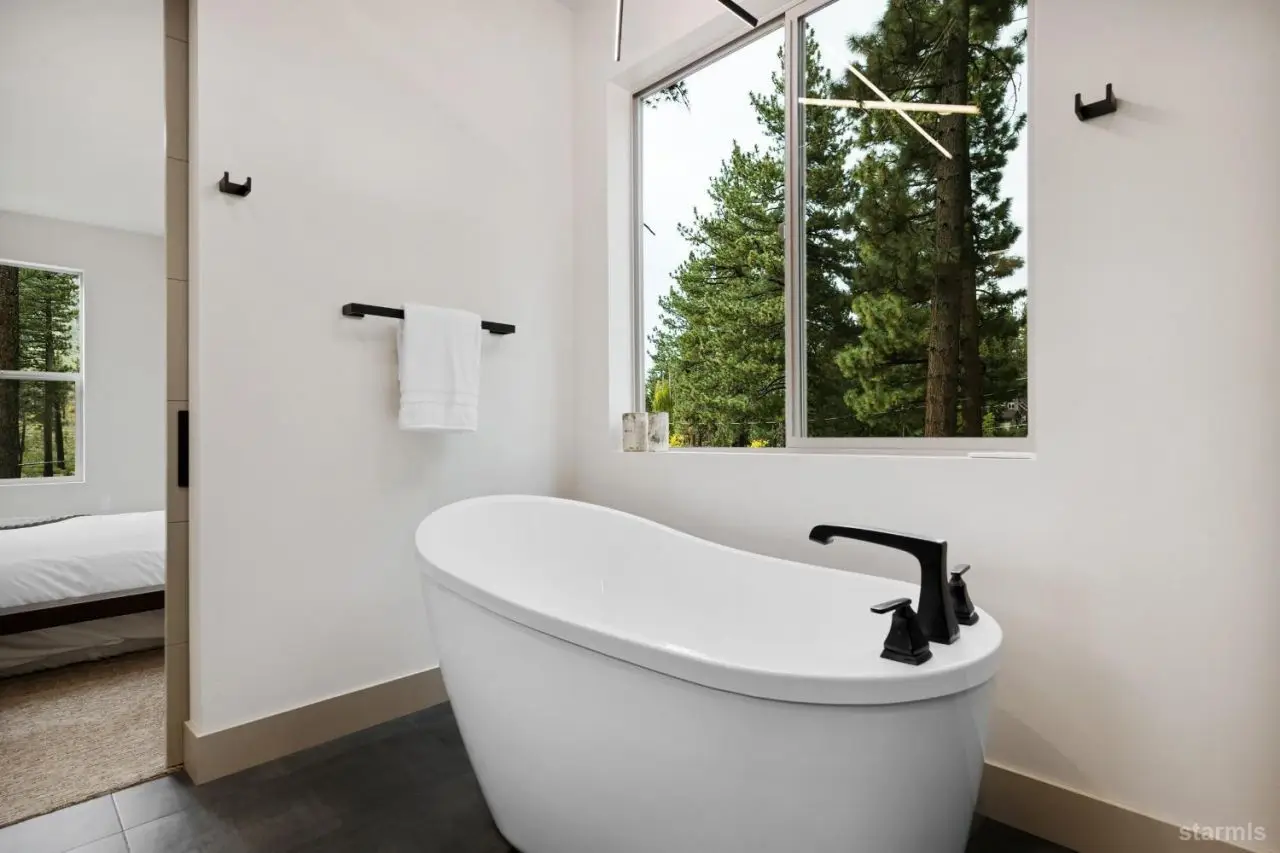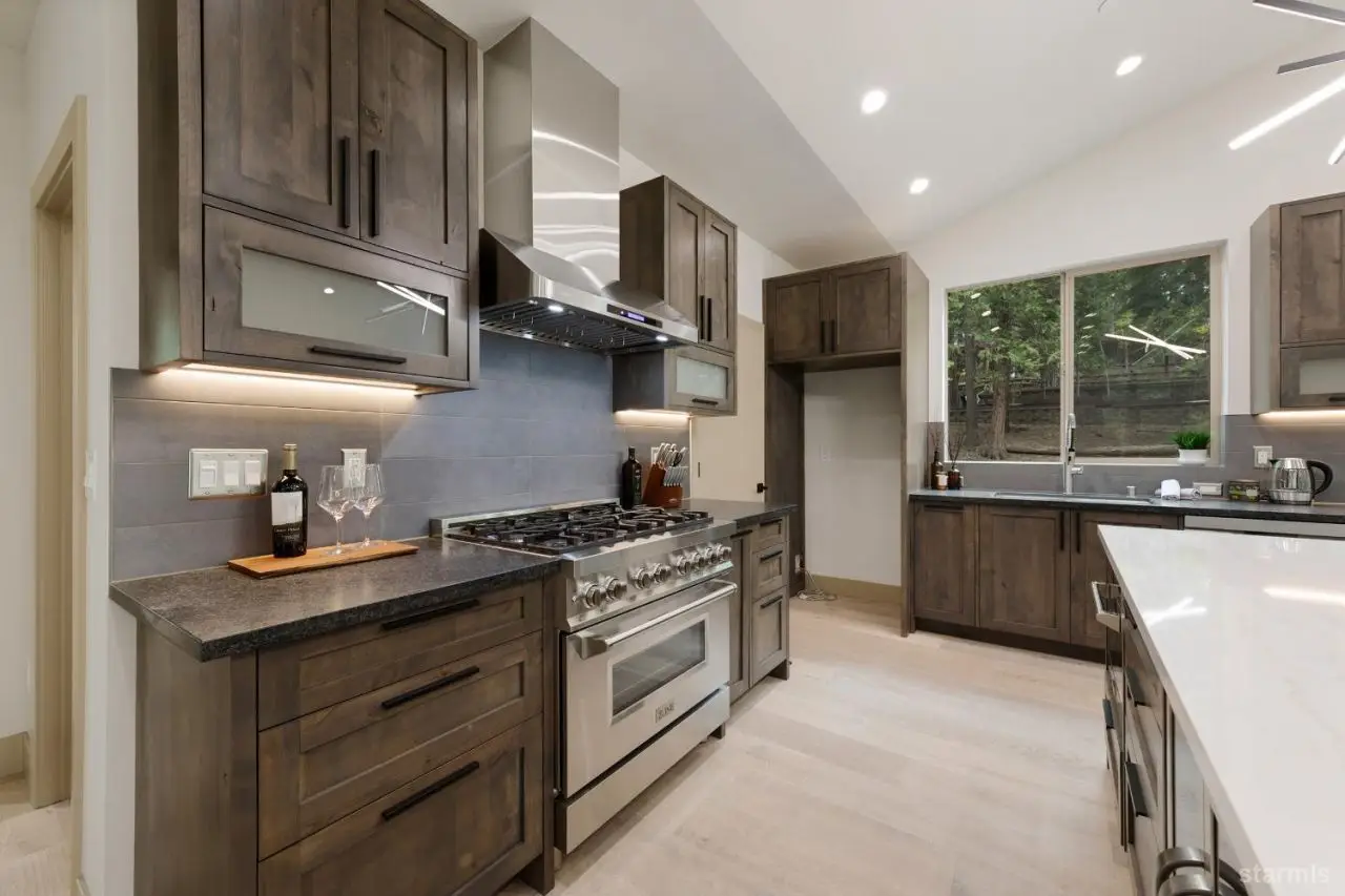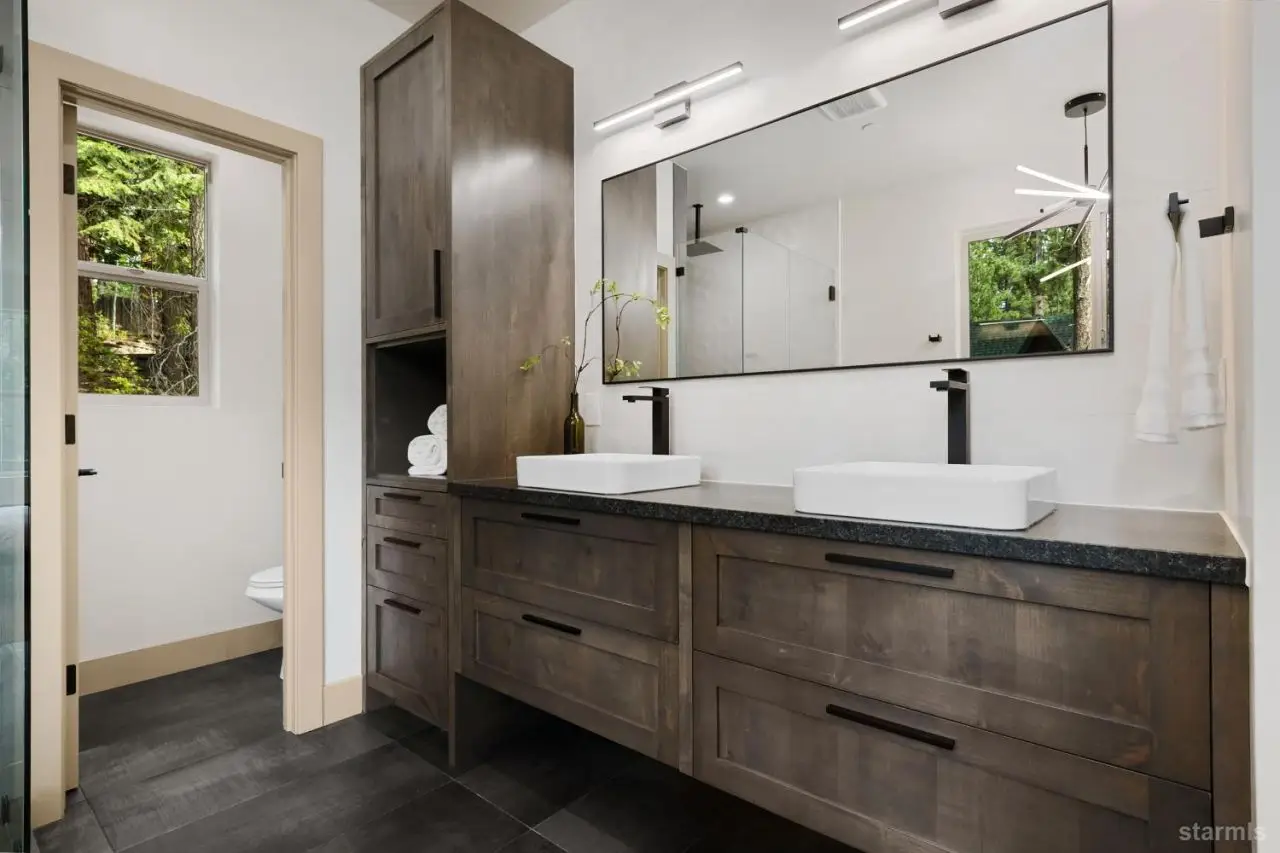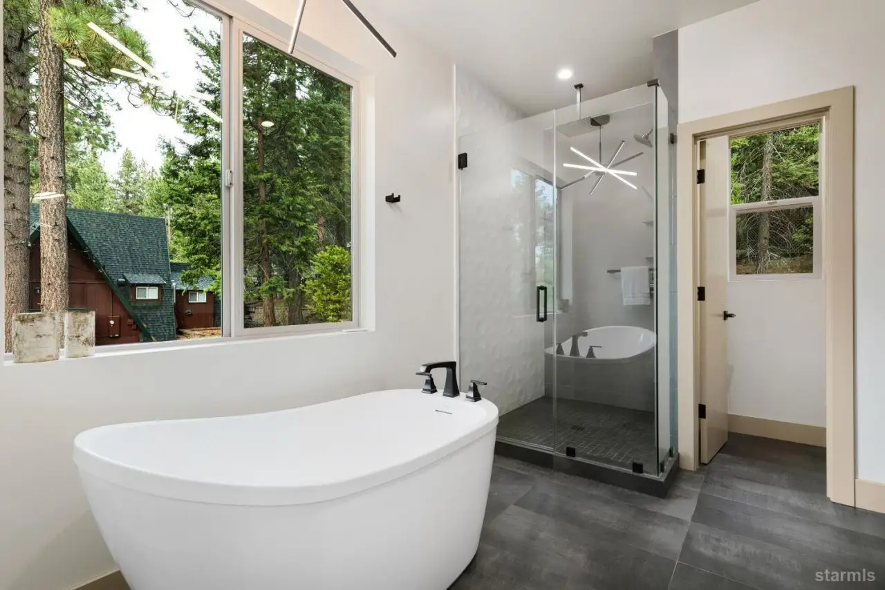 Brand new mountain-modern home on Gardner Mountain! This stunning four-bedroom, three-and-a-half-bathroom residence features multiple Conservancy owned lots on each side, offering unparalleled privacy while overlooking the National Forest with direct trail access for endless hiking and biking adventures. The upstairs living space features a spacious great room with vaulted ceilings, white oak hardwood flooring, and a beautiful gas fireplace. Step onto either the front or rear decks to soak in breathtaking mountain and forest views. The kitchen showcases custom solid knotty alder cabinets, elegant granite slab countertops, premium stainless steel appliances, and a walk-in pantry with additional cabinetry. The main-level primary bedroom offers a luxurious retreat with a walk-in closet and spa-inspired bathroom featuring custom tile work, a relaxing soaking tub, and dual sink vanity. Downstairs, three additional bedrooms await, including a junior primary suite with private en-suite bathroom. The second living area provides flexibility as a family room or entertainment space. Other features include an extra-tall garage for enhanced storage options. Located within city limits, this exceptional property currently qualifies for short-term rental permits, making it a versatile investment opportunity. The prime location places you minutes from Pope Beach, Camp Richardson, and Fallen Leaf Lake, with convenient access to world-class skiing at Heavenly Resort. This remarkable home perfectly balances luxury living with outdoor adventure.