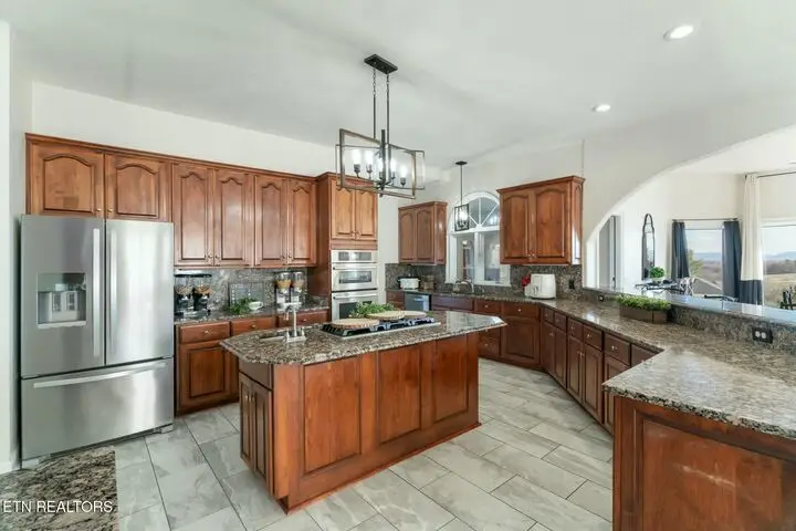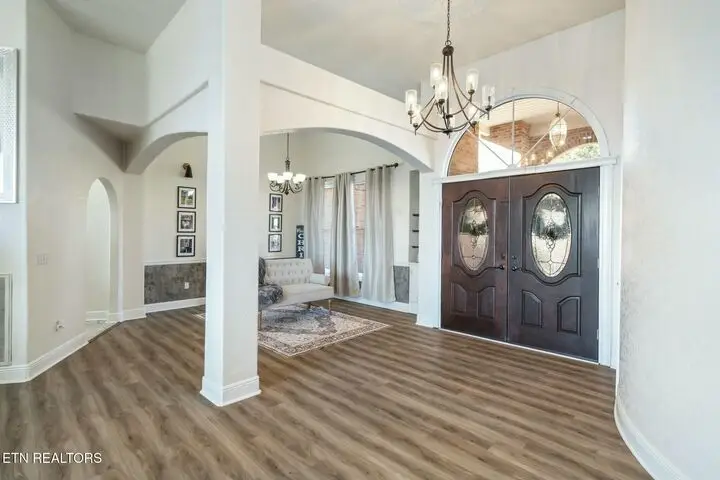 Welcome to this spacious and light-filled 2-story basement home overlooking the Smoky Mountains. A true gem nestled in the sought-after Maryville neighborhood of Royal Oaks. This all-brick home boasts 5 bedrooms, 5.5 bathrooms, zero entry and primary suite on the main level, 2 fireplaces, and completely separate living quarters downstairs. The basement suite is complete with it's own private entrance, two full baths, kitchen, and 3 spacious rooms that can be used as a living area, bedroom, and rec room/gym. Offering both comfort and modern elegance at every turn, the chef's kitchen on the main level features a gas cooktop, Jen Air microwave/oven and cherry cabinets. Enjoy a cozy fire by the stone fireplace! The primary suite on the main level has a spacious en suite with walk-in shower, jetted tub and walk-in closet. Many recent updates including new LVP installed on the main floor and basement! Maryville City schools and convenient to McGhee Tyson Airport and downtown Maryville. Enjoy the sunsets on your deck and covered patio!