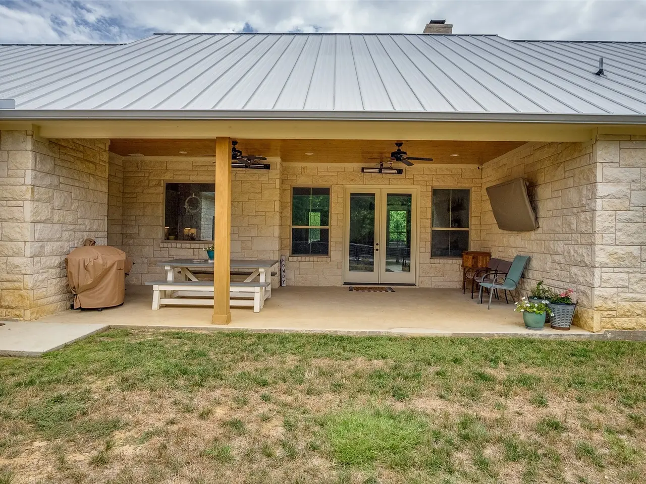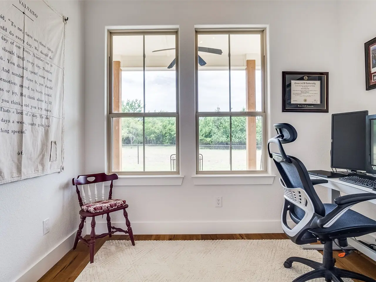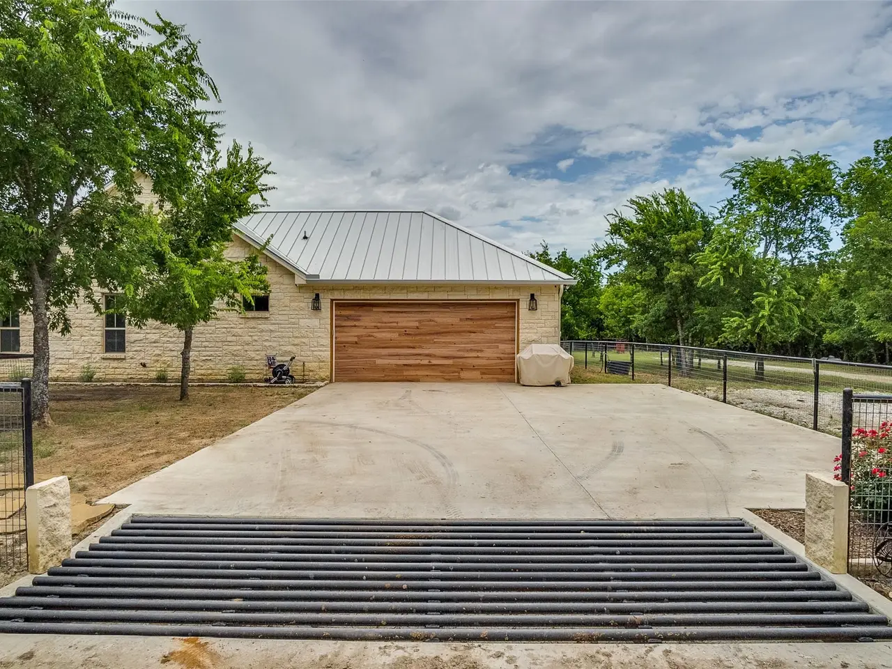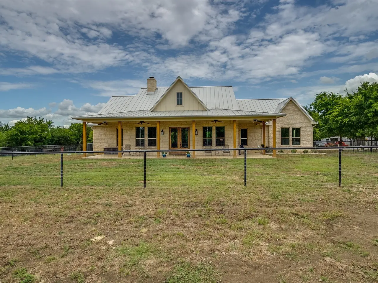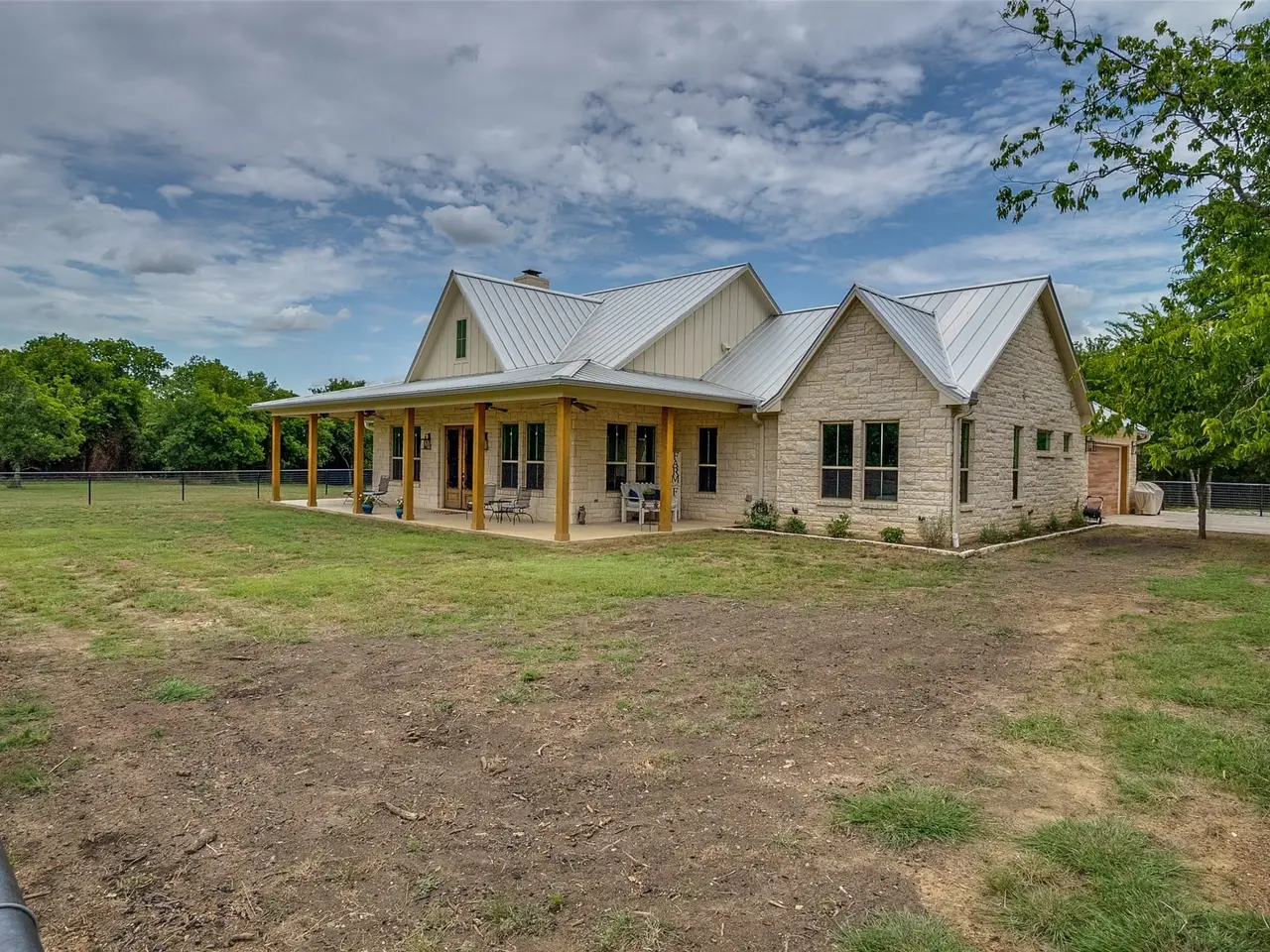 Beautifully constructed 3-bedroom, 2.5-bath custom home situated on 52+/- acres in Grandview, TX. This home features quality craftsmanship throughout, including custom woodwork, barn doors, and a floor-to-ceiling stone fireplace in the open living area. The metal roof provides long-term durability and low maintenance. The open-concept kitchen includes a large island, stainless steel appliances, ample cabinetry, and generous counter space. The spacious primary suite offers a walk-in shower with dual rain shower heads, double vanities, and a large walk-in closet. Secondary bedrooms are well-sized and suitable for guests and family. The home also features a dedicated laundry room, dedicated office flex space, and a two-car garage. Outdoor features include a covered patio, full-length front porch, custom pipe-and-no-climb fencing around the yard, and mature trees. The property is currently under an agricultural exemption and is well-suited for livestock, horses, or recreational use. Located just minutes from downtown Grandview and major highways, this property provides both privacy and accessibility. 10 minutes to Cleburne, 40 minutes to downtown Fort Worth.