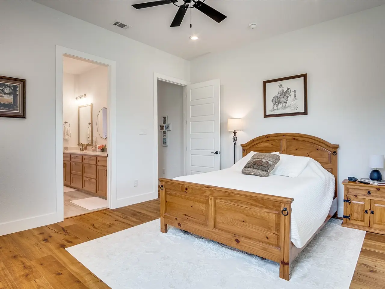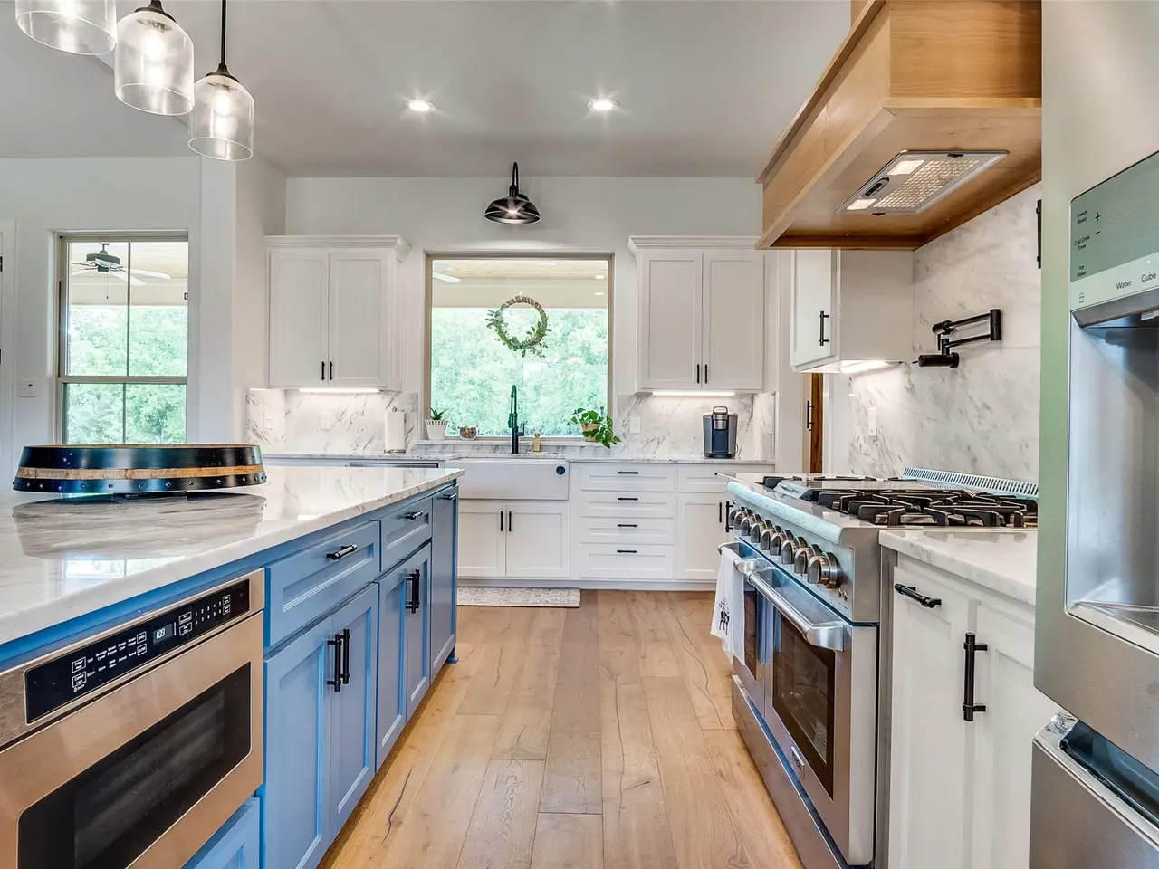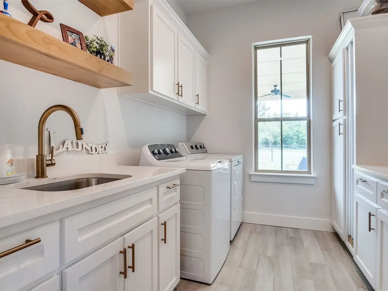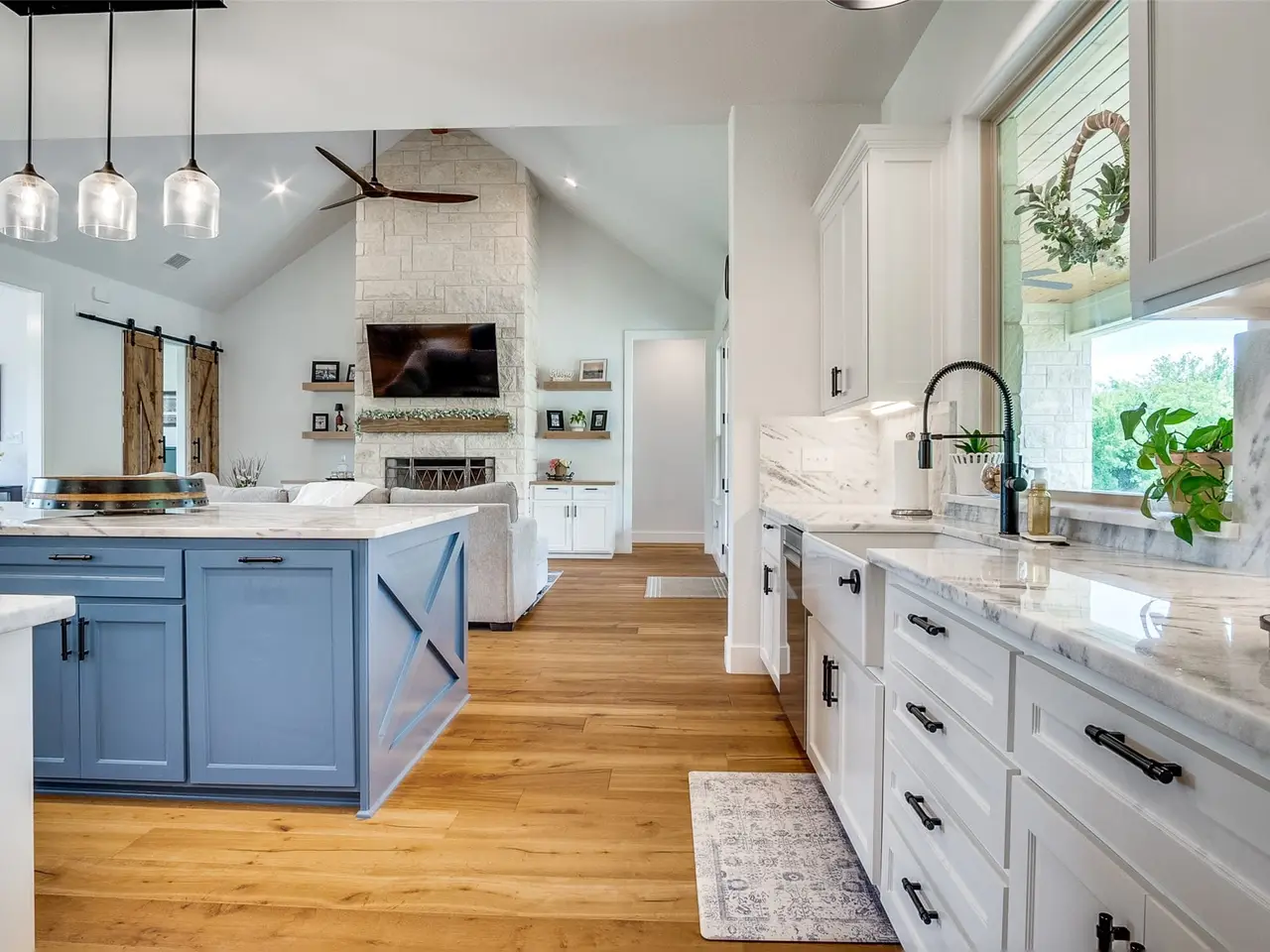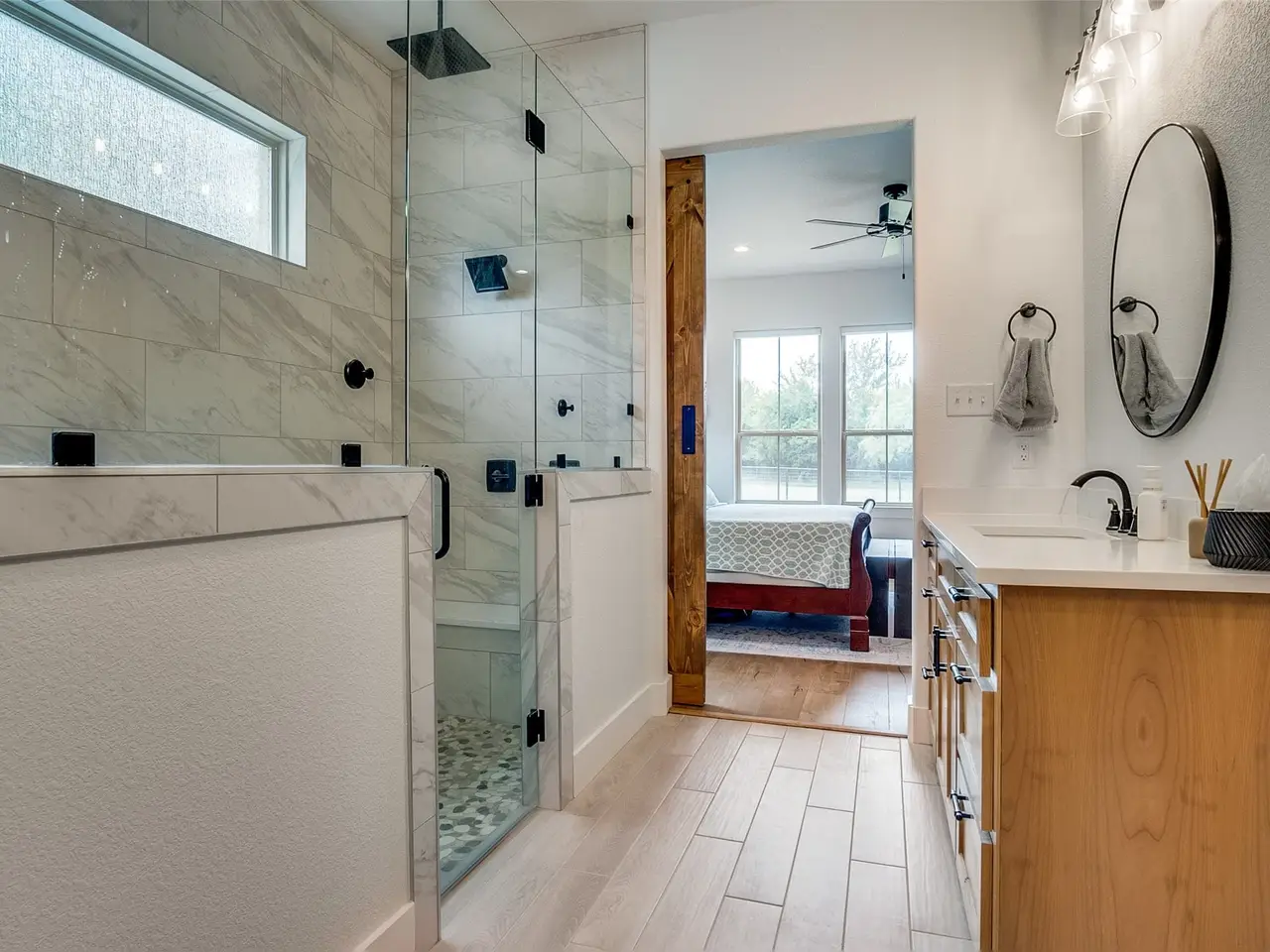 Beautifully constructed 3-bedroom, 2.5-bath custom home situated on 52+/- acres in Grandview, TX. This home features quality craftsmanship throughout, including custom woodwork, barn doors, and a floor-to-ceiling stone fireplace in the open living area. The metal roof provides long-term durability and low maintenance. The open-concept kitchen includes a large island, stainless steel appliances, ample cabinetry, and generous counter space. The spacious primary suite offers a walk-in shower with dual rain shower heads, double vanities, and a large walk-in closet. Secondary bedrooms are well-sized and suitable for guests and family. The home also features a dedicated laundry room, dedicated office flex space, and a two-car garage. Outdoor features include a covered patio, full-length front porch, custom pipe-and-no-climb fencing around the yard, and mature trees. The property is currently under an agricultural exemption and is well-suited for livestock, horses, or recreational use. Located just minutes from downtown Grandview and major highways, this property provides both privacy and accessibility. 10 minutes to Cleburne, 40 minutes to downtown Fort Worth.