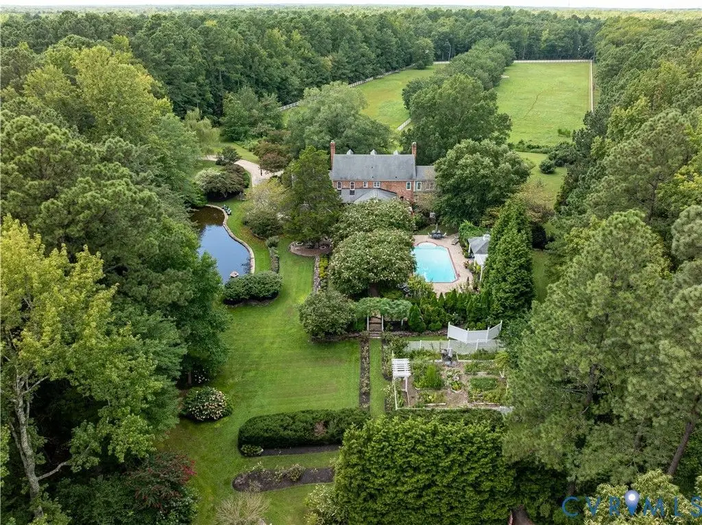 Welcome to a magnificent Mt. Hermon Road estate. A tree-lined driveway, flanked by horse pastures, leads to the over 5,800 sq ft main residence. The foyer opens to formal living and dining rooms, each with a fireplace. The expansive kitchen boasts three ovens, a gas cooktop, a butcher block island, and a butler's pantry with a fridge, dishwasher, and sink. Beyond the sitting room/library, the family room features vaulted ceilings, a stone fireplace, and abundant windows with views of the chemical-free pond. A dedicated office overlooks an English garden, and this level also includes laundry and a powder room. The upper level features the primary suite with extensive closets (including a walk-in with custom organization) and an en-suite bath with a soaking tub, tile shower, and double vanities. Three additional bedrooms share a hallway full bath. The third floor offers versatile flex space with its own full bathroom and walk-in attic access. The basement includes a fifth bedroom with an en-suite bath, a recreation room, an unfinished storage room, and access to the oversized two-car garage. The grounds feature a beautiful pool with a pergola, enclosed raised flower beds, and a hobbit door leading to a sports field with a treezeebo. Additional amenities include raised garden beds, a chicken coop, a greenhouse with stalls (currently housing goats), and a barn with an office. Separate well for the 600 head irrigation system. The entire property is fenced. An exciting feature of this property is Parcel A (14+ acres) , which comes with a Hanover County approved conceptual plan to create three separate, buildable lots. Soil tests have already been completed and passed for all proposed lots. Enjoy easy access to highways from this amazing Ashland location. This is a truly special opportunity.