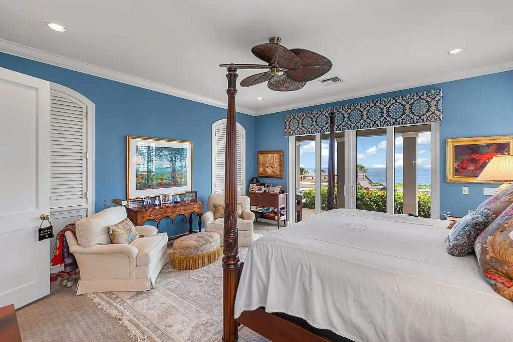 Oceanfront Elegance in coveted Bermuda Bay! Rare opportunity in guard-gated enclave just minutes from the islands best boutiques & dining. Enjoy total privacy on nearly an acre at end of quiet cul-de-sac. This Peter Moor designed estate offers direct beach access & stunning views. Built by Croom Construction, the home features a spacious great room, 4 ensuite bedrooms, custom library/office, chefs kitchen w/ adjoining family room, and lower-level media space with kitchenette & full bathideal for entertaining or overflow guests. Sizes are approx/subj to error.