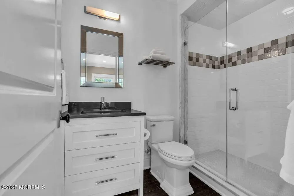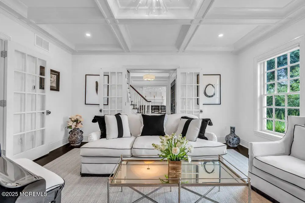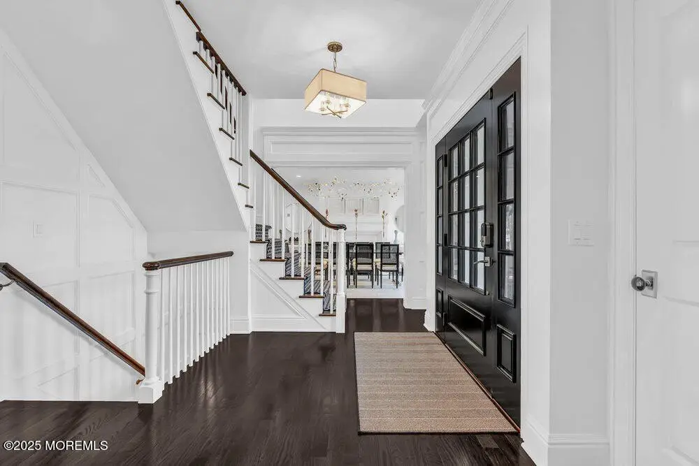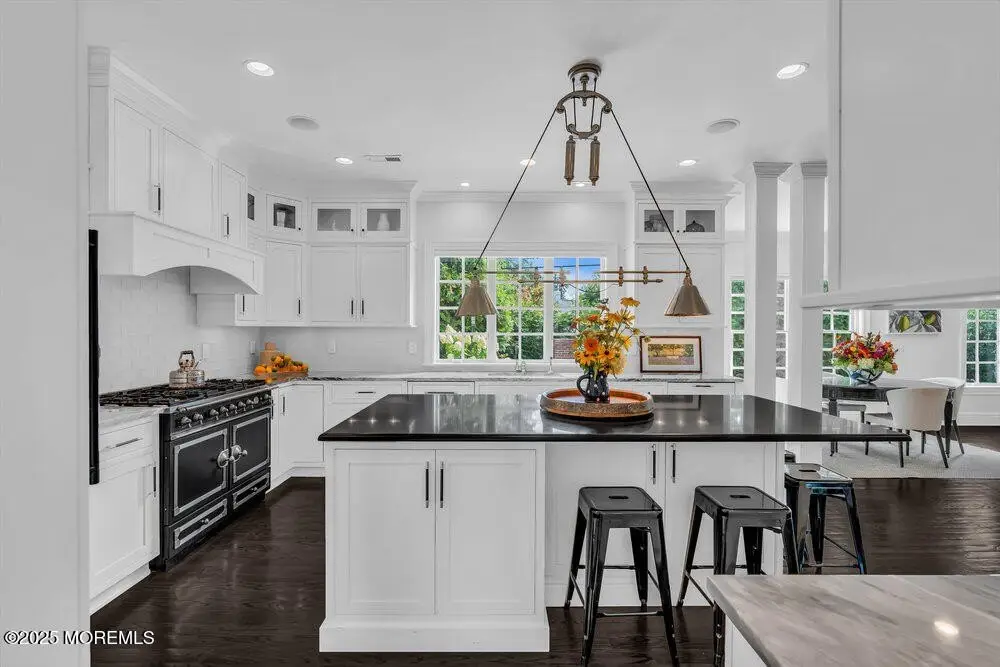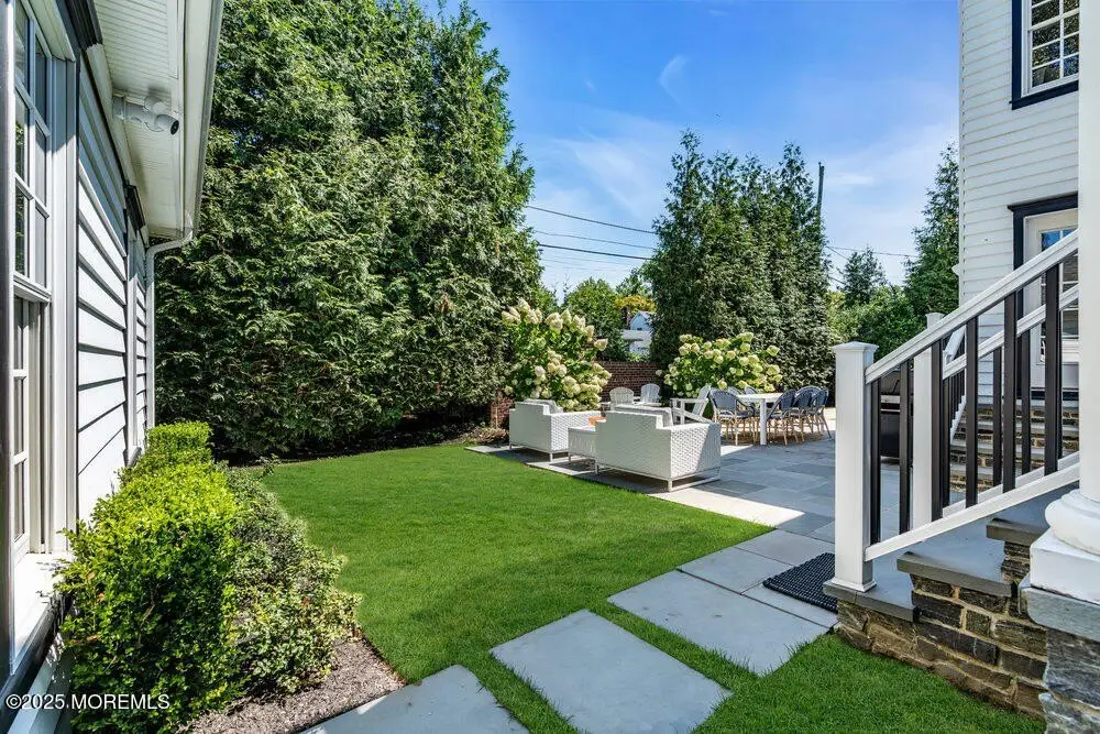 Experience ''River Peek'' a beautifully appointed, coastal-living property, with river views! Located on one of Red Bank's most desirable streets and situated at the end of a cul-de-sac, this custom-built home offers over 5400 sq feet of living space on 4 levels. There is exquisite attention to detail throughout, including superior millwork, 9 ft ceilings, and luxury finishes. The first floor captures natural lighting through its oversized windows and an open floor plan that flows seamlessly between living, dining and entertaining spaces. The light infused foyer flanks a formal living room with custom tray ceilings and an elegant Dining room that houses double Swarovski chandeliers. Both rooms provide warmth and ambience with their respective fireplaced settings. The classic kitchen includes a La Cornue (En France) range, custom refrigerator drawers, Uline freestanding ice maker, wine closet and both granite and marble counters. The Breakfast nook is purposely situated in front of a windowed wall, evoking sunshine and airiness. The kitchen transitions naturally to the kitchen lounge, with swivel club chairs that allow conversation to flow freely between the family room, Breakfast Nook and kitchen. The family room features an oversized fireplace that can be gas or wood burning, and a generous seating area to enjoy family and friends. The spacious Primary Suite is a retreat of its own, offering a fire-placed setting and French doors that lead to a private balcony. A spa-like bathroom with an oversized shower, and a generous walk-in closet completes the suite. A second ensuite bedroom, 2 additional bedrooms and a dedicated office complete the second floor. The 3rd floor bonus room offers beautiful river views from its private balcony, with 2 additional living areas. The lower level includes a family room, gym, full bath and 2 additional rooms that could be transformed into a media room, wine cellar or recreational room. There is a custom stoned walk-out access that leads to the back yard patio. Outdoor living is equally impressive, with landscaped areas and full privacy to relax and entertain. An additional bonus! Private deeded access that leads to the river is included when living on Fisher Place. Beyond the home itself, the location is unbeatable. Just minutes from downtown Red Bank, you'll have easy access to renowned restaurants, boutique shopping, theaters, and cultural events. Commuters will appreciate its close proximity to NJ Transit train service and major roadways, while beach lovers are only a short drive from the Jersey Shore. This is more than a house, its a lifestyle. A custom-built retreat with river views, tucked away on a quiet cul-de-sac, yet close to everything. Red Bank is one of New Jersey's most vibrant and sought-after towns.