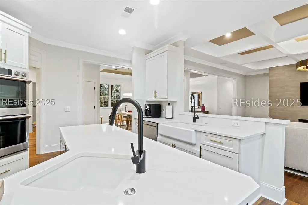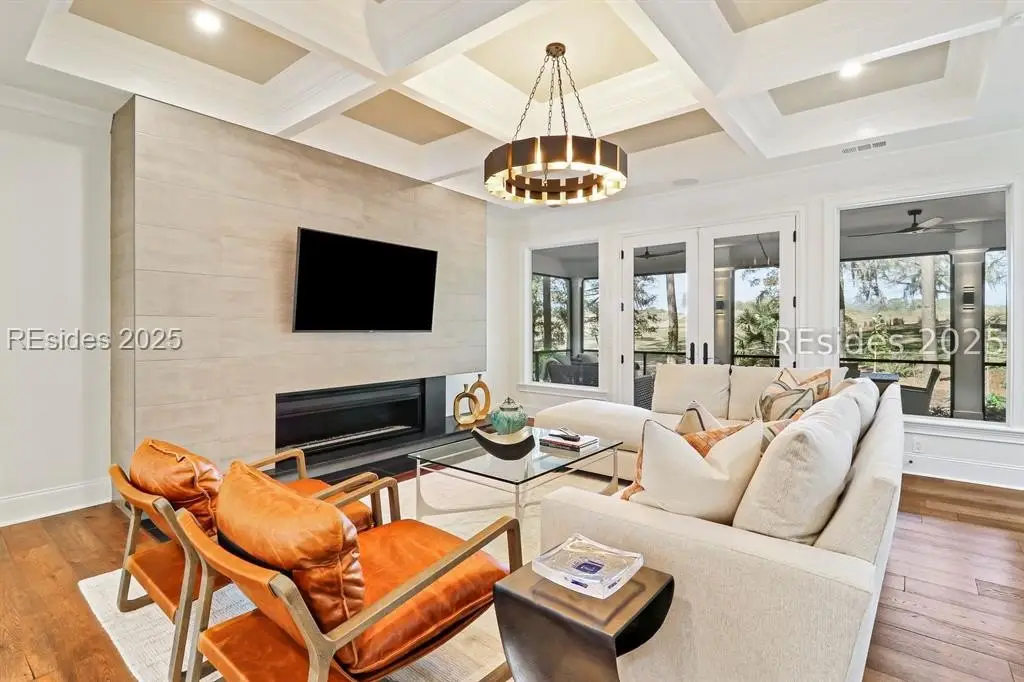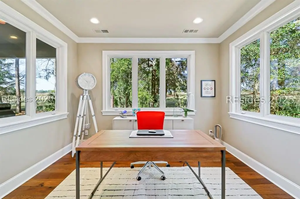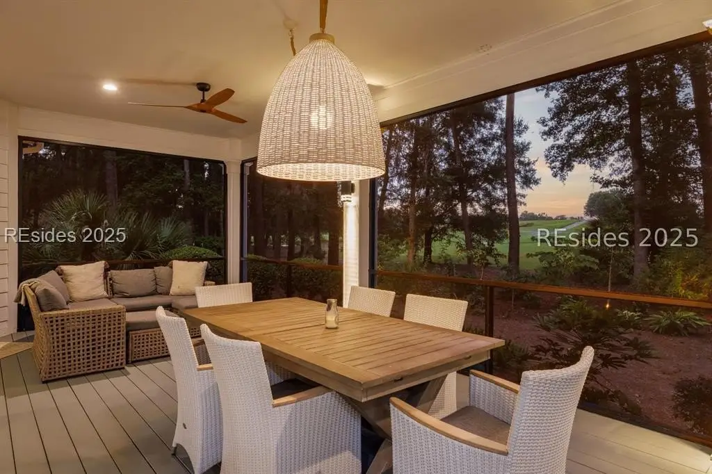 Tucked on a private lot with long views across Belfair's East Course, this beautifully remodeled residence delivers quiet refinement at scale, nearly 3,800 square feet with four bedrooms, an office, and three-and-a-half baths. Sunlight moves easily through gracious rooms designed for gathering and unwinding, the kind of spaces that make everyday living feel a touch more ceremonial. At the heart of the home, a chef's kitchen shows its pedigree: custom cabinetry, quartz countertops, a La Cornue gas range, Sub-Zero refrigeration, and dual islands built for serious cooking and easy conversation. Recent work that brings confidence as well as comfort: a new roof, refreshed electrical with LED lighting throughout, HVAC repairs, all new solid core doors and solid pocket doors, and thoughtful tech including a Control4 whole-home system and ADT security. Fresh carpet underfoot in the bedrooms, custom built-ins, and inviting fireplaces add warmth; outside, enhanced landscaping with full irrigation and night lighting frames the setting with a polished edge. The result is a Belfair home that feels both tailored and timeless, high-end finishes where they matter, smart updates where they count, and a move-in-ready profile for buyers who prefer their Lowcountry life delivered, not deferred.