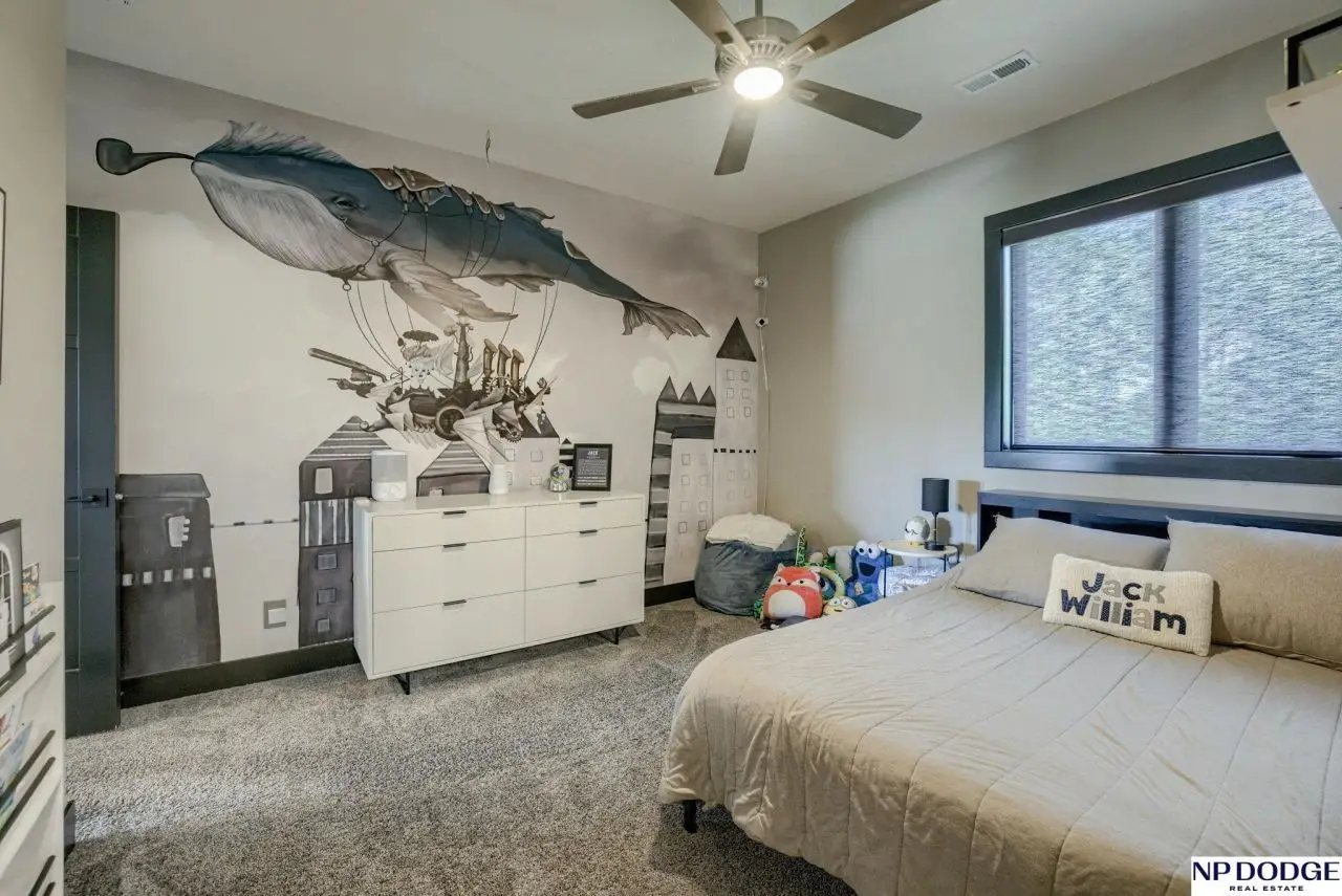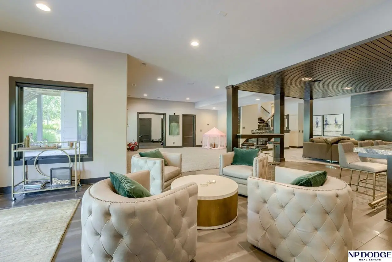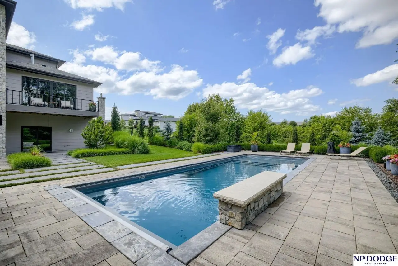 Over 6,200 sq. ft. of luxury in this 6 bed, 6 bath home with 5-car garage on an oversized private lot backing to trees. Thoughtfully designed with expansive rooms, custom built-ins, and high-end finishes. Gourmet kitchen with top-of-the-line appliances and dual-entry oversized pantry. All second-floor bedrooms are en-suite with walk-in closets. The primary suite offers a private deck overlooking the pool, spa-like bath with soaking tub, walk-in shower, and oversized custom closet. Lower level includes large living spaces, designer wall features, full bar, and temperature-controlled glass wine room. Outdoors features a resort-style pool with custom cover, freestanding lanai, and built-in BBQ station. No neighbor on north side ensures exceptional privacy. Located in the desirable Elkhorn School District.