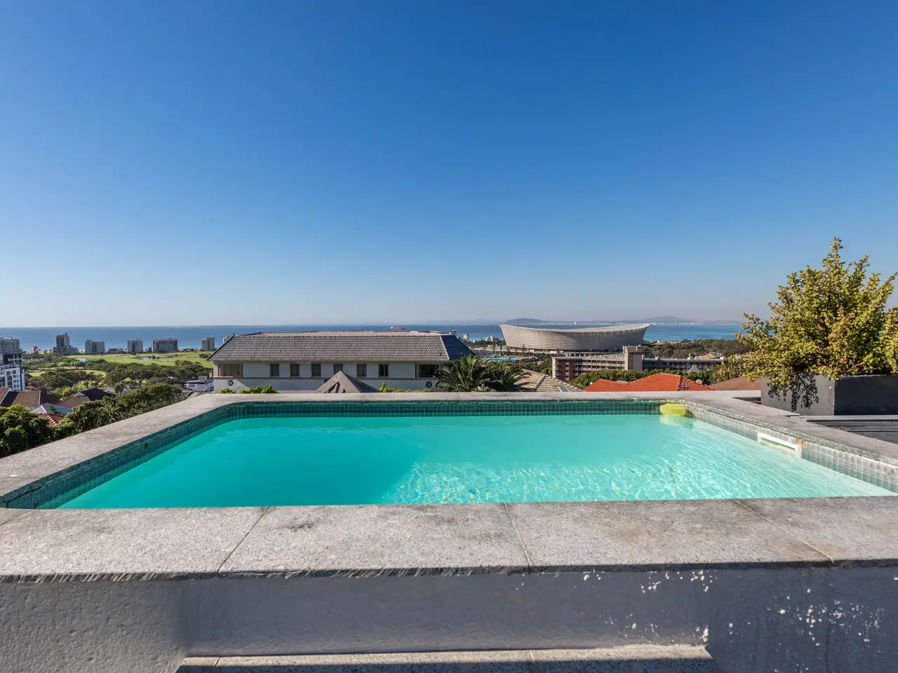 The living areas open to a sun-drenched deck via sliding doors, creating an effortless flow of light, air, and space. Street Level: Arrive through a welcoming walkway into the heart of the home. The open-plan living and dining area, designed for easy entertaining, is flanked by a sleek kitchen. Glass doors extend the space onto an outdoor braai terrace, inviting you to spend evenings dining under the stars. Top Level: An elevated splash pool and entertainment deck offer a private retreat, perfect for lazy afternoons or sunset gatherings with friends. Lower Level: Downstairs, the main bedroom suite opens onto a small courtyard, while two additional bedrooms share a stylish bathroom. A study nook completes the level, ideal for working from home or for quiet moments of reflection. Bathed in natural light and alive with fresh air, this home captures the essence of relaxed, modern living. Size: Street level and lower level living areas - 172 sqm Entertainment area on the top level - 72 sqm Location: Perfectly positioned at the foot of Signal Hill, and just moments from Green Point Stadium, the V&A Waterfront, and Cape Town’s vibrant CBD, this home offers the ultimate City lifestyle as a quiet retreat. You’ll love the outdoor decks and rooftop pool with breathtaking views of the sea, stadium, and Green Point Park—all of this within walking distance of trendy coffee shops and some of Cape Town’s best restaurants. A designer lock-up-and-go for those who value style, convenience, and the pulse of city living. A perfect Cape Town setting - convenience, and the pulse of city living. A perfect Cape Town setting.