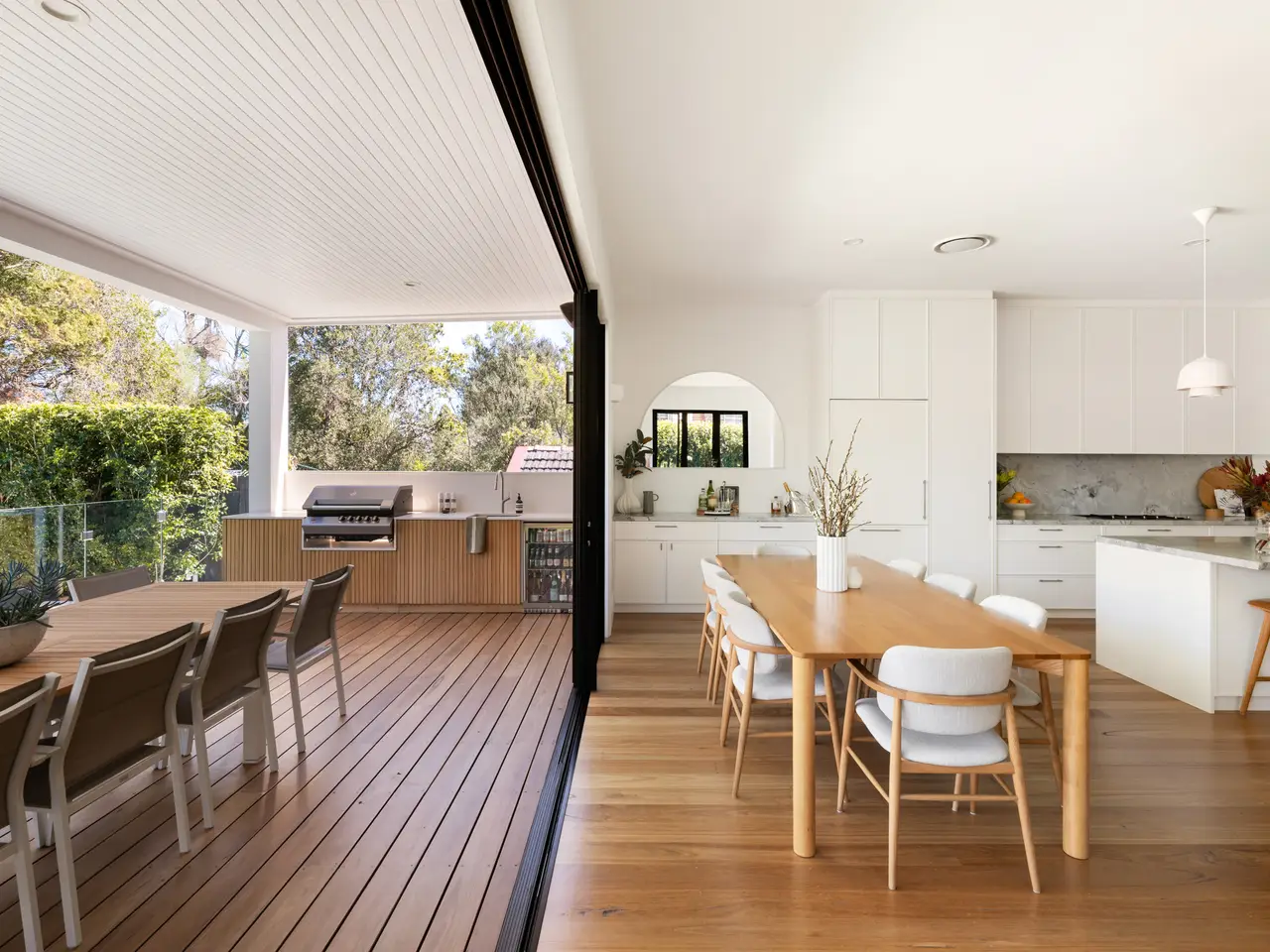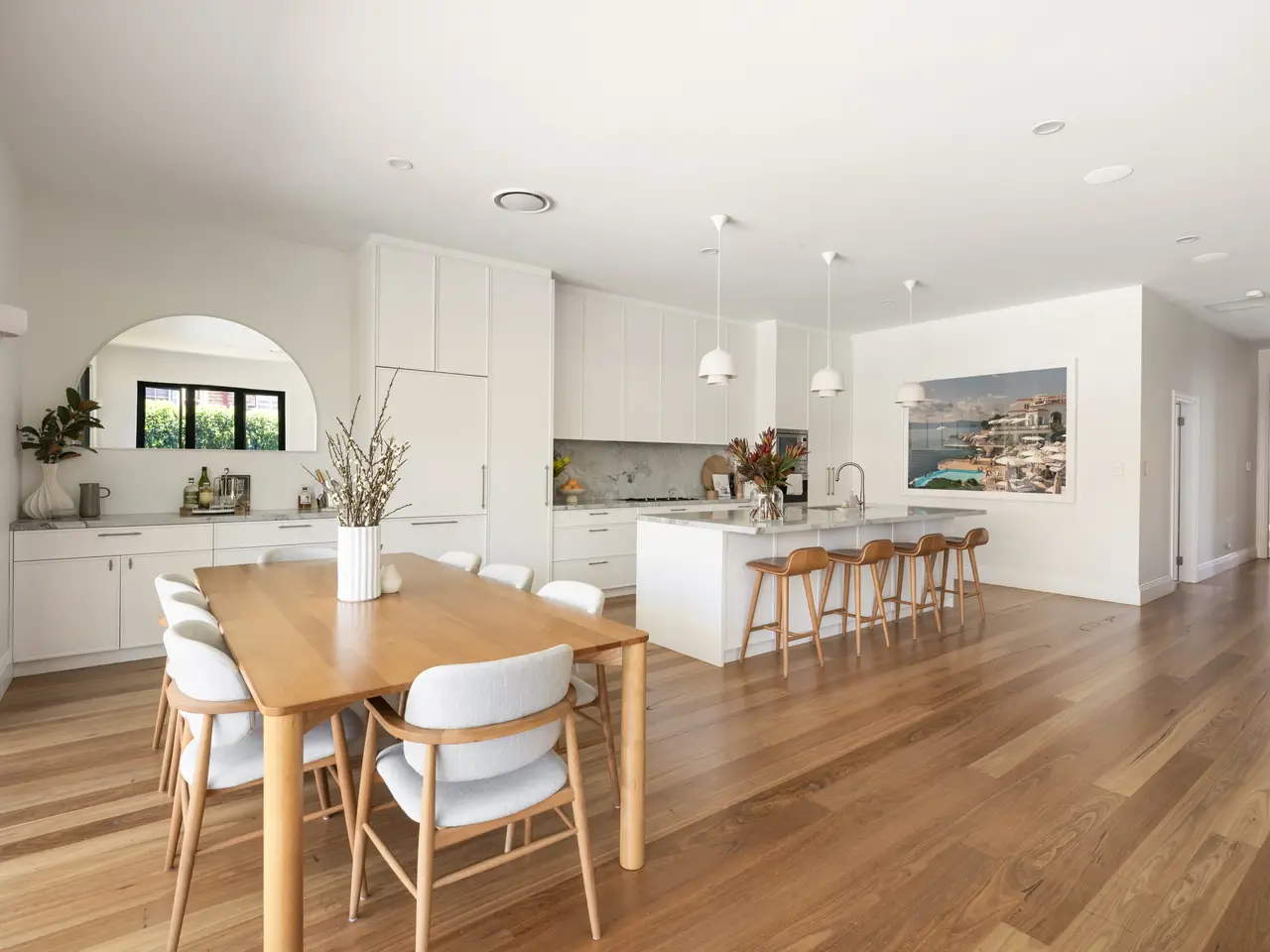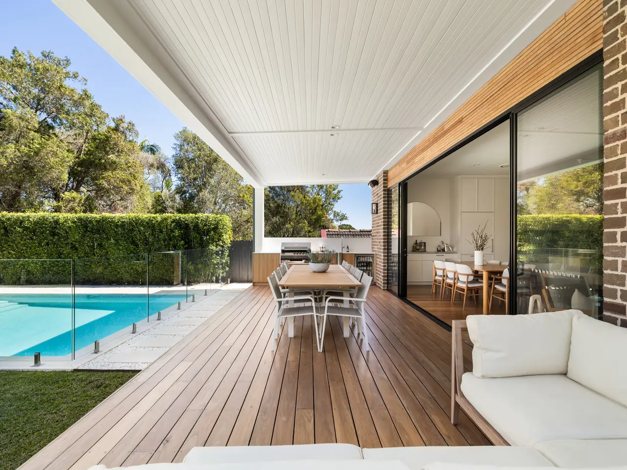 An attractive street presence and gracious character façade combine with bespoke renovations, a tasteful addition at the rear and manicured gardens featuring sun-drenched level lawns and a swimming pool to create this as new resort-style family home. Occupying a wide block of just under 700sqm on a quiet leafy street, it offers the perfect indoor/outdoor lifestyle all on the one level and in a blue ribbon neighbourhood. What remains original perfectly complements the warm and spacious contemporary design, together demonstrating a devotion to build integrity and flawless quality throughout. An absolute dream for a growing family, the home is brilliantly located just a short walk from Haberfield village, waterfront parklands, quality schools and the renowned Bay Run. - Four bedrooms all with built-ins, master has a large walk-in robe/dressing room - Two superb bathrooms, one with a standalone bath, and laundry/guest powder - Large fitted study room, expansive attic storage and dual zone ducted r/c air con - High ornate ceilings, blackbutt floorboards and Tasmanian oak timber panelling - Superb front to rear flow-through with cross breezes and generous natural light - All new open living and dining features exquisite joinery and wood-burning fireplace - Super White marble island kitchen has s/steel Smeg appliances and gas cooking - Glass sliders to an undercover deck with in-built BBQ, wine fridge and speakers - Fenced rear level lawn, heated freshwater pool with limestone-paved surrounds - Rainwater tanks and a single carport with auto garage door plus driveway parking - City buses on Boomerang Street, only 350m from Dobroyd Point Public School