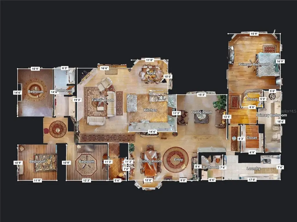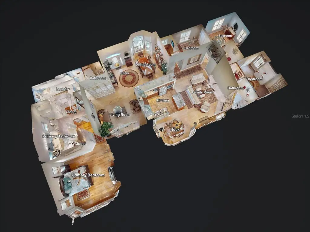 Beautiful 4 bedroom, 3 and a half bath, lakefront, pool home located in the highly desired gated community of Lake Waterford Estates in New Smyrna Beach. Lake Waterford is a 75 acre, spring fed lake perfect for boating, skiing, fishing and a number of other water sports. This spacious home sits on a 1.75 acre lot which is lush with a variety of mature trees, fruit trees and beautiful flora. Enter this home through the welcoming foyer where the eye is immediately drawn to the serene view of the tranquil lake in your own backyard. This home was designed for entertaining with a distinguished formal dining room and formal living room. The large primary bedroom, with expansive windows, letting in the beautiful views and two individual walk-in closets, will be a welcomed retreat at the end of the day. The ensuite bath comes equipped with double sinks, separate shower and a jetted garden tub. The 3 spacious guestrooms, each with ample closet space and natural light streaming through the windows, are comfortable and inviting. The hub of this amazing home is the open-concept, family room, dining nook and kitchen. This kitchen is a chef's dream with granite counter tops, stainless-steel appliances, gas stove and plenty of storage space. The kitchen opens to a dining nook and family room. As you enter the family room you are drawn to the massive natural stone fireplace. Exit the family room through custom, stained-glass french doors to your sparkling, screened-in pool and classic pavered patio deck. Sit and enjoy your morning coffee as you take in the beauty of life on the lake.Just beyond the pool is a pavered walkway that will lead you down to the boat-house and dock. This durable dock, made of WEARDECK material, is equipped with electricity, water and newer boat lift. What better way to end the day than with a relaxing boat ride or simply sitting on your own dock enjoying the beauty of nature in this breathtaking setting. Other outstanding features of this exquisite home: indoor laundry room with full bath, oversized 3-car garage, whole home diesel-powered generator, outdoor storage sheds, circular driveway, central vacuum system, custom stained-glass lighting and doors, high ceilings and plantation shutters. NEW METAL ROOF 2024. Air Conditioners, Refrigerator and Hot Water Heater new in 2024. The Lake Waterford Estates community amenities include a clubhouse, tennis courts and boat ramp. This sprawling, exquisite home offers the best of Florida living. This property is conveniently located less than 10 miles to the sandy beaches of New Smyrna and about an hour to the Orlando airport. Call today to schedule an appointment to see this truly spectacular and unique home.