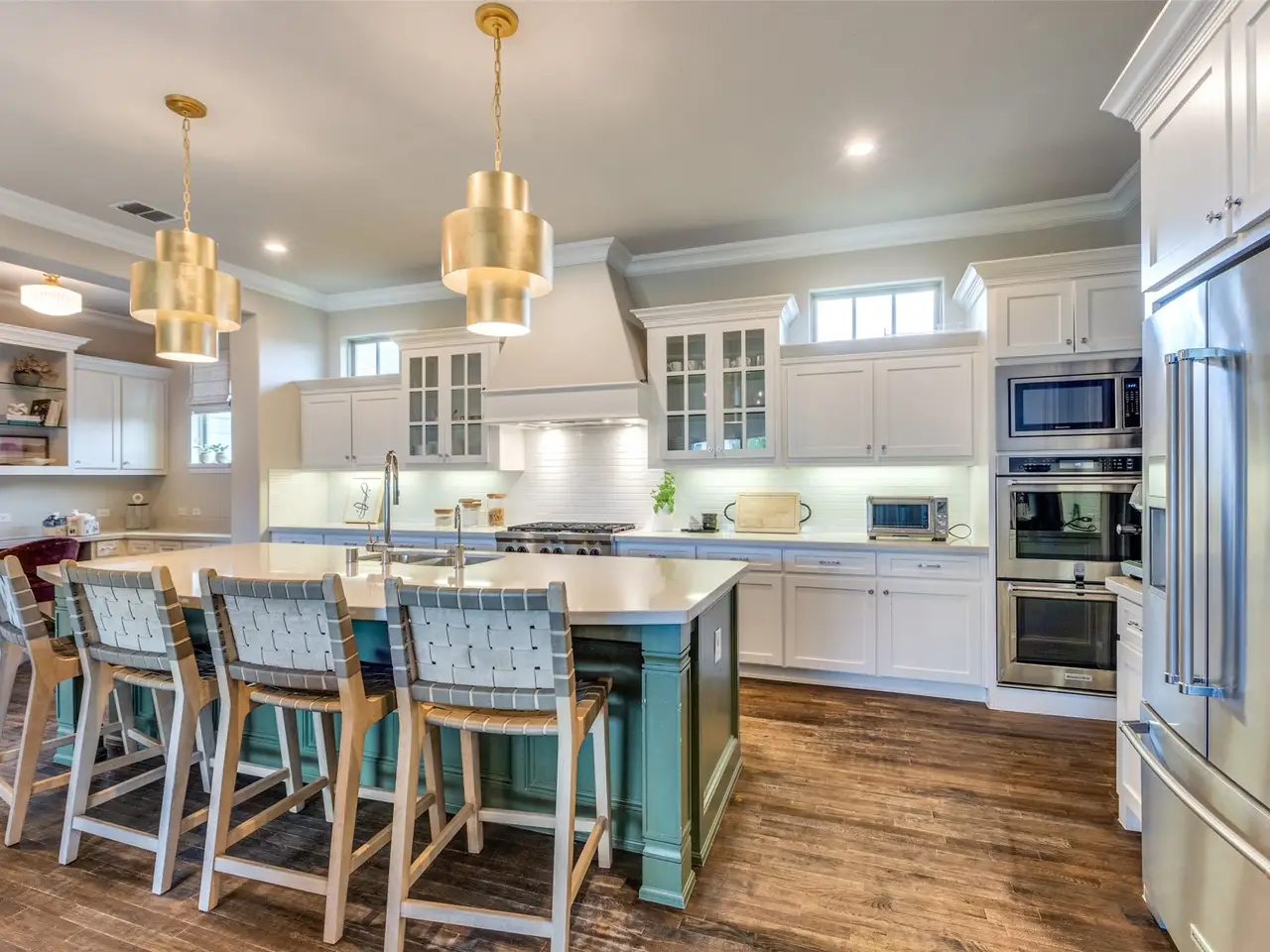 Chef's kitchen with white cabinetry