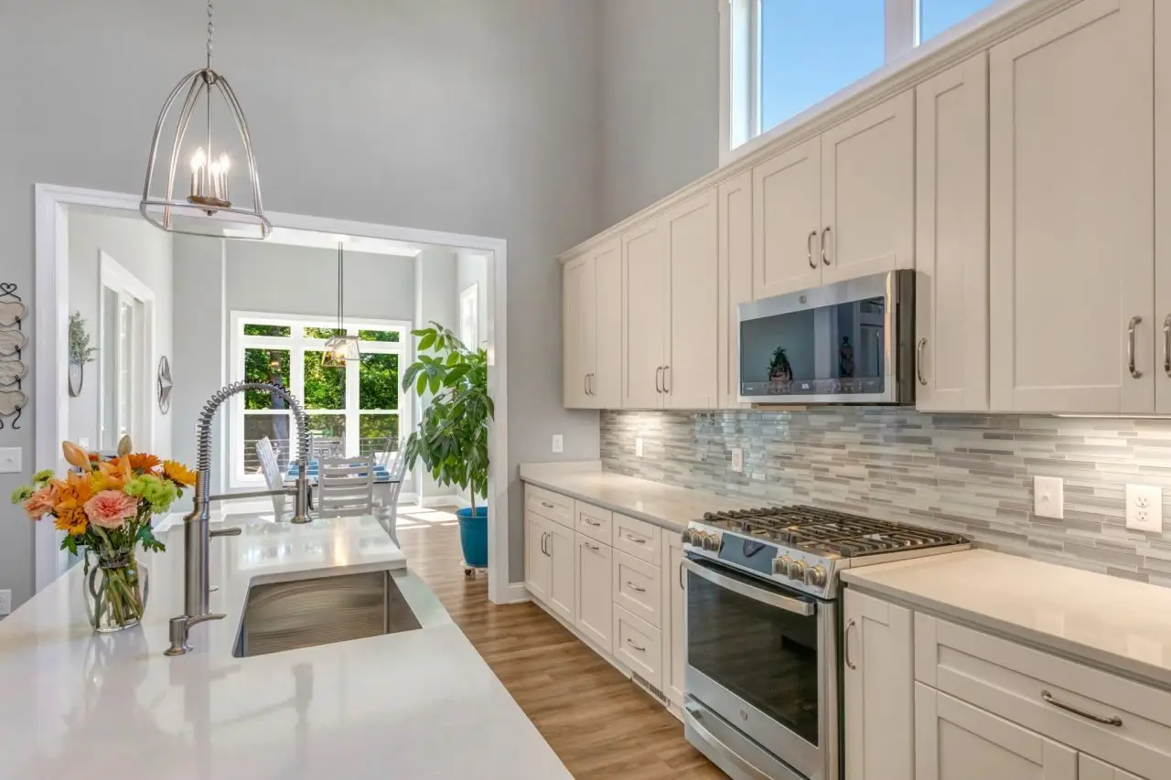 Multiple outdoor spaces - covered porch, screened porch, and large patio