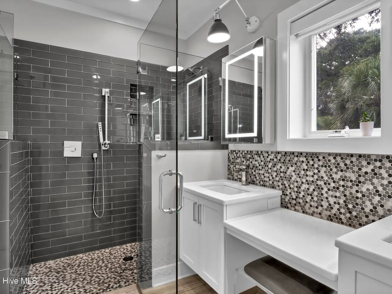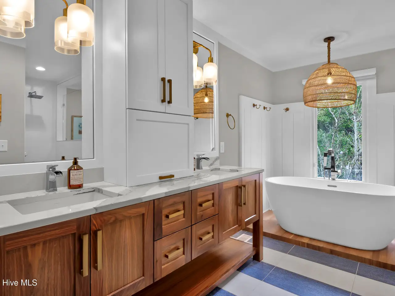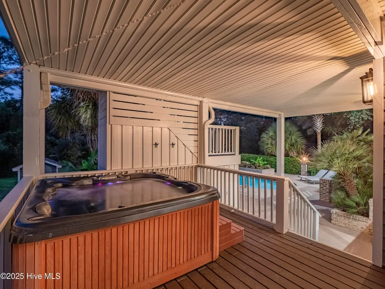 Welcome to your dream home, where coastal retreat meets modern luxury! Boating and entertaining awaits you, with this rare .75 acre property including an assigned 30' BOAT SLIP, saltwater pool, hot tub, outdoor shower, outdoor fireplace, surround sound and Control 4 AV equipment, large screened in porch, and newly renovated decks boasting a view of the magnificent intracoastal waterway! With a complete interior renovation, this stunning home boasts Bosch appliances in first and second floor kitchens, with custom walnut refrigerator doors in primary kitchen that match custom walnut open shelving and walnut cooktop hood. Also featured are Quartz countertops throughout, including Cambria Quartz, and a walnut custom double sink vanity in the primary ensuite. Natural white oak hardwoods, with water base sealer carry throughout the entire home and new tile was added in all baths and laundry. Gas fireplaces will warm the space in both living rooms, with a double sided interior-exterior gas fireplace on the first floor, that can be enjoyed on the patio, overlooking the beautiful saltwater pool. Additional impressive features include an intracoastal waterway view, hot tub, cable rail stairwell throughout, Hunter Douglas shades, lighting brands such as Serena and Lily, Hudson Valley, and Rejuvenation, Restoration Hardware pulls and hooks, and a touch of Serena and Lily wallpaper to complete the modern coastal aesthetic.Nothing was left untouched as the exterior was painted, all decks were stained, wood porch ceilings were refinished, and all exterior lighting and fans were replaced.Additional Updates Include:New main house HVAC unit in 2023.New whole house water filtration system in 2024.After an evening of entertaining your family and friends in your own coastal paradise, enjoy a sunset cruise on the intracoastal waterway, with a boat ride to Masonboro Island or nearby restaurant. This home truly has it all!