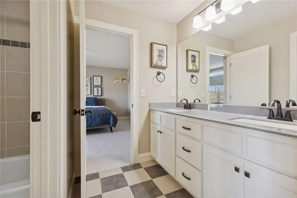 Beautifully finished 2-story home set on a quiet cul-de-sac with a private, fenced backyard overlooking serene nature views. Rich architectural details, wood floors, and sun-filled spaces create a warm, move-in-ready setting. The main level features a grand 2-story Great Room with a full wall of windows and a 2-sided fireplace shared with the inviting Sunroom. The large Kitchen impresses with an enameled island with breakfast bar, walk-in pantry, double wall ovens, and furniture-style cabinetry for the cooktop. Formal and Informal Dining spaces offer flexibility for everyday living and gatherings. A spacious Mud Room provides built-in seating, open locker-style storage, and its own walk-in closet, plus a convenient half Bath. Upstairs, the Primary Suite feels luxurious with a fireplace-accented seating area and an inset ceiling for added definition. The private spa-like Bath includes dual vanities, soaking tub, separate shower, and private water closet plus a large closet with an organized closet system. Bedroom 2 has a full en-suite Bath with tub, while Bedrooms 3 and 4 share a Jack & Jill Bath. The large upper-level Laundry features upper cabinets and open shelving under the counter for easy organization. The walkout lower level adds exceptional versatility - ideal for multi-generational living or effortless entertaining. Highlights include a 5th Bedroom, 3/4 Bath, Wet Bar with fridge & seating, media-ready Family Room, Recreation Room, Flex/Storage Room, and built-in cabinetry. Step out to the expansive Patio or enjoy the newer Deck above. Neighborhood amenities just steps away include an outdoor pool, clubhouse, walking trails, and an outdoor sports court. A welcoming covered front porch completes this exceptional home!