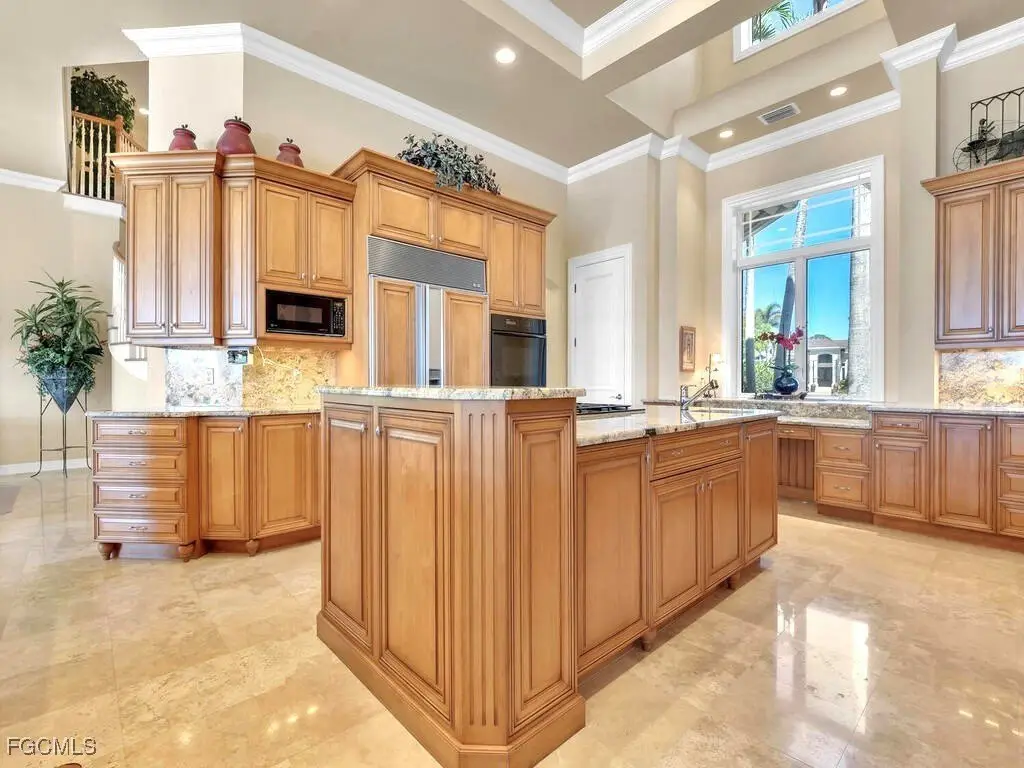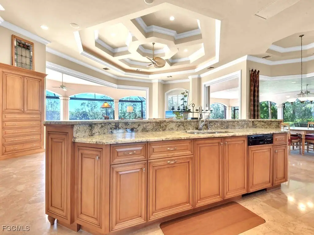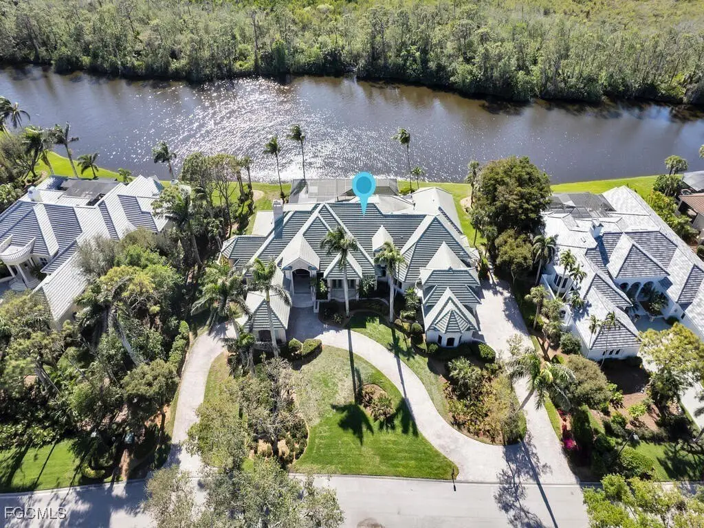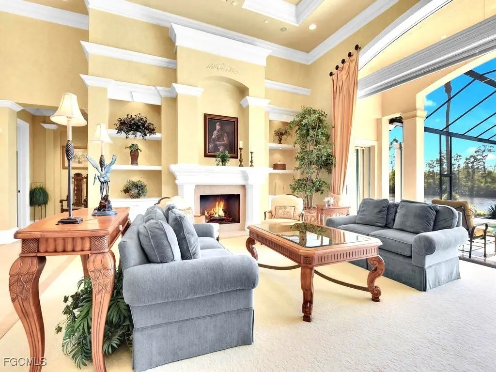 From the moment you pull into the circular driveway and park beneath the elegant Porte Cochere, you'll immediately sense that this home is truly special. The grand mahogany front doors open to reveal a stunning living room, complete with built-in bookcases, a fireplace, and soaring coffered ceilings. This inviting space flows seamlessly onto the outdoor patio, pool, and screened Lanai, where sliding glass doors pocket away to offer an unobstructed, wide-angle view over the pool, extending all the way to the tranquil lake beyond. The master bedroom is a serene retreat, featuring a cozy fireplace and a sitting area with a large picture window that frames breathtaking views of the lake and surrounding woods to the west. A sliding glass door leads out to the Lanai, blending indoor and outdoor living. The master bathroom is an oasis, with dual sinks, a jetted whirlpool tub, and an expansive shower with multiple showerheads and transom lighting overhead. A lighted makeup vanity and a coffee bar area further enhance the space, providing the ultimate in convenience and luxury. The master closet, accessible from both the bathroom and the living room, offers ample storage and organization. The formal dining room is a delightful space, with large windows and elegant transoms above, creating a bright and inviting atmosphere for dining. The heart of the home is the Great Room and Kitchen area, designed for easy flow between all parts of the house. Large pocketing sliding glass doors open wide, offering access to the sundeck, sitting area, and outdoor kitchen/eating space in two directions-perfect for entertaining and enjoying the outdoors. A guest suite hidden away on the ground floor "The Hacienda Room" offers seamless access to all parts of the home while affording perfect peace. The office features large pocket doors, allowing for privacy when needed while maintaining an open connection to the main living spaces. A beautifully crafted circular staircase leads to the upper level, where guests can enjoy privacy and tranquility in thoughtfully designed spaces. Two guest rooms upstairs provide a peaceful retreat, ensuring comfort and relaxation. The "West Indies Room" at the back of the home features French doors that open onto a balcony overlooking the pool and lake, offering stunning views and a serene atmosphere. The "Whimsy Room" above the garage is both charming and comfortable, with all the amenities one could need to feel right at home. Additional features of this exceptional property include a three-car garage and a workshop space, accessible only from the garage or the driveway. This truly is a one-of-a-kind home, offering comfort, rest, and relaxation for everyone.