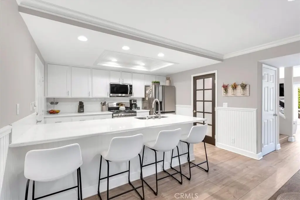 Live Minutes from the Beach in this Turn-Key Laguna Niguel Home Welcome to your dream home in the highly sought-after Camden Court community of Laguna Niguel! This beautifully upgraded attached single-family home offers the perfect blend of style, comfort, and coastal living. Step inside to find soaring vaulted ceilings, sleek luxury vinyl flooring, recessed lighting, and a charming brick fireplace--ideal for cozy evenings. The open-concept layout flows effortlessly from the spacious living room to the dining area and upgraded kitchen, complete with quartz countertops, stainless steel appliances, a huge walk-in pantry, breakfast bar, and direct access to the 2-car garage featuring new epoxy flooring and built-in storage. Upstairs, you'll find three generously sized bedrooms, each with custom window blinds and upgraded baseboards. The primary suite boasts high ceilings, a ceiling fan, and a stylish en-suite bath with dual sinks, quartz counters, illuminated vanity mirrors, and a walk-in shower. The entire home has been freshly painted with new interior paint throughout, giving it a crisp, modern feel. Set on a desirable corner lot, the backyard is designed for entertaining, with paver hardscaping, a patio cover, and a low-maintenance drip system--all offering privacy and cool evening breezes. This home has been meticulously maintained with major updates including: whole-house re-pipe, new windows, heater, fan and allergy filter, newer Lennox A/C system. Enjoy low HOA fees, no Mello Roos, and access to fantastic community amenities such as a pool and spa, parks, tennis and basketball courts, plus close proximity to top-rated schools, shopping, restaurants, scenic trails, and freeways. Don't miss this opportunity to own a move-in-ready home just minutes from the coast!