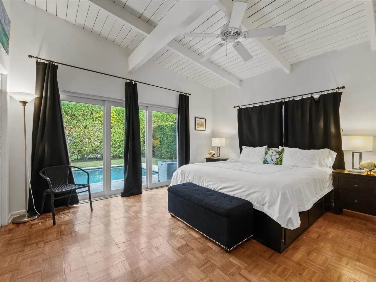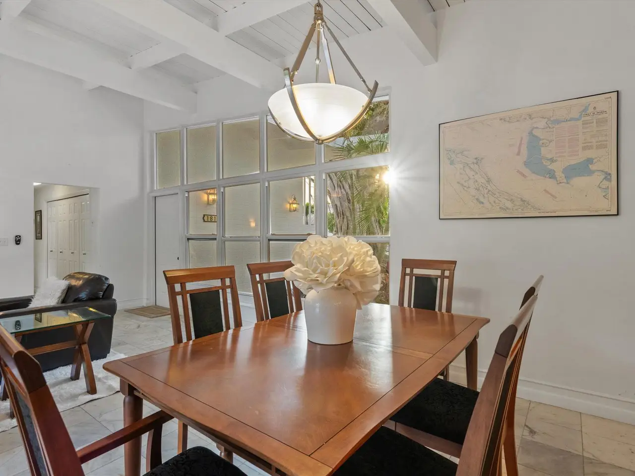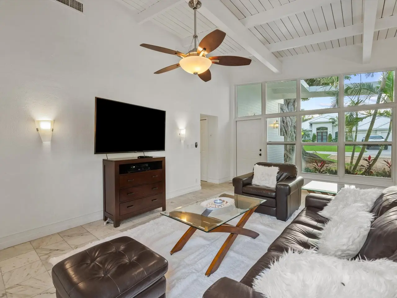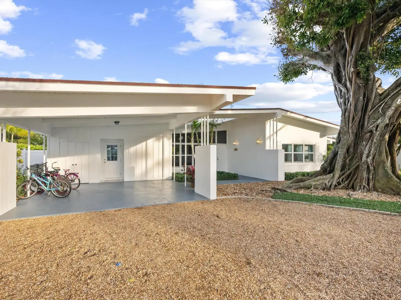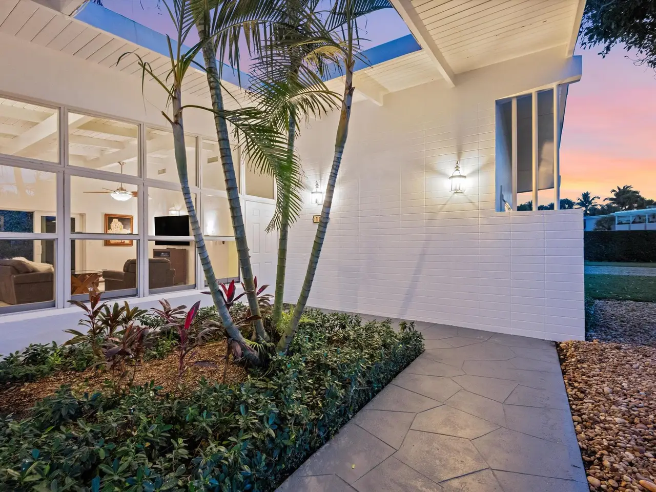 Just steps from the private, secured beaches of Jupiter Inlet Colony, this one-level Mid-Century coastal retreat sits on a prime interior lot, offering both charm and opportunity. Fully furnished and turnkey, this CBS-constructed home features 3 bedrooms, 2 baths, and an open floor plan where the kitchen seamlessly connects to the dining and living areas. With soaring volume ceilings, exposed beams, and all-impact windows and doors, the home is designed for both style and security. Outside, a lushly landscaped backyard oasis awaits, complete with a private pool enveloped by greenery. Offered at land value and sold as-is. This property presents a rare chance to build new or renovated in one of the most coveted beachside communities.