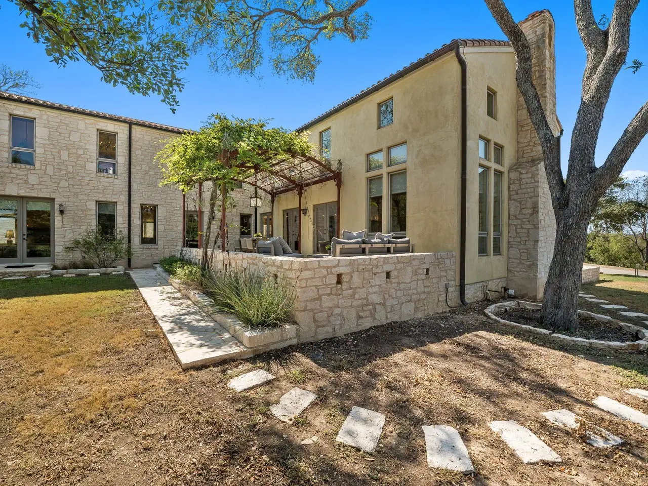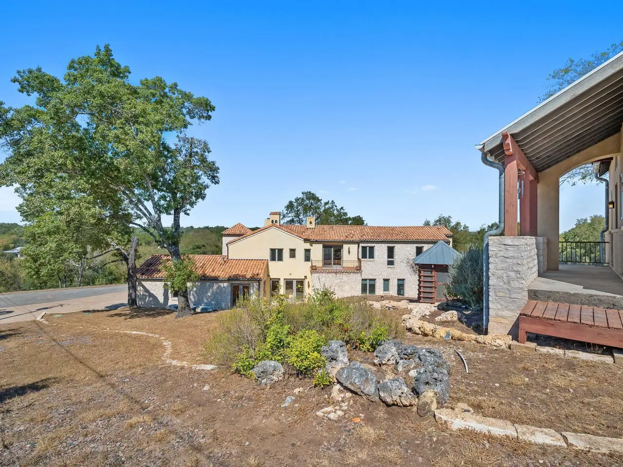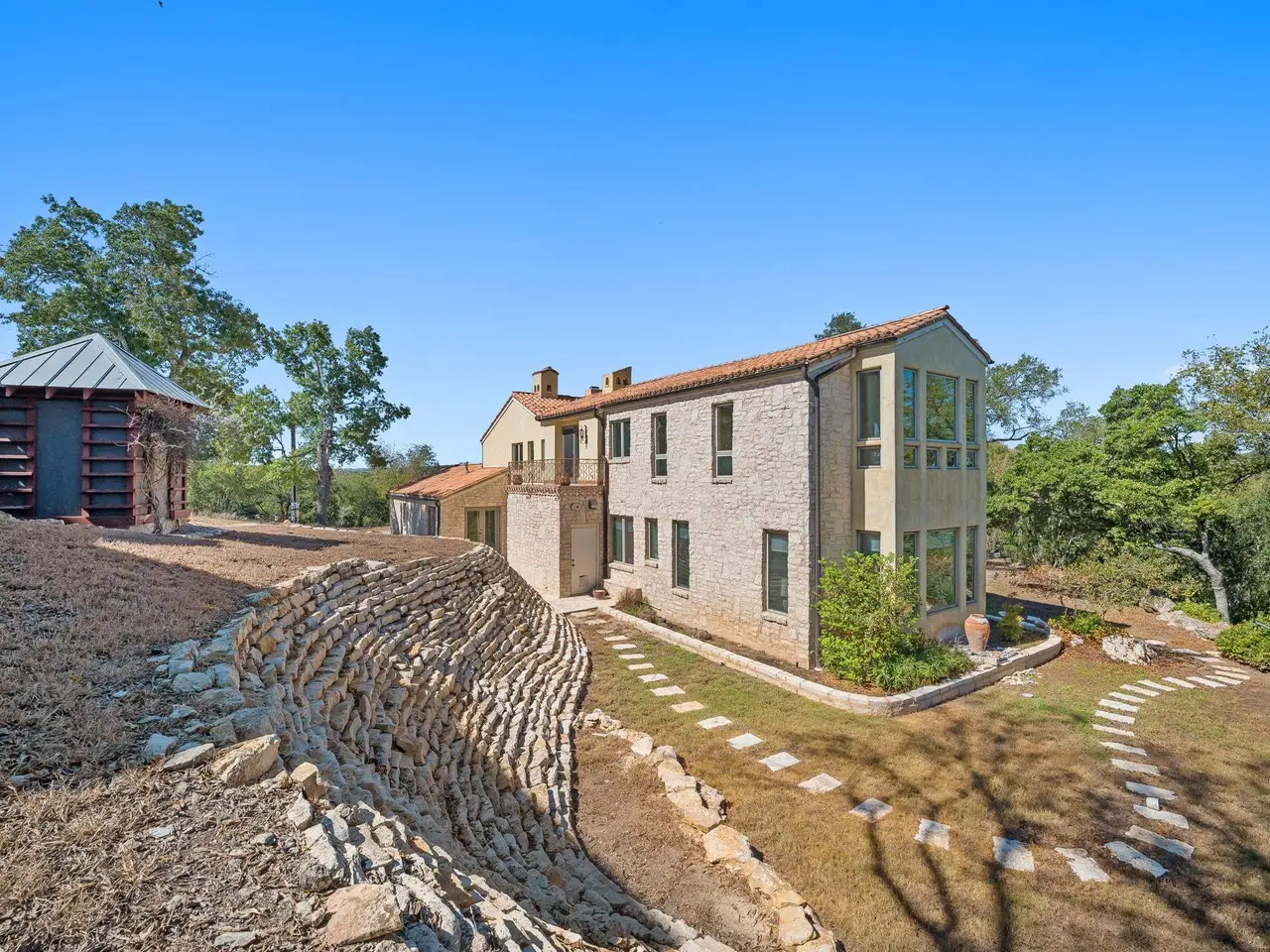 Set on ~ 6 serene acres just moments from Texas' renowned wine country, 14721 Bear Creek Pass evokes the timeless charm of a Tuscan villa with the added luxury of a fully equipped guest house. The property's stone and stucco exterior, arched doorways, and elegant outdoor space create an atmosphere of understated sophistication surrounded by sweeping Hill Country views. Every detail, from the warm tones to the wrought-iron accents, has been thoughtfully designed to capture the ambiance of the Italian countryside while offering the comfort of modern luxury. Inside, the home impresses with exquisite craftsmanship and a sense of grandeur balanced by inviting livability. Soaring ceilings, stunning wood floors, a fireplace, and rich finishes complement expansive windows that fill the interiors with natural light in the living area. The beautiful kitchen boasts stainless steel appliances, a center island, and a desirable built-in pizza oven. The first-level primary suite offers a private haven with French doors leading to the outdoors and a spa-like bathroom featuring a soaking tub, walk-in shower, and elegant dual vanities. A spiral staircase within the suite ascends to a breathtaking library lined with wood shelving, where sunlight pours in through tall windows, creating an idyllic retreat for quiet reading or creative inspiration. The property's guest house features a full bedroom, bathroom, and kitchen with an excellent viewpoint of the property from the hillside. A barn on the property offers the perfect workshop or storage space. Combining European elegance with Hill Country tranquility, this remarkable estate is a rare opportunity to experience both refinement and retreat in one unforgettable setting. Tax and assessed values are estimates for illustration purposes only. All figures should be independently verified.