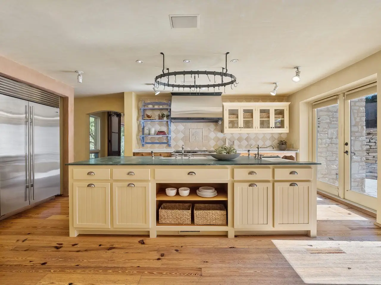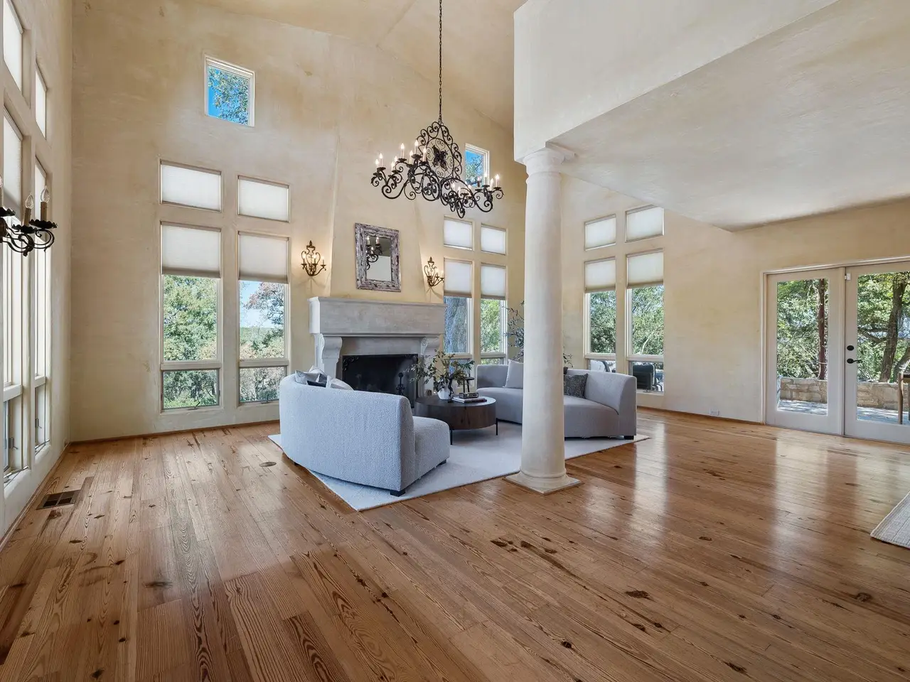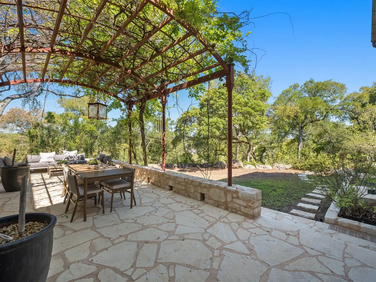Set on ~ 6 serene acres just moments from Texas' renowned wine country, 14721 Bear Creek Pass evokes the timeless charm of a Tuscan villa with the added luxury of a fully equipped guest house. The property's stone and stucco exterior, arched doorways, and elegant outdoor space create an atmosphere of understated sophistication surrounded by sweeping Hill Country views. Every detail, from the warm tones to the wrought-iron accents, has been thoughtfully designed to capture the ambiance of the Italian countryside while offering the comfort of modern luxury. Inside, the home impresses with exquisite craftsmanship and a sense of grandeur balanced by inviting livability. Soaring ceilings, stunning wood floors, a fireplace, and rich finishes complement expansive windows that fill the interiors with natural light in the living area. The beautiful kitchen boasts stainless steel appliances, a center island, and a desirable built-in pizza oven. The first-level primary suite offers a private haven with French doors leading to the outdoors and a spa-like bathroom featuring a soaking tub, walk-in shower, and elegant dual vanities. A spiral staircase within the suite ascends to a breathtaking library lined with wood shelving, where sunlight pours in through tall windows, creating an idyllic retreat for quiet reading or creative inspiration. The property's guest house features a full bedroom, bathroom, and kitchen with an excellent viewpoint of the property from the hillside. A barn on the property offers the perfect workshop or storage space. Combining European elegance with Hill Country tranquility, this remarkable estate is a rare opportunity to experience both refinement and retreat in one unforgettable setting. Tax and assessed values are estimates for illustration purposes only. All figures should be independently verified.