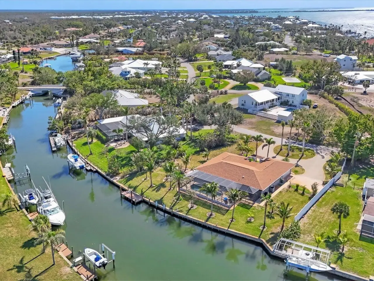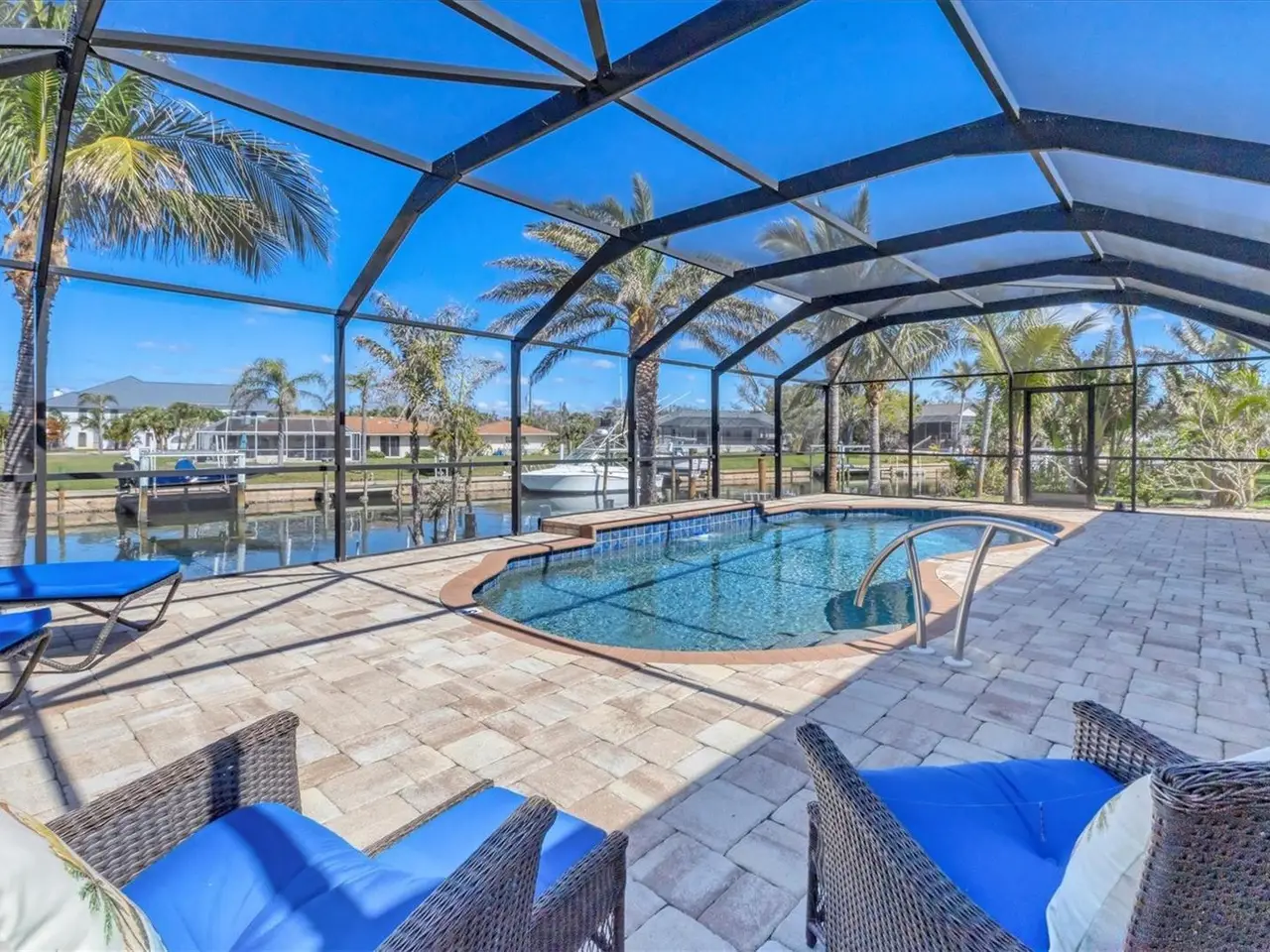 Welcome to this incredible boater's paradise! This stunning property boasts over 172 feet of deep-water canal frontage, offering direct access with no bridges to the Intracoastal Waterway and the Gulf of Mexico. Located in the coveted Vanderbilt-developed neighborhood of Cape Haze, this home sits on a spacious .53-acre lot, just 4 lots in from the ICW. Perfectly designed for boat enthusiasts, the property features a concrete seawall and a large Trex boat dock, and out pilings, making it ideal for vessels of all sizes. Cape Haze is renowned for its proximity to world-class fishing and endless boating destinations, including the historic Boca Grande, Sanibel Island, Cabbage Key, Punta Gorda's Fisherman's Village, and Manasota Key. Wildlife lovers will delight in the secluded waterfront location, where birds and fish abound, creating a peaceful, natural setting. The exterior of the home features a circular driveway, a side-entry garage, and mature landscaping. A charming courtyard patio at the front entry offers a welcoming touch. Upon entering, you are greeted by an expansive open floor plan with three sets of sliding doors that offer stunning views of the pool, paver lanai, and panoramic wide canal views.The outdoor patio area is perfect for relaxing or entertaining, featuring a large heated, saltwater pool (built in 2018) and plenty of room for lounging in a chaise. The spacious yard is ideal for pets or outdoor activities. Inside, the updated eat-in kitchen opens into a large dining and living area, with views of the water from the sink. The kitchen boasts stone countertops, stainless steel appliances, and a walk-in pantry. The home offers two large living rooms, both with picturesque views of the surrounding paradise. The primary suite is a serene retreat, featuring a walk-in closet and dual vanities in the bath. The home is thoughtfully designed with tile flooring throughout, a recently updated bath, mature landscaping, a newer irrigation pump, a newer pool pump, and a new roof (2023). Recent updates also include replaced plumbing waste pipes, stainless steel appliances, and newer A/C systems. The property is perfect for full or part time residents and also for those looking income producing property. The home has excellent rental history and existing leases in place. Conveniently located near essential shopping, numerous waterfront restaurants, three full-service marinas, and miles of serene sandy beaches on Boca Grande and Palm Island. You'll also find private and public golf courses nearby, making this an ideal location for both relaxation and adventure. This property is truly a one-of-a-kind opportunity for those seeking an unparalleled boater's lifestyle in a pristine, tropical setting.