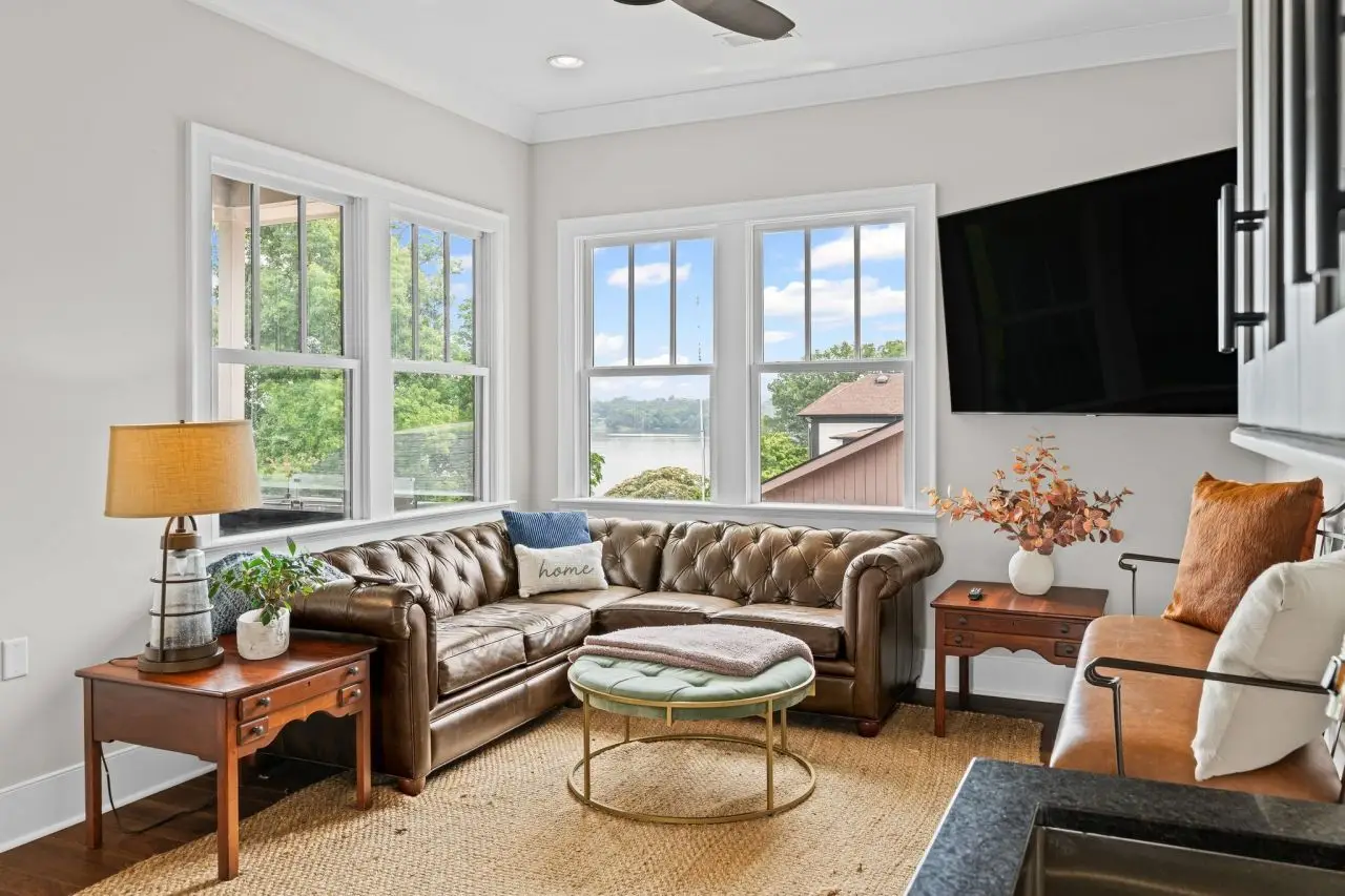 Motivated Seller l Lake Life Just Got Better Welcome to your dream lake retreat! This stunning, fully remodeled lakefront home is the perfect blend of luxury, comfort, and lifestyle. Nestled in a peaceful cove, enjoy breathtaking water views from the expansive wrap-around deck-ideal for morning coffee, evening sunsets, or entertaining under the stars. A private staircase leads you down to the scenic community boardwalk, which winds along the shoreline and connects you to two deeded boat slips w/ power-just bring your water toys!The showstopper? A massive detached 50' x 40', 8-car garage, fully insulated with central HVAC, perfect for storing boats, RVs, cars, or converting into the ultimate workshop or hobby space with 1/2 bath.. Above the garage sits a fabulous 2-bedroom apartment (approx. 1,400 sq ft) with its own full kitchen and bath-ideal for guests, extended family, or rental income.Inside the main home, every inch has been thoughtfully reimagined from the studs out. Gleaming hardwood and tile flooring throughout, rich trim work, and an exquisite owner's suite featuring a spa-like bathroom and a showstopping dressing room with a custom-designed closet.This is lake living at its finest-a rare opportunity to own a one-of-a-kind property that truly has it all.