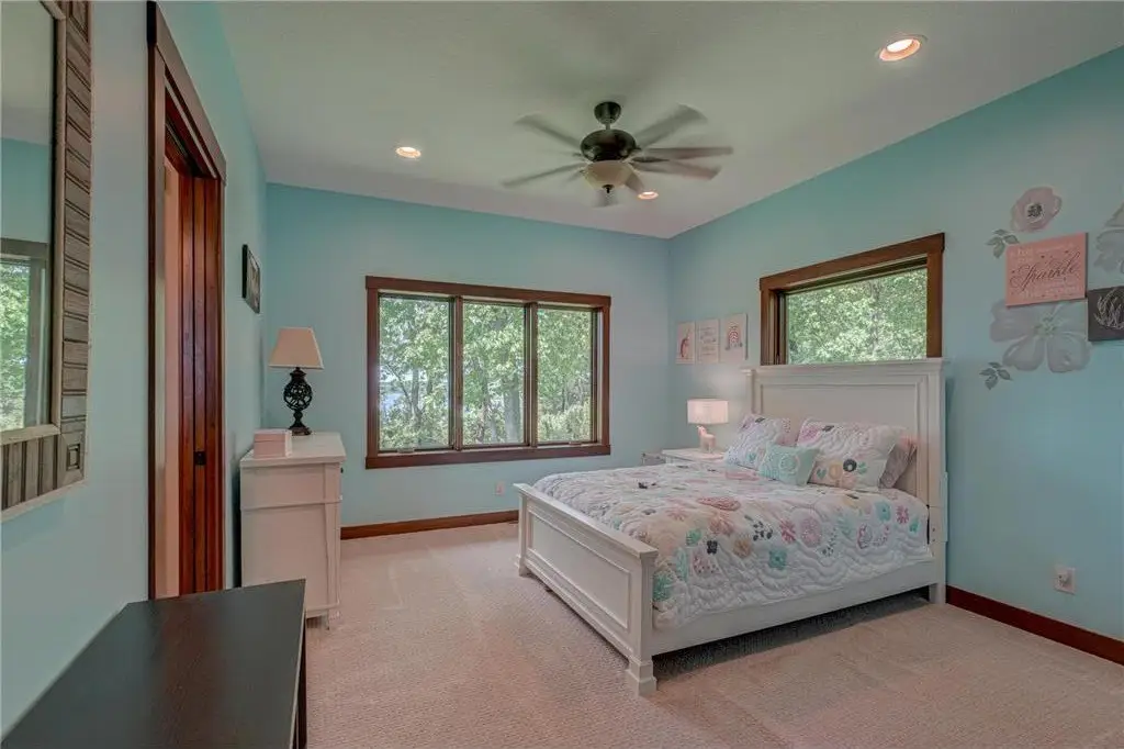 Welcome to one of the most extraordinary private retreats on the St. Croix River—where timeless rustic elegance meets unmatched riverfront living. Nestled on a premier stretch of shoreline with one of the best sandy beaches on the river, this stunning estate offers the river lifestyle of your dreams! Crafted with intention and rich character, this custom 5 bed, 5 bath rambler impresses with exquisite woodwork by renowned craftsmen Al and Wally Hines, rustic white oak floors, and walls of windows that flood the home with natural light while framing picturesque views of the river. An open-concept main level is anchored by a striking stone, wood-burning fireplace in the living room and a gourmet kitchen with Cambria countertops, a generous pantry, and access to the expansive walkout deck for seamless indoor/outdoor living. The thoughtful design continues with a spacious loft overlooking the main living space & offering breathtaking views of the river. Wake up to captivating river sunrises in the private primary suite, complete with a walk-in closet and a spa-like ensuite featuring heated floors, a jetted tub, and a natural stone tile shower. Two additional main-level bedrooms offer spacious layouts, stunning river views, and share a well-appointed Jack & Jill bath. The home’s purposeful layout also includes two laundry rooms, making everyday living effortlessly convenient. Retreat to the lower level, designed with entertaining in mind, where a striking stone fireplace anchors the light-filled living area. A luxe bar with granite countertops invites gatherings, while heated floors add comfort and warmth throughout. You'll also find generous storage space, including an unfinished area full of potential—ready to be customized to fit your lifestyle. Outdoors, a brand-new lift offers easy access to your private beach spanning 300ft of shoreline, where you’ll find 20–30 ft of soft sand extending into the river—perfect for launching a boat, paddleboard, or simply relaxing by the water. The outdoor amenities continue with a cozy firepit, heated pool, expansive patio & walkout deck, generous yard, and a massive 40x40 shed with loft storage—ideal for storing toys, gear, or diving into your favorite hobbies. Tucked at a peaceful bend in the river, this property enjoys rare north and south views, including unforgettable sunsets and the twinkling lights of Stillwater in the distance—all just minutes from Hudson and Stillwater’s top-tier dining, shopping, and recreation. This is more than a home. It’s a lifestyle—private, luxurious, and unforgettable.