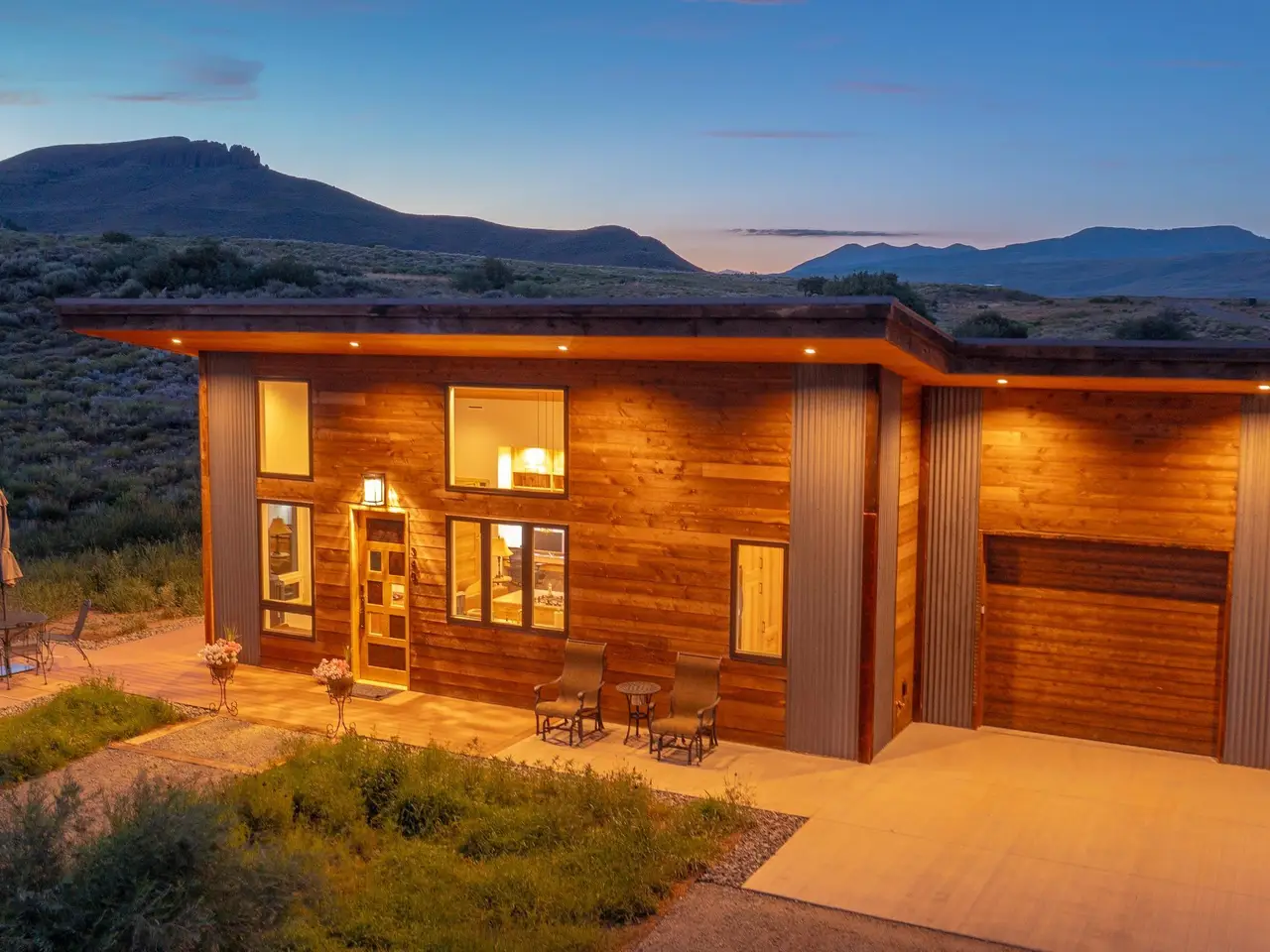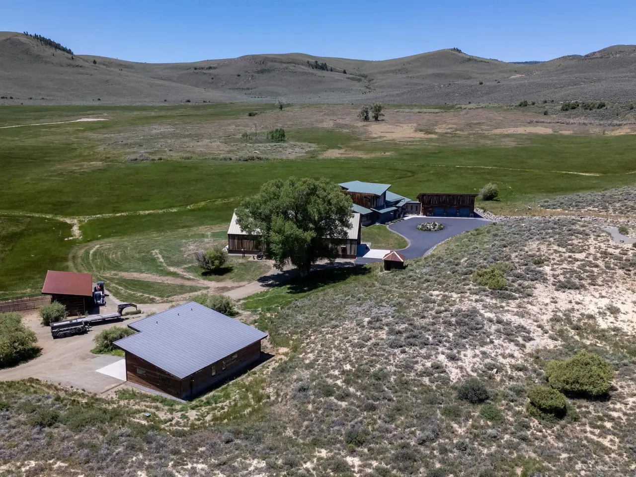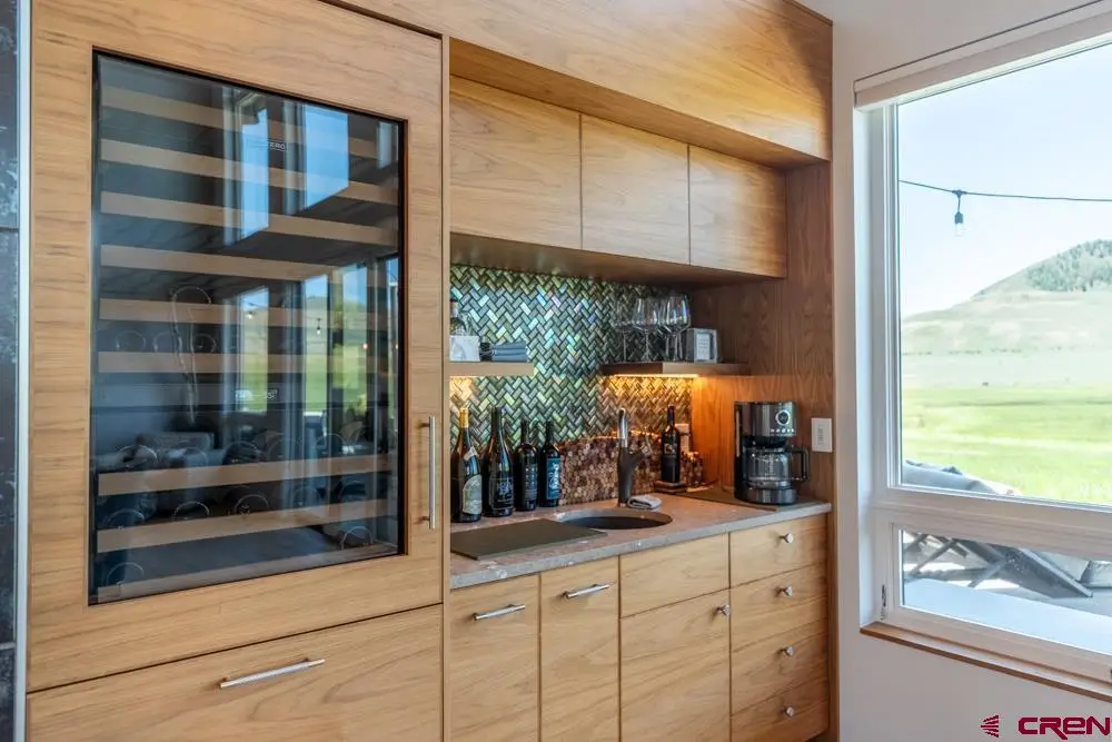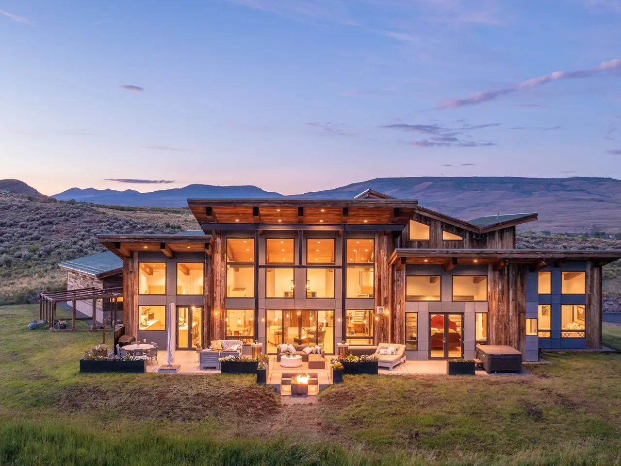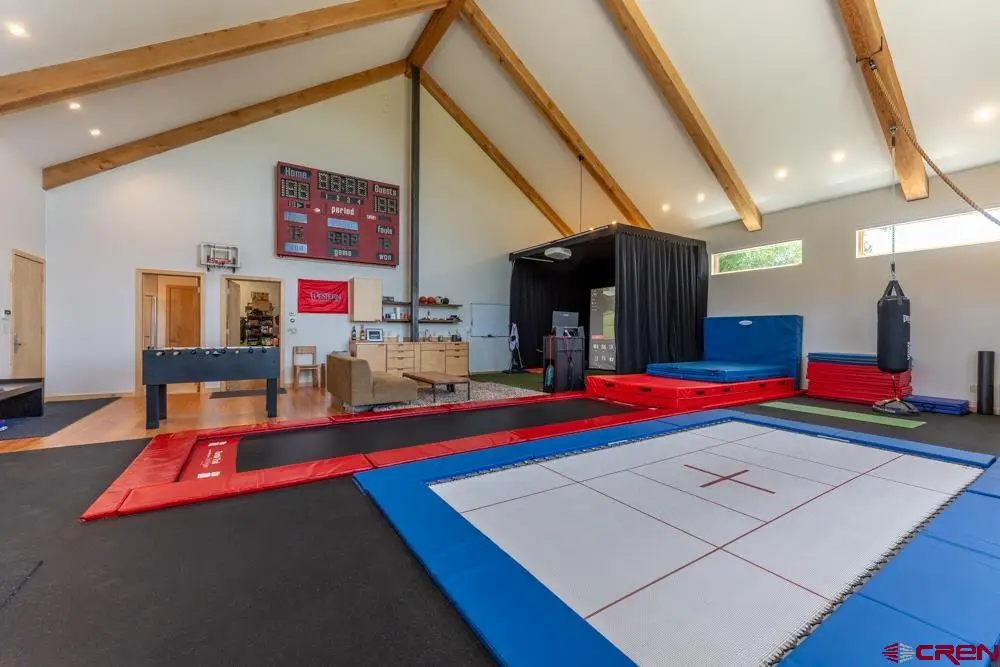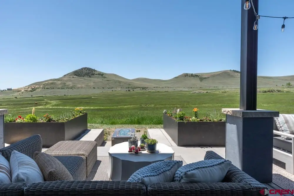 Welcome to this stunning rustic-contemporary estate on 35 acres in the exclusive Horse River Ranch subdivision, just 10 minutes from Gunnison in the scenic Ohio Creek Valley. Set against sweeping views of open meadows, this 3,750 sq ft custom-built home blends refined craftsmanship with modern design. The open-concept main living space features 22-foot ceilings, French oak wood floors, and a dramatic wall of windows that floods the living room with natural light and opens to a custom concrete patio with a built-in gas fireplace, perfect for entertaining or taking in the peaceful mountain setting. The beautifully appointed kitchen, outfitted with top-tier appliances, sits just off the living room and flows seamlessly into the dining area. Throughout the home, you'll find handmade solid wood cabinetry and doors. The laundry room features custom painted green cabinets, which leads to a spacious mudroom and an attached three-car heated garage. On the main level, the private office features a cozy gas fireplace, while the primary suite includes a sitting area, walk-in closet, and a luxurious ensuite bathroom. An additional bedroom with a private bath completes the main floor, while upstairs offers two more bedrooms, a full bath, and a loft-style seating area overlooking the living space below. The home's exterior showcases a striking blend of reclaimed barn wood, corrugated metal, and concrete board, an authentic take on rustic modern architecture. A newly built guest house echoes the main home’s style with open living spaces, two bedrooms, two bathrooms, laundry room, and a one-car heated garage. An impressive 3,600 sq ft multi-use building offers a workshop with a garage door, loft storage, and a full gym complete with bathroom, refrigerator, dishwasher, in-ground trampoline, tumble track, and a custom golf simulator. The large gym area can easily be converted into additional workspace or additional living area. Oversized barn doors open the gym to the meadow and a fully outfitted horse corral with power and water. Residents of the gated Horse River Ranch community enjoy equestrian amenities, private fishing rights, and direct access to thousands of acres of adjacent BLM land. This one-of-a-kind property offers refined rural living with space to roam, recreate, and relax.